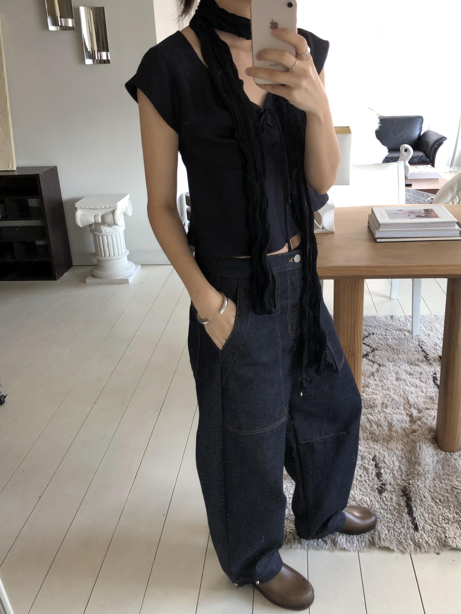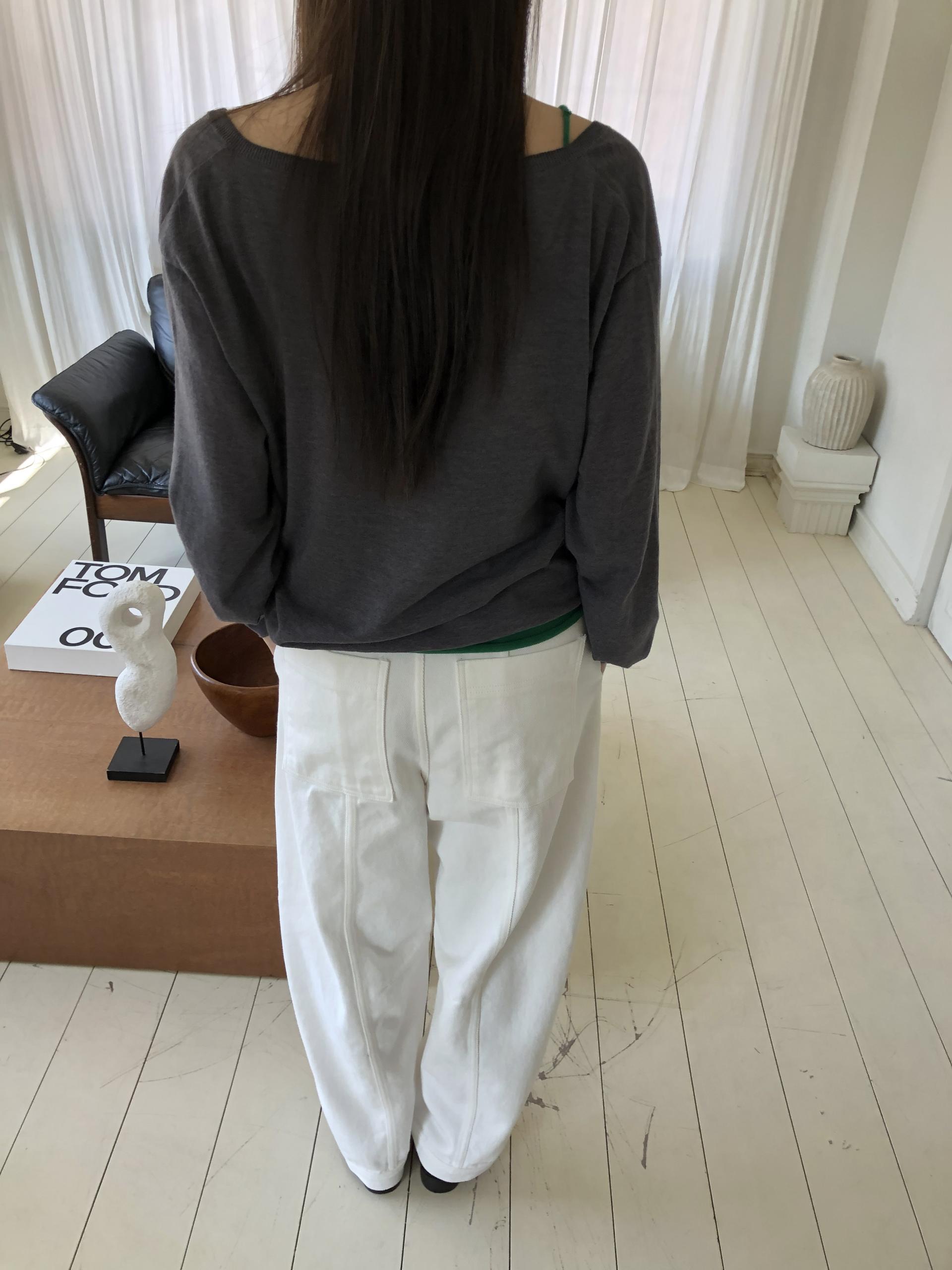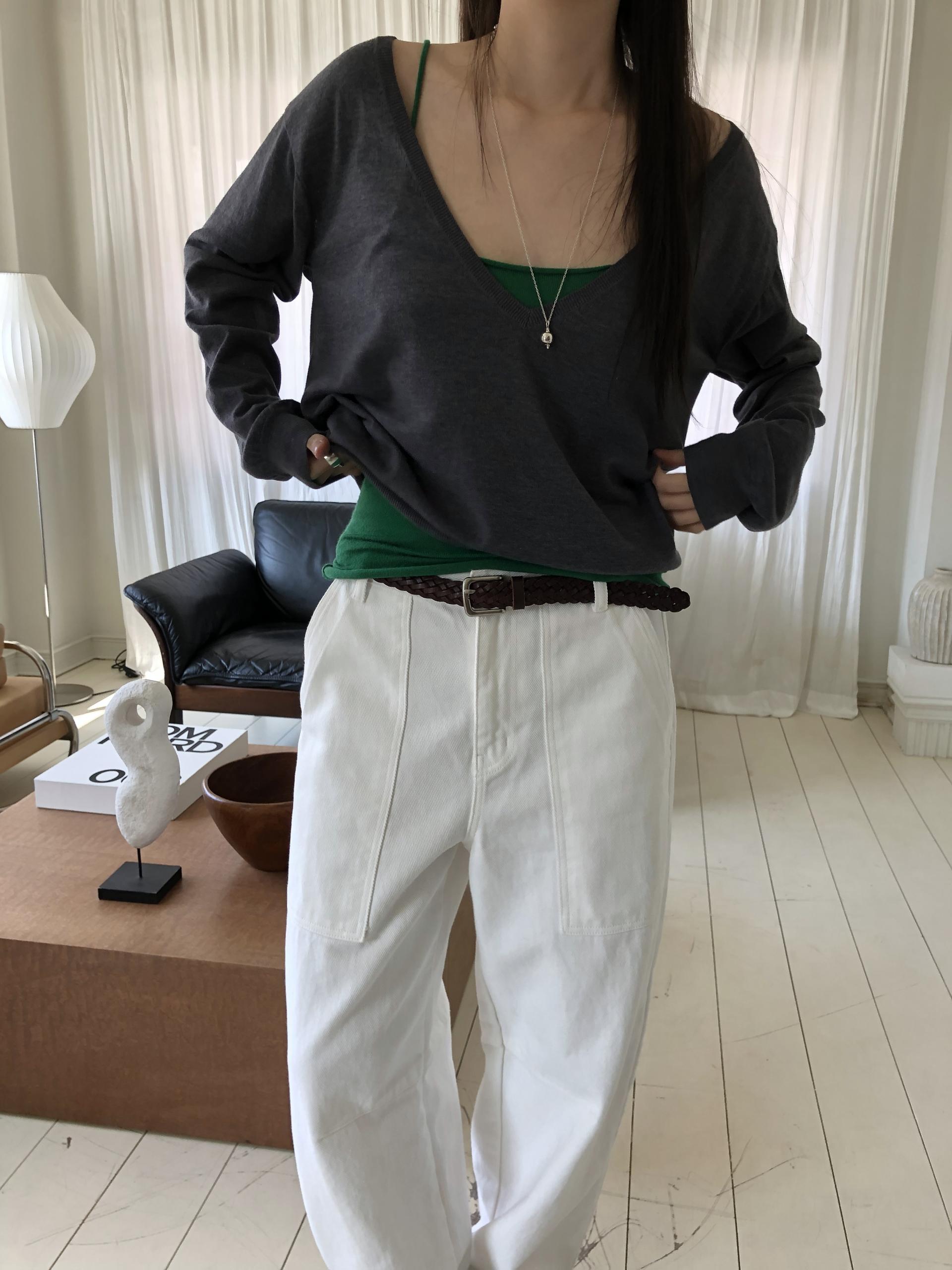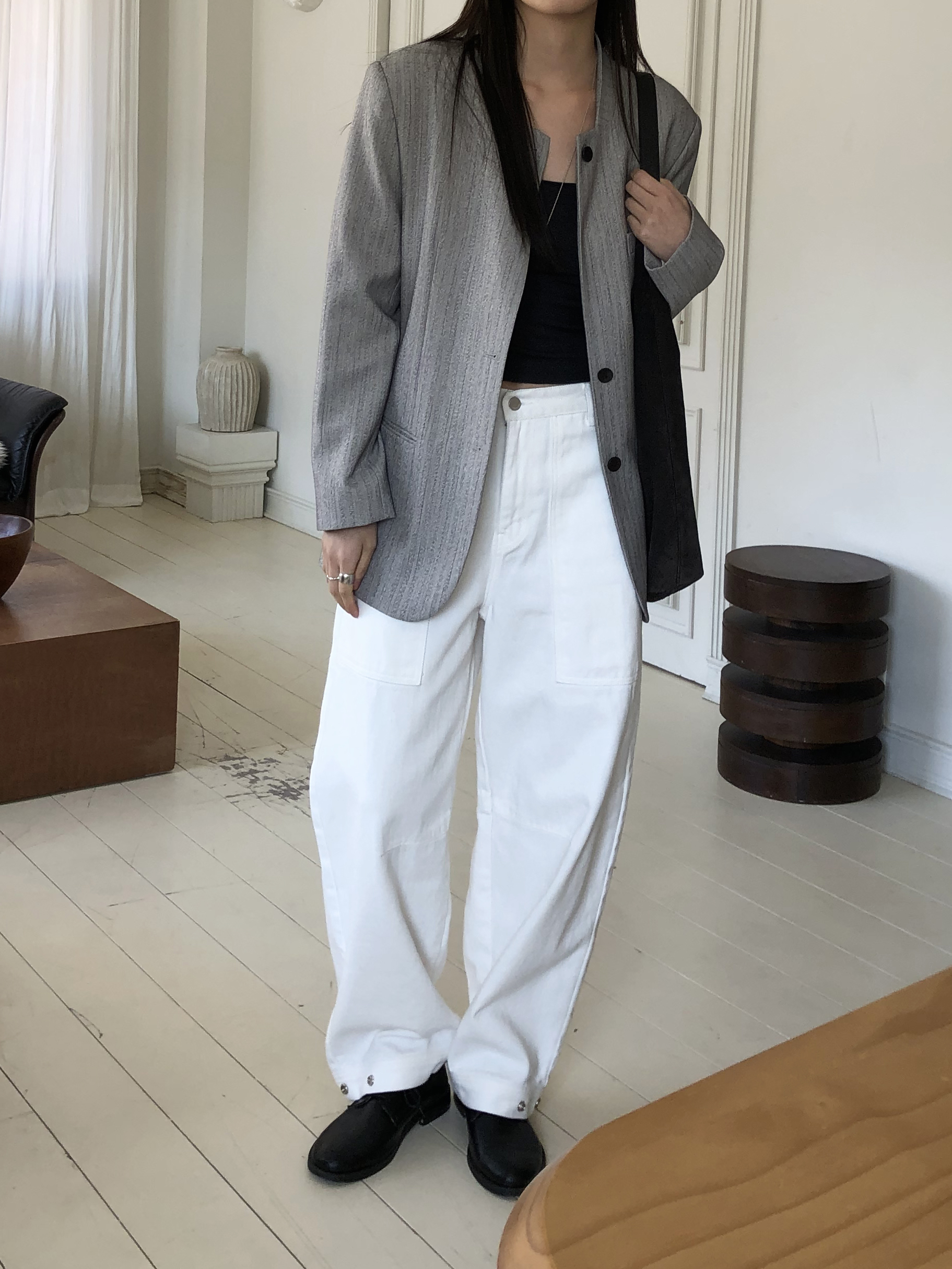 아이보리와 논페이드 데님 두 컬러로 나왔습니다. 실루엣만으로 은근히 차별화되는 데님이라 추천드리는 아이템입니다.