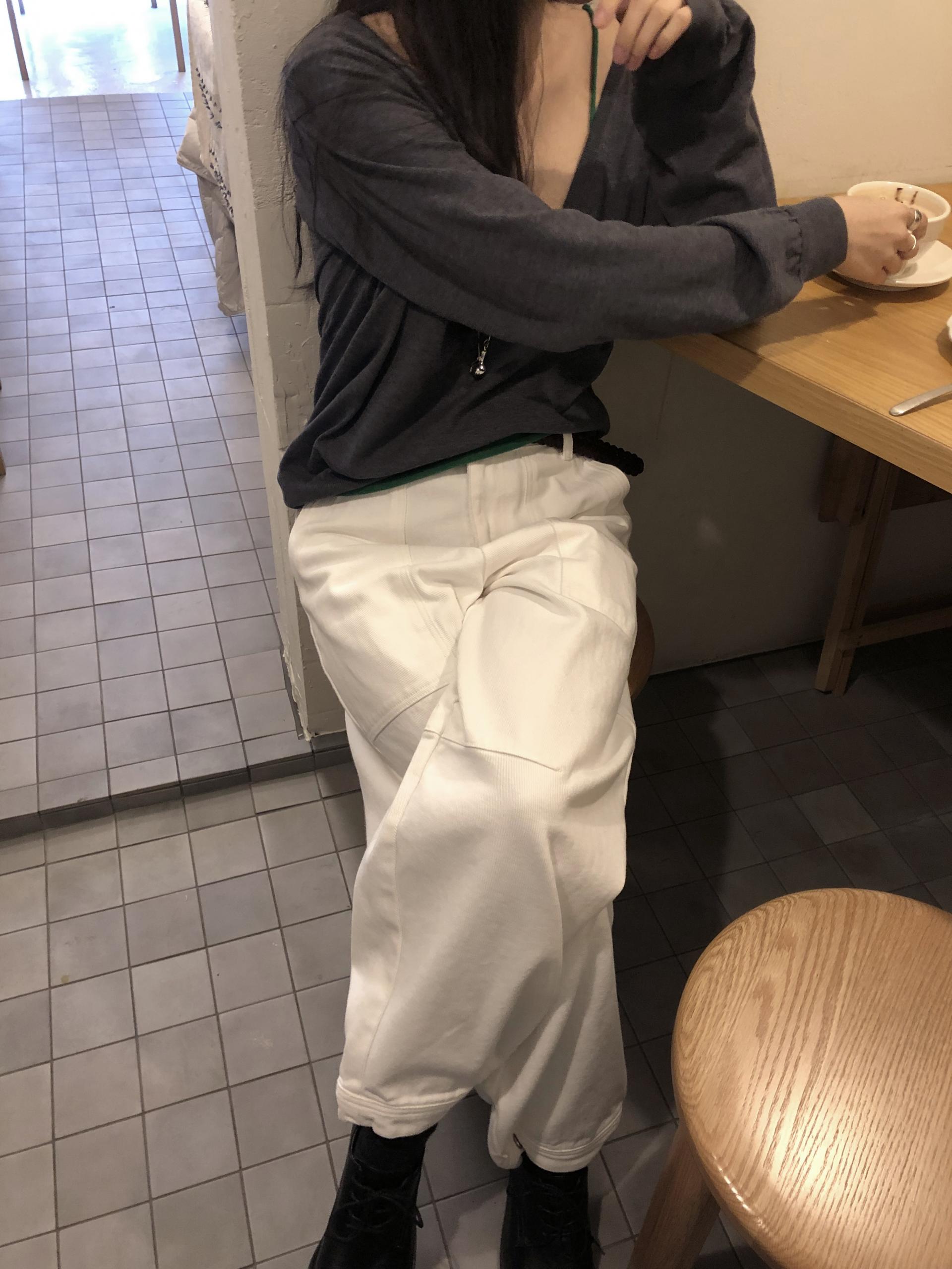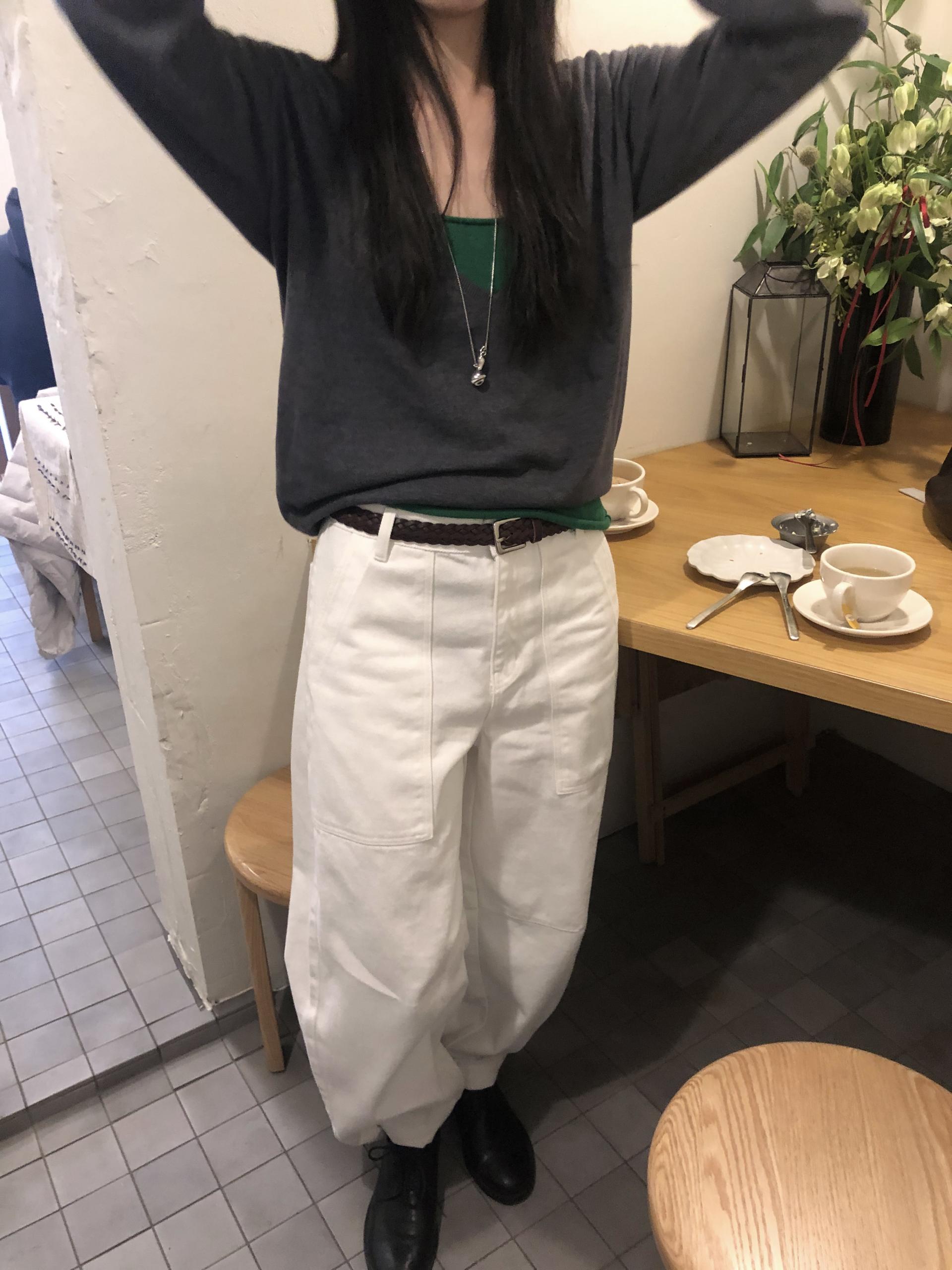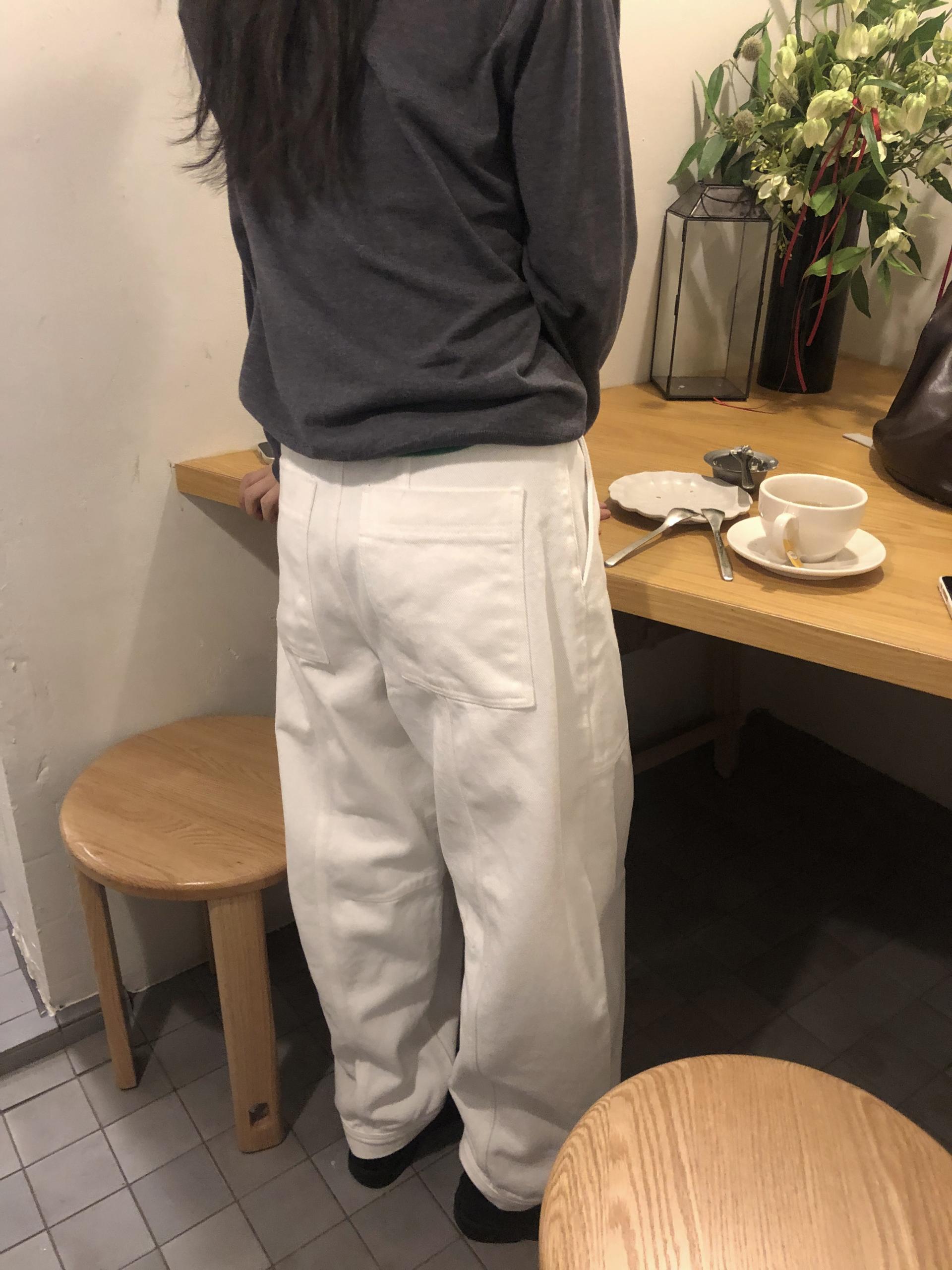 깊은 포켓 디자인과 뒷라인에 절개라인도 확인해주세요. 길이감은 평소 저희가 보여드리는 팬츠류에 비해 짧은 편이에요. 전체적인 실루엣 덕분인지 댕강 짤린듯한 느낌없이 그저 예쁘게 피팅됩니다 .. 살짝 짧게 입어주는 게 더 예뻐요 <3