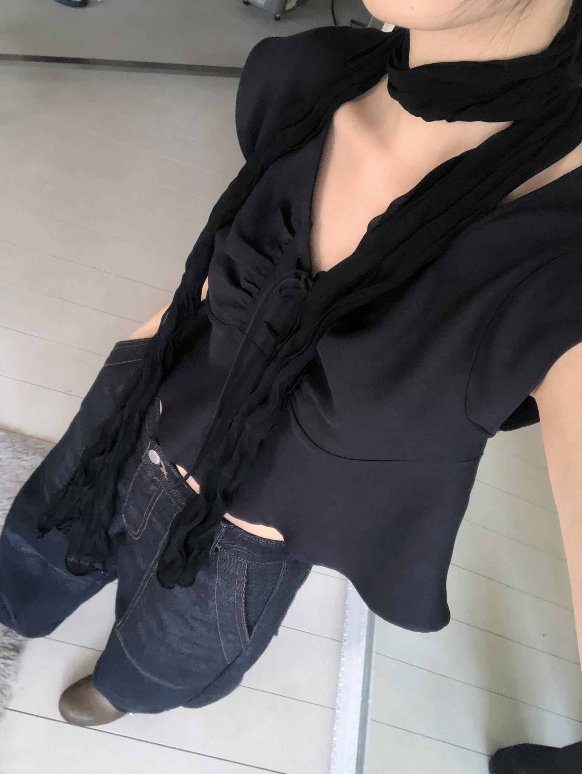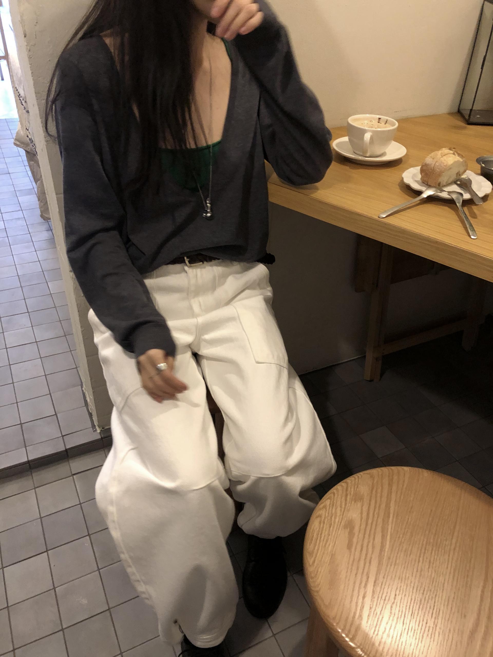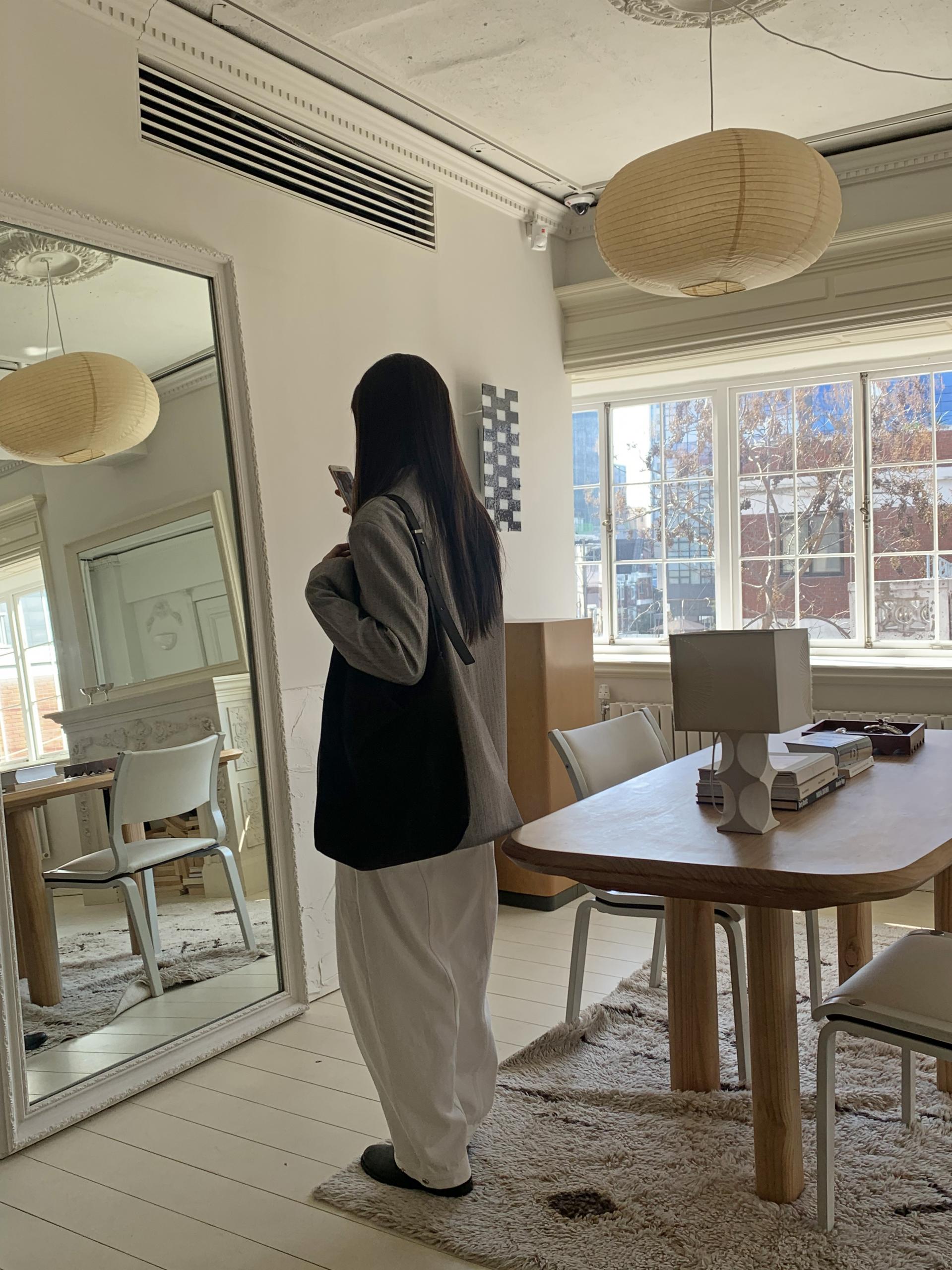 깊은 포켓 디자인과 뒷라인에 절개라인도 확인해주세요. 길이감은 평소 저희가 보여드리는 팬츠류에 비해 짧은 편이에요. 전체적인 실루엣 덕분인지 댕강 짤린듯한 느낌없이 그저 예쁘게 피팅됩니다 .. 살짝 짧게 입어주는 게 더 예뻐요 <3