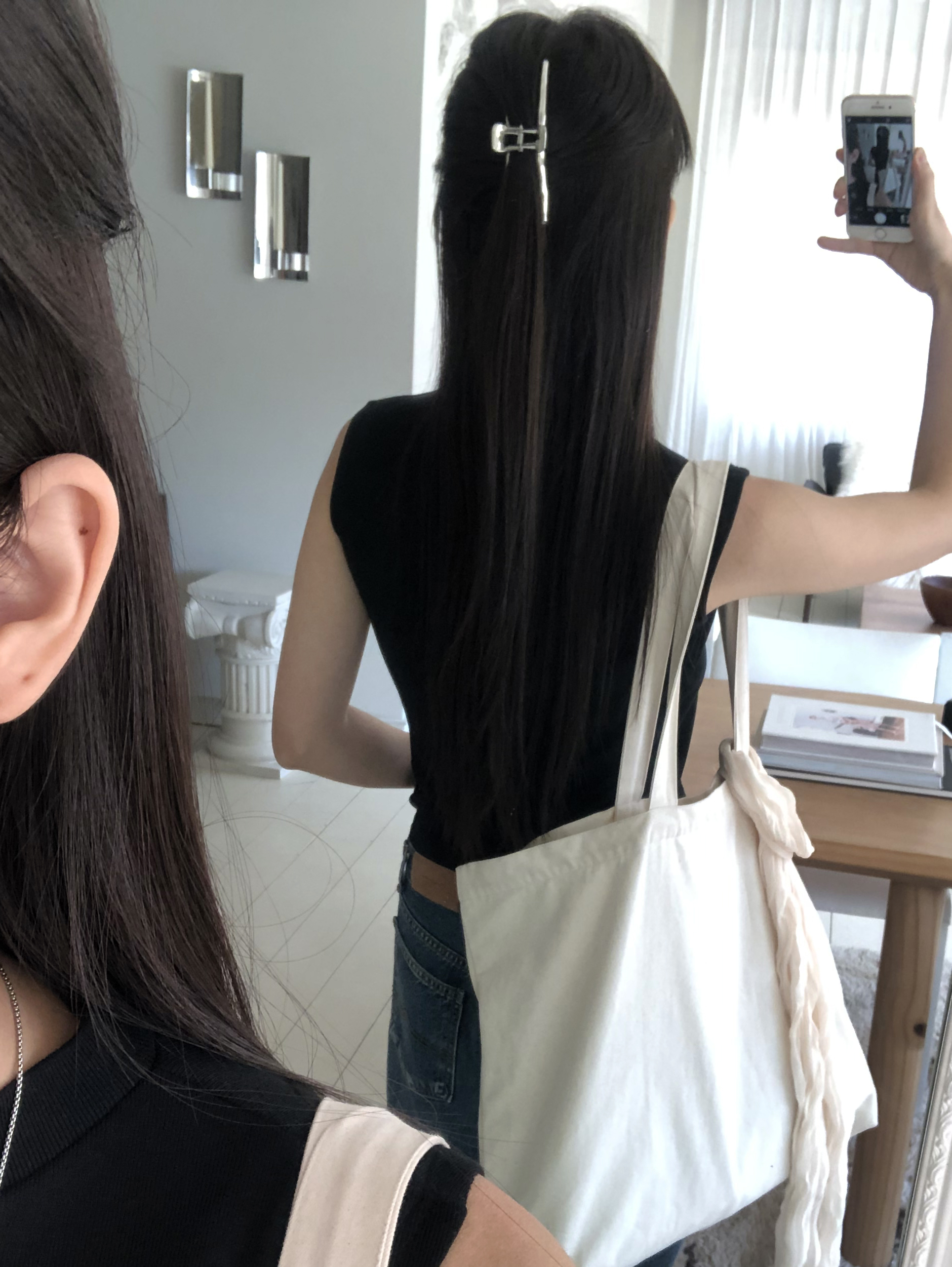 얇고 긴 쉐입으로 디자인되어 과하게 튀지 않고, 실버 컬러라 어디에나 잘 어울리더라구요. 헤어클립을 활용한 헤어스타일링을 자꾸만 찾아보는 요즘입니다 ..