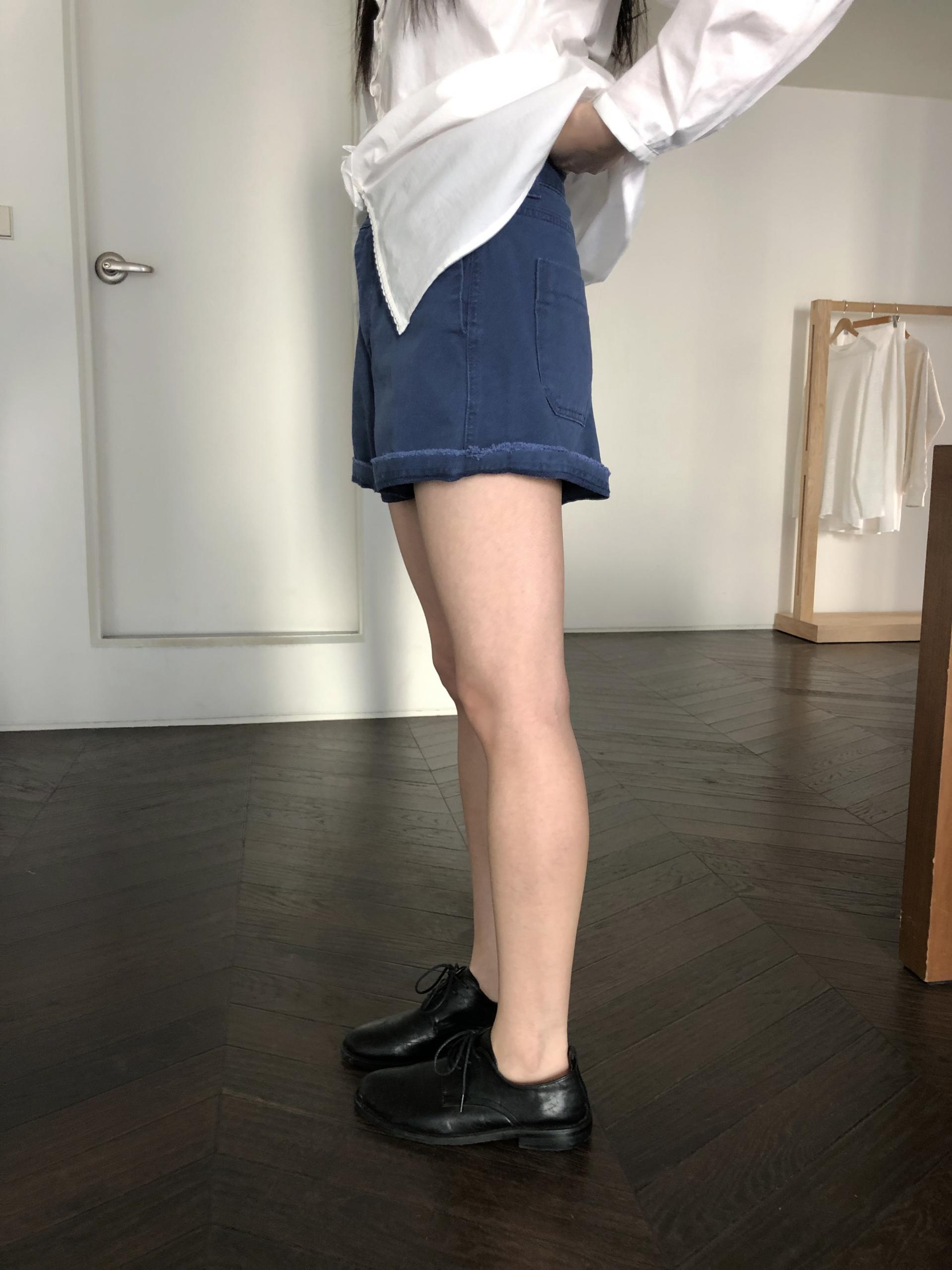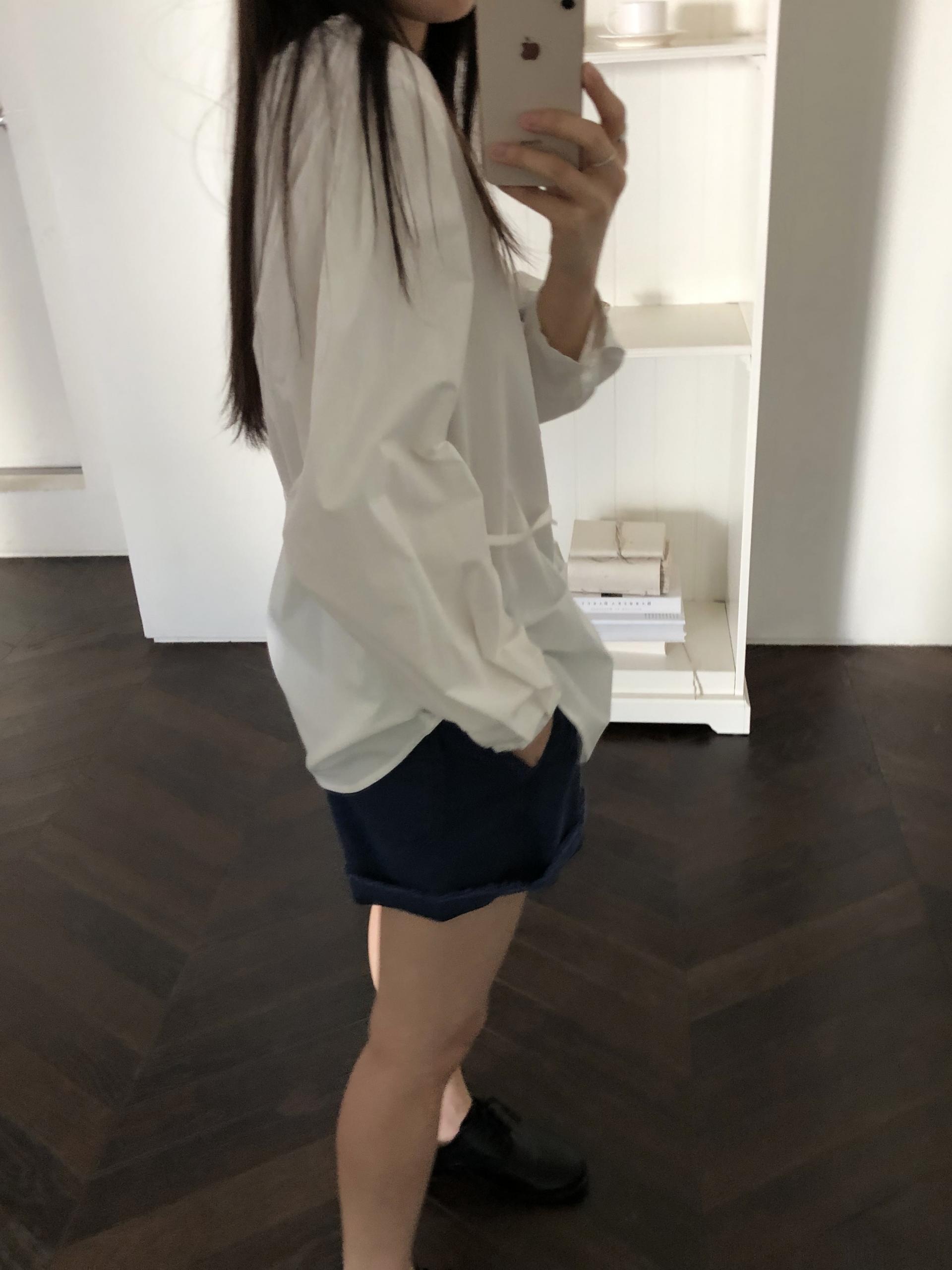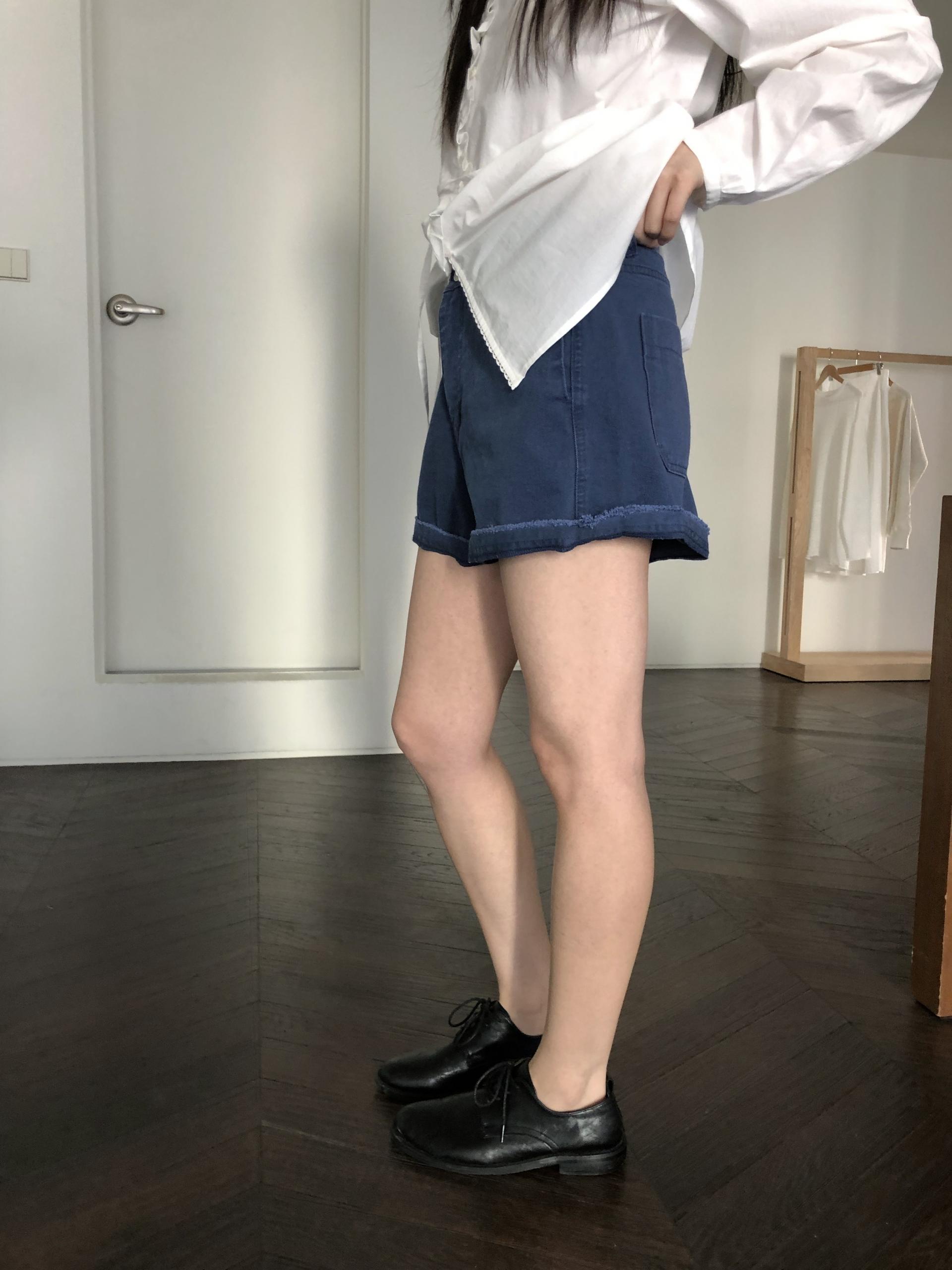 코튼 데님 소재로 제작된 깔끔하면서 쿨한 분위기의 숏츠입니다. 핏이 과하게 벙벙하지도, 그렇다고 일자로 뚝 떨어져 타이트하지도 않은 적당한 여유의 실루엣이에요. 옆선이 살짝 안쪽으로 들어오는 패턴으로 제작되어 자연스럽게 정리된 핏으로 연출되어요.
