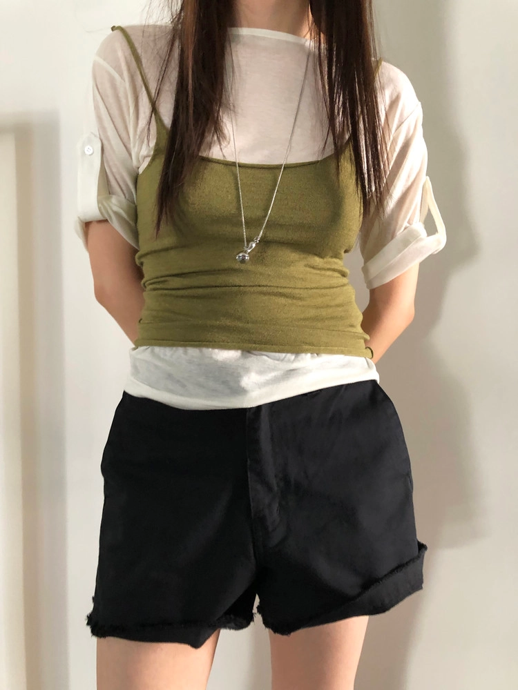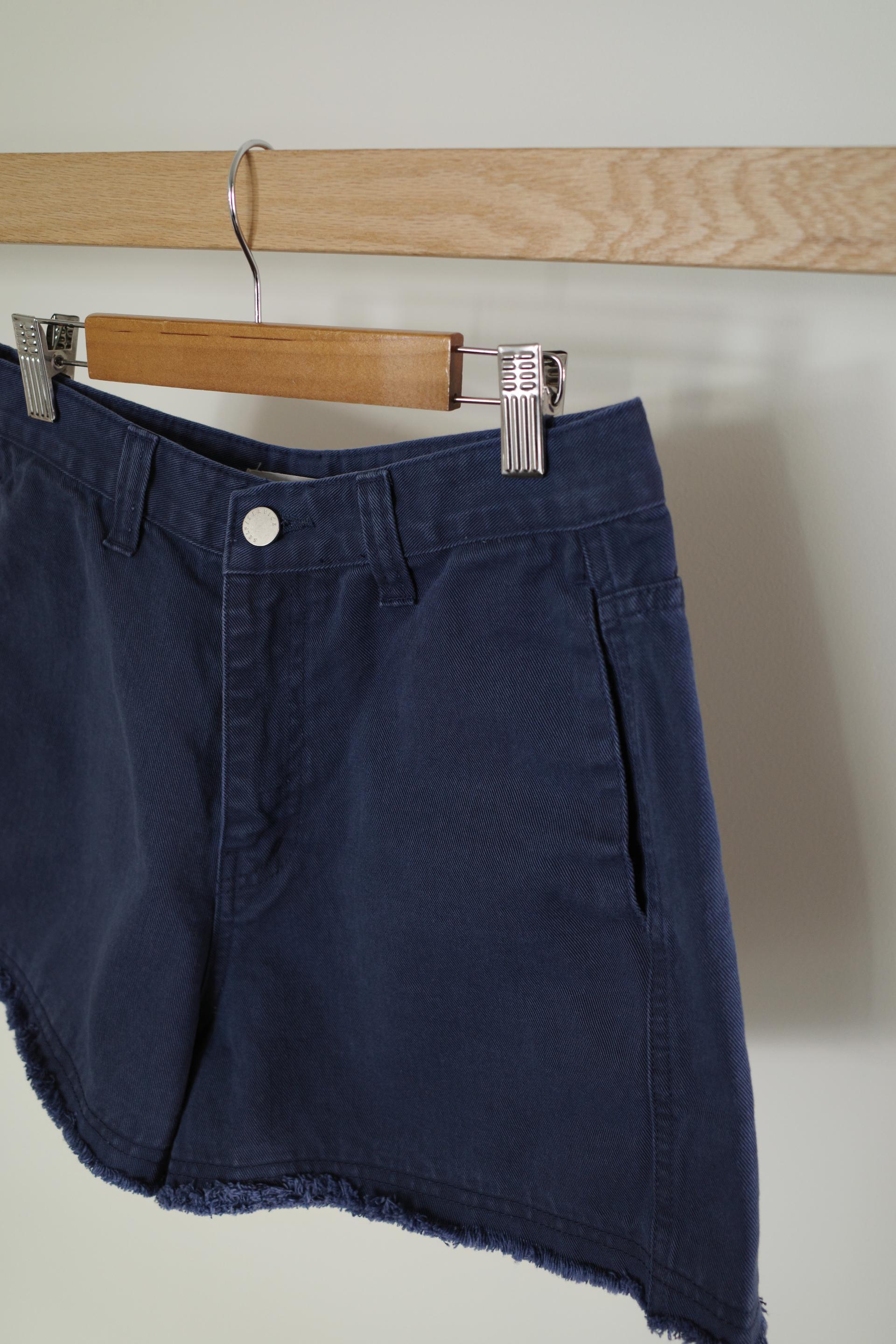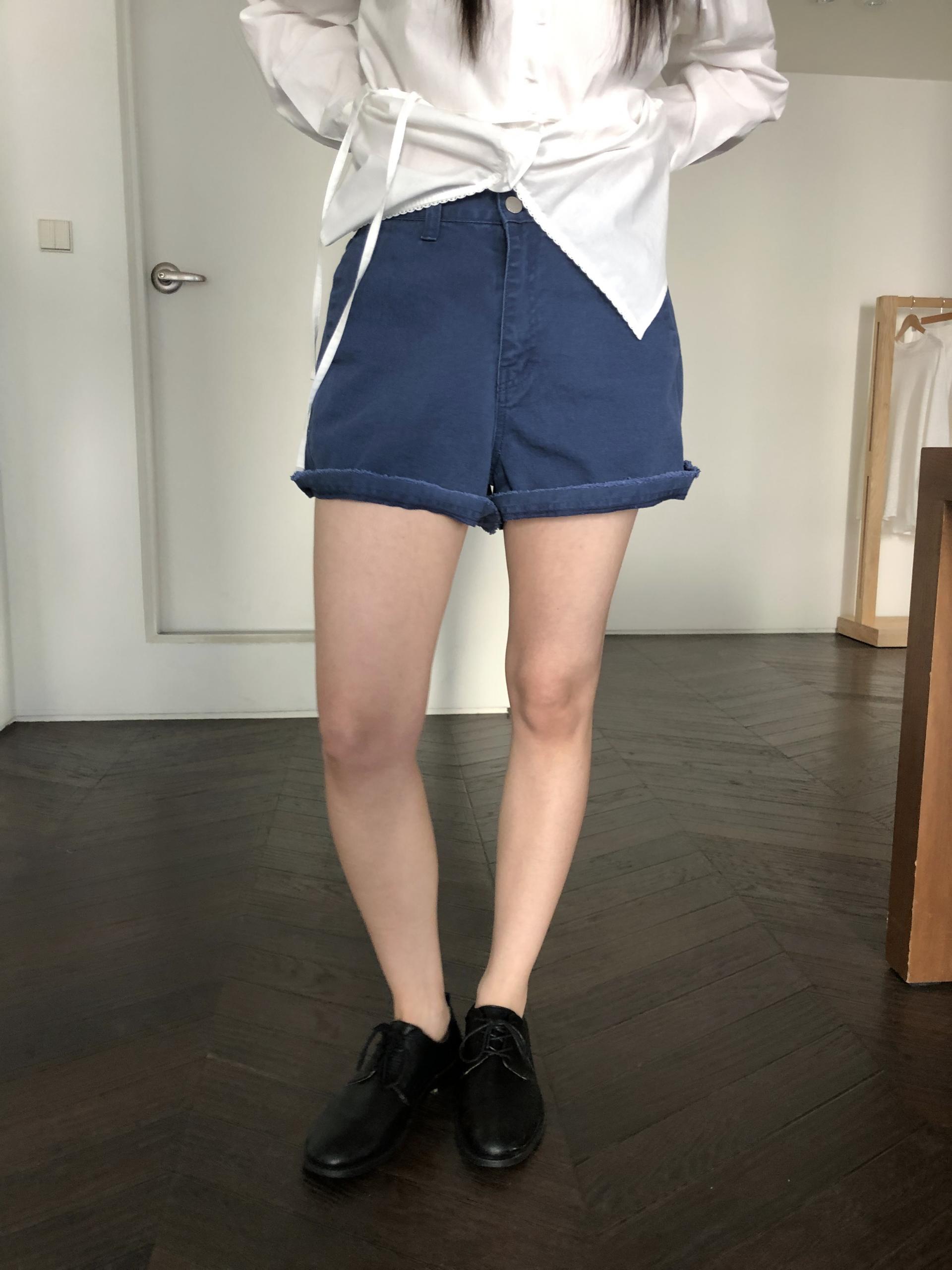 코튼 데님 소재로 제작된 깔끔하면서 쿨한 분위기의 숏츠입니다. 핏이 과하게 벙벙하지도, 그렇다고 일자로 뚝 떨어져 타이트하지도 않은 적당한 여유의 실루엣이에요. 옆선이 살짝 안쪽으로 들어오는 패턴으로 제작되어 자연스럽게 정리된 핏으로 연출되어요.