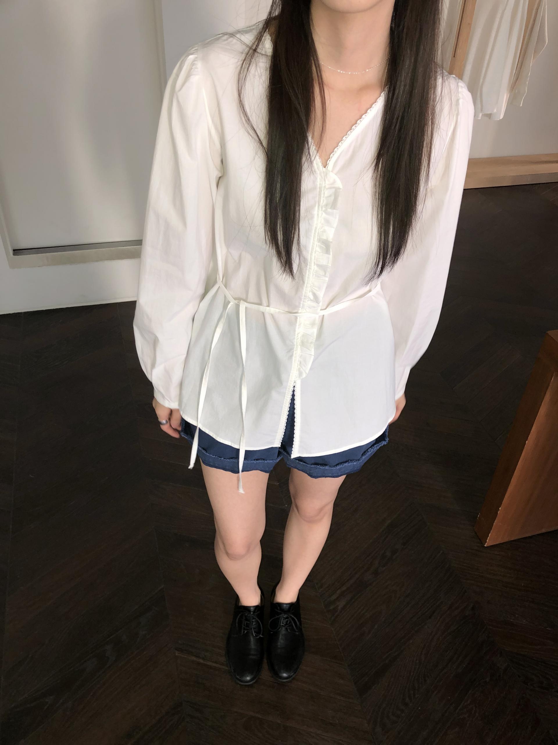 밑단은 내추럴한 커팅 마감으로 너무 단정하게만 보이지 않도록 밸런스를 잡아줍니다. 깔끔한 디자인에 살짝 러프한 포인트가 더해져 데님 특유의 캐주얼한 매력도 자연스럽게 살렸어요. 밑단을 아무렇게나 툭툭 접어 올려 스타일링하기 좋습니다.