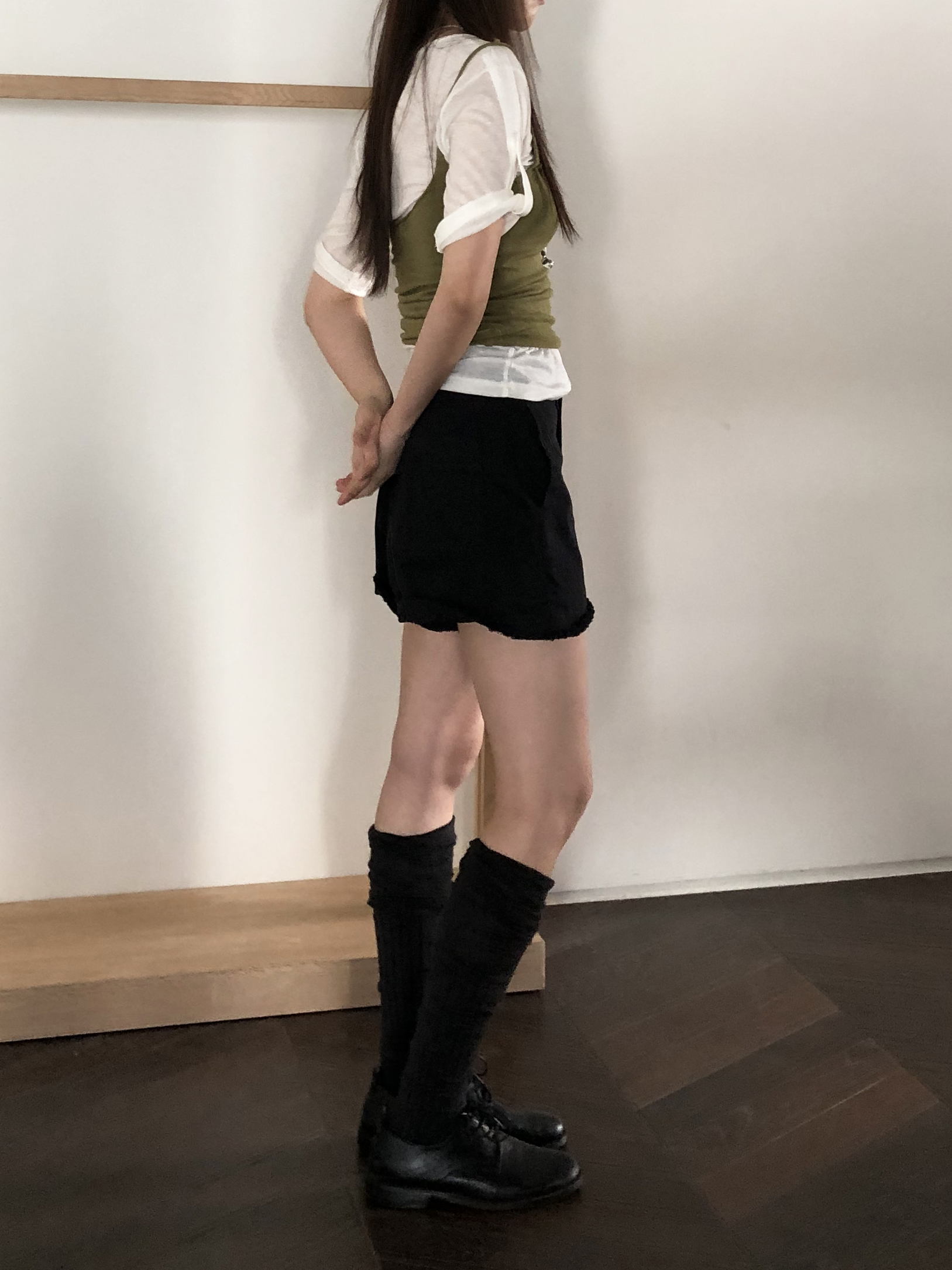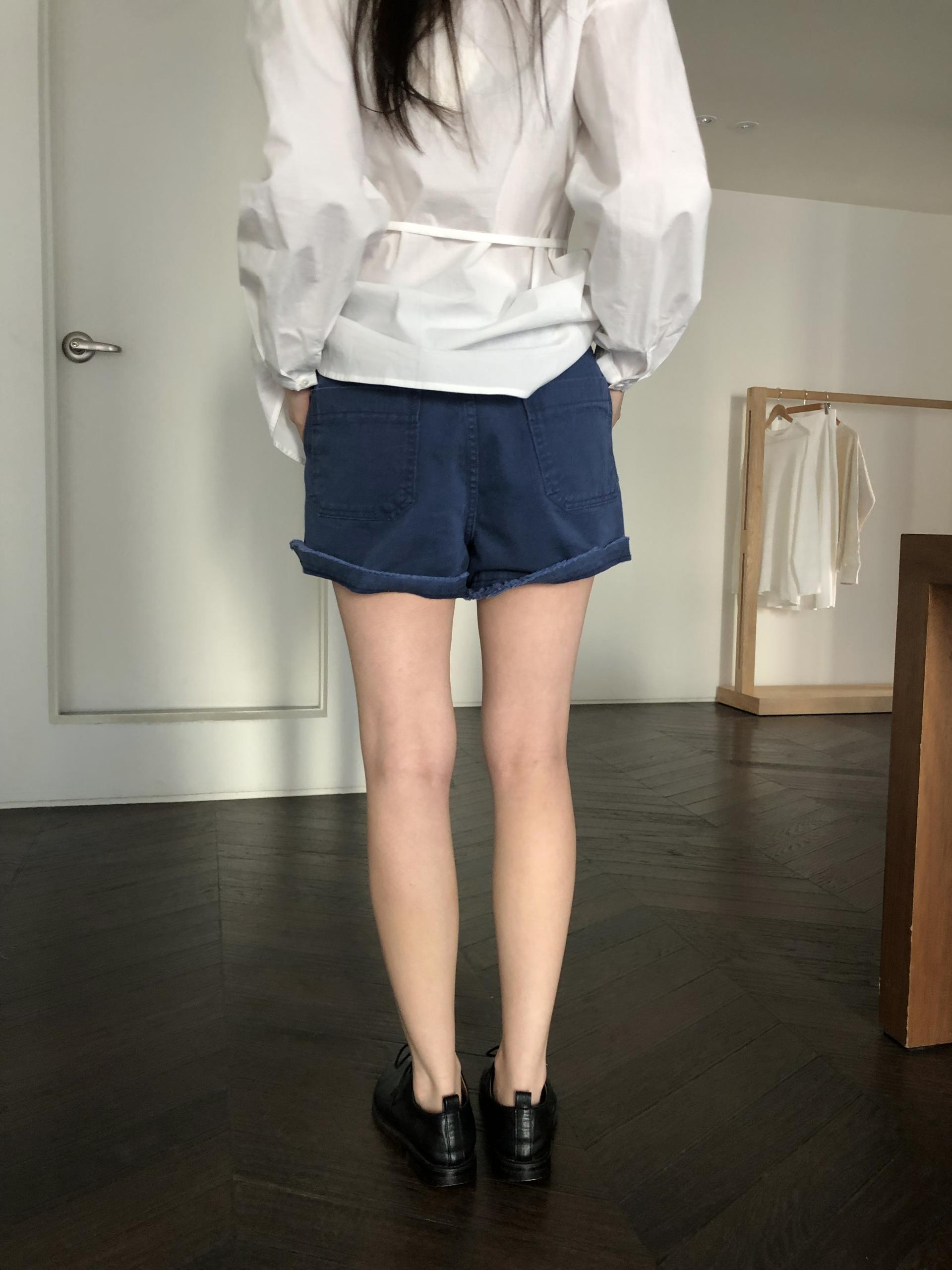 컬러는 블루와 블랙 두가지로 보여드립니다. 약간 네이비가 섞인 블루의 경쾌한 컬러감으로 짙은 데님과 비슷한 무드를 내면서도 또 달라 소장가치가 높습니다. 일반 데님 숏츠처럼 편하게 매치할 수 있으면서 뻔하지 않아 은근 손이 가더라구요. 미니멀한 멋을 살린 블랙은 스테디한 아이템으로 추천드립니다. 3사이즈 구성으로 선택의 폭이 넓습니다.