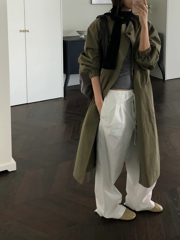 뒤 트임 디테일을 더해 긴 기장에도 움직임이 편안하고 안쪽에는 허리 스트링을 더해 실루엣을 다양하게 연출할 수 있습니다.