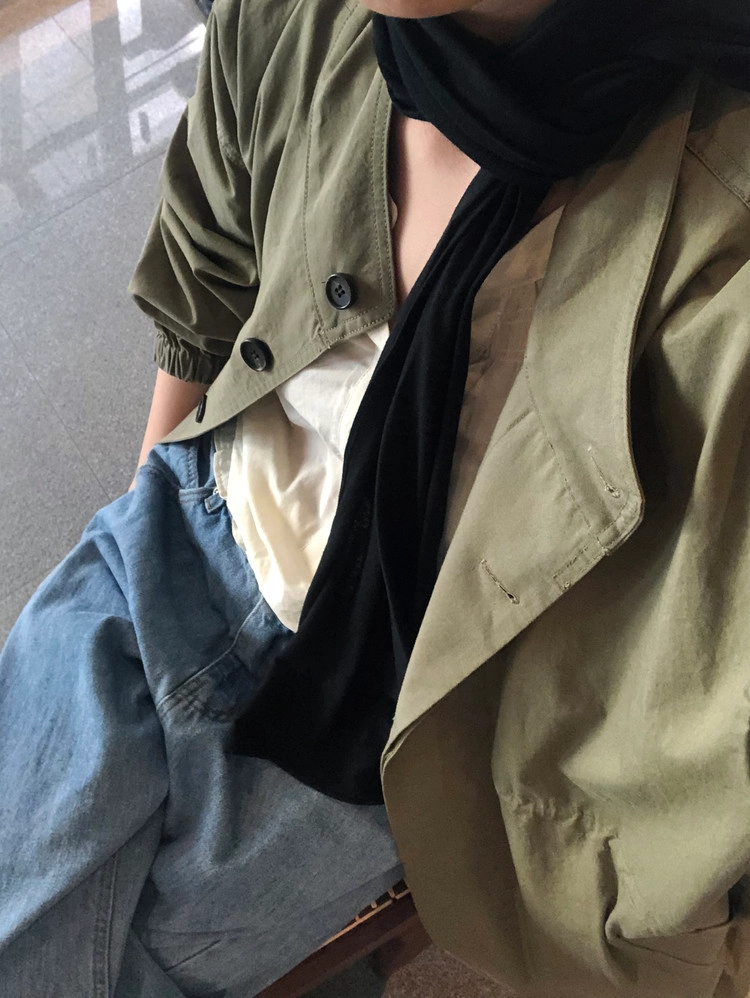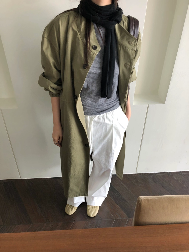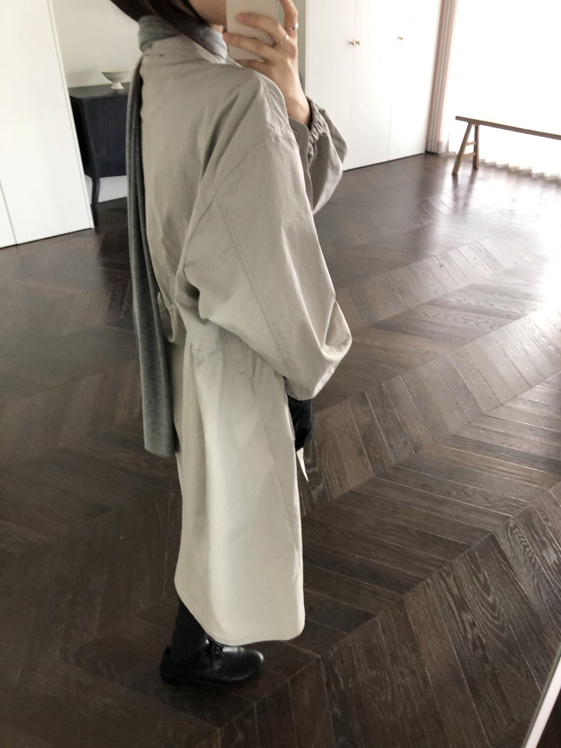 카키와 라이트 그레이입니다. 하얀 카키 아니고 딱 적당한 톤의 짙은 카키색이라 이거다 싶었어요. 또렷한 컬러감으로 내추럴한 야상의 느낌이 잘 살아납니다. 좀 더 깔끔하고 세련된 분위기로 즐기고 싶다면 라이트 그레이를 추천드려요. 무겁지 않게 풀어내 부드럽게 정리됩니다.