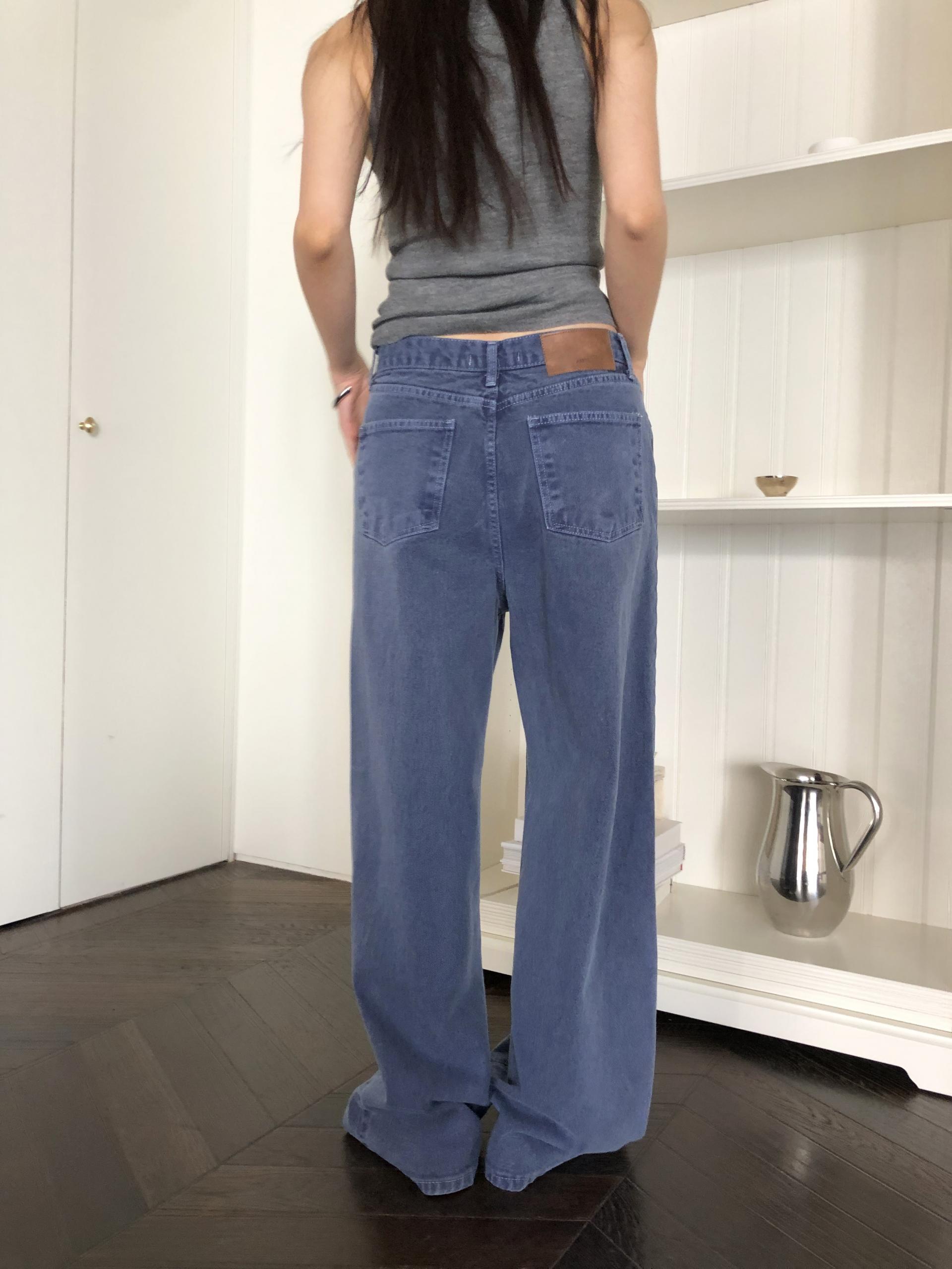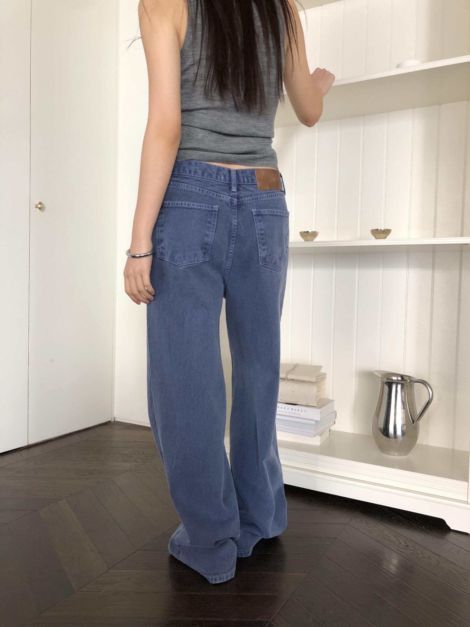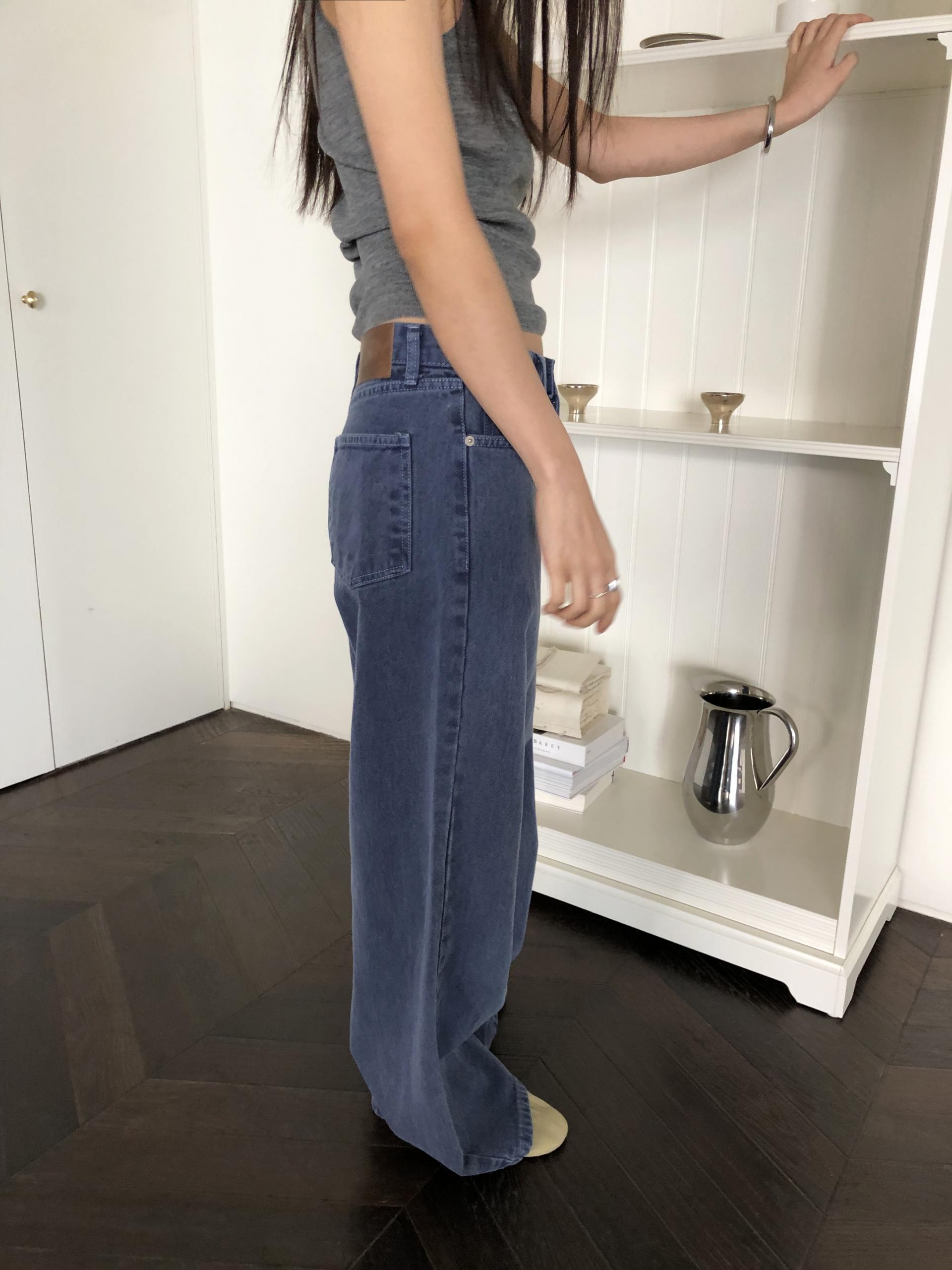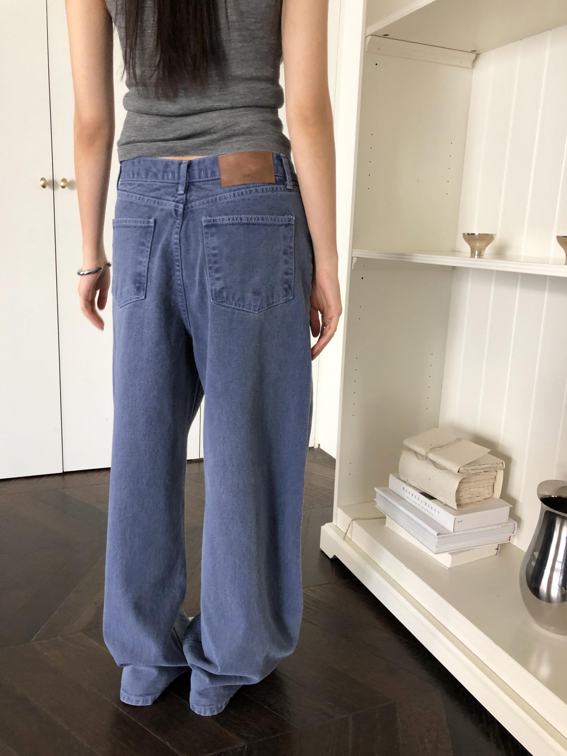 일반 블루 데님처럼 보이지만 입어보면 은은하게 퍼플 톤이 감돌아 또 다른 분위기를 느낄 수 있는 제품입니다. 완전히 블루이거나 퍼플이었다면 팬츠의 존재감이 너무 강했을텐데, 그 사이 어딘가의 컬러라 부담없이 자연스럽게 포인트가 되어줘요. 덕분에 기본 데님보다 조금 더 감각적인 무드로 스타일링 하기 좋고, 컬러 조합하는 재미도 있습니다.