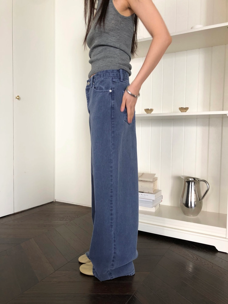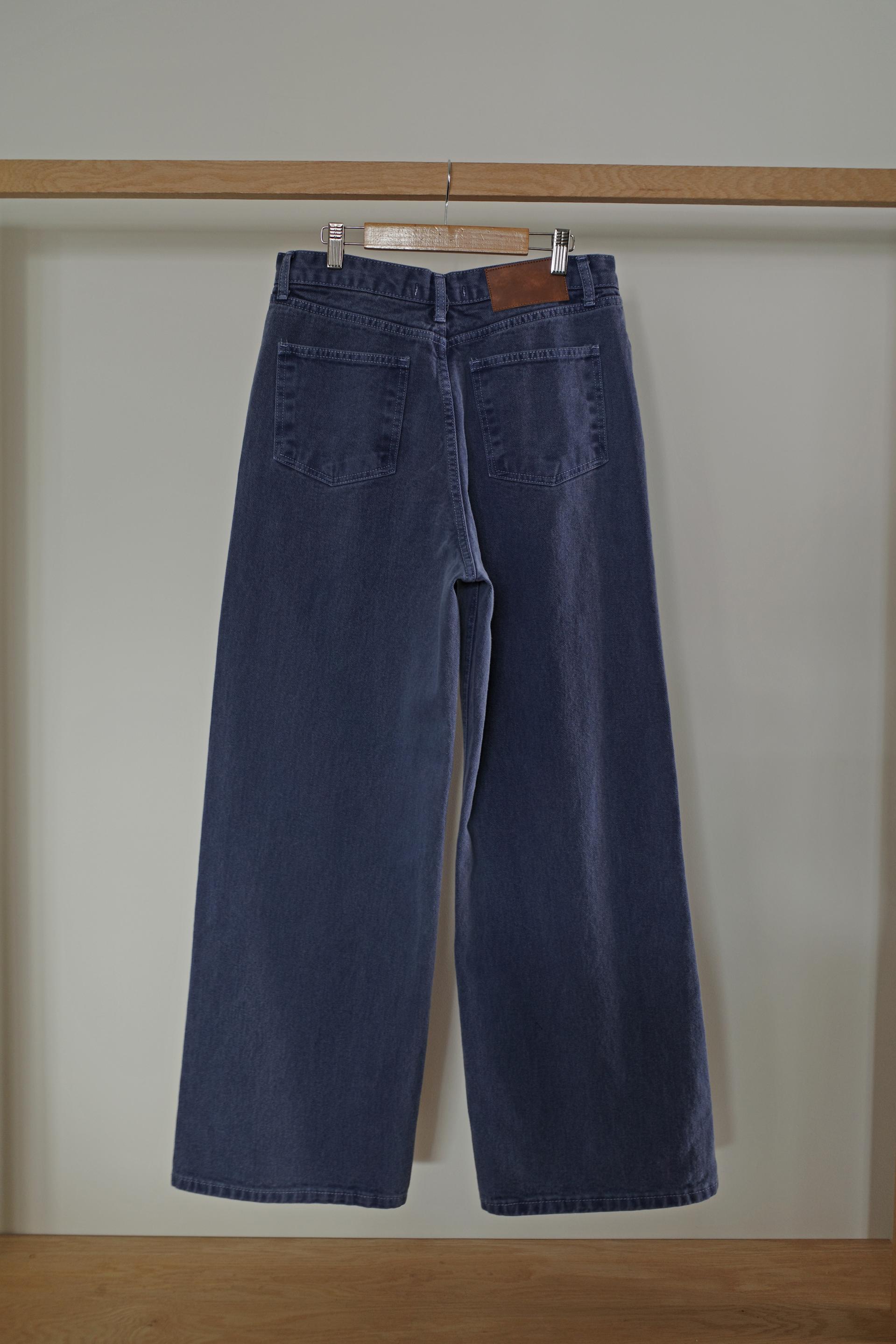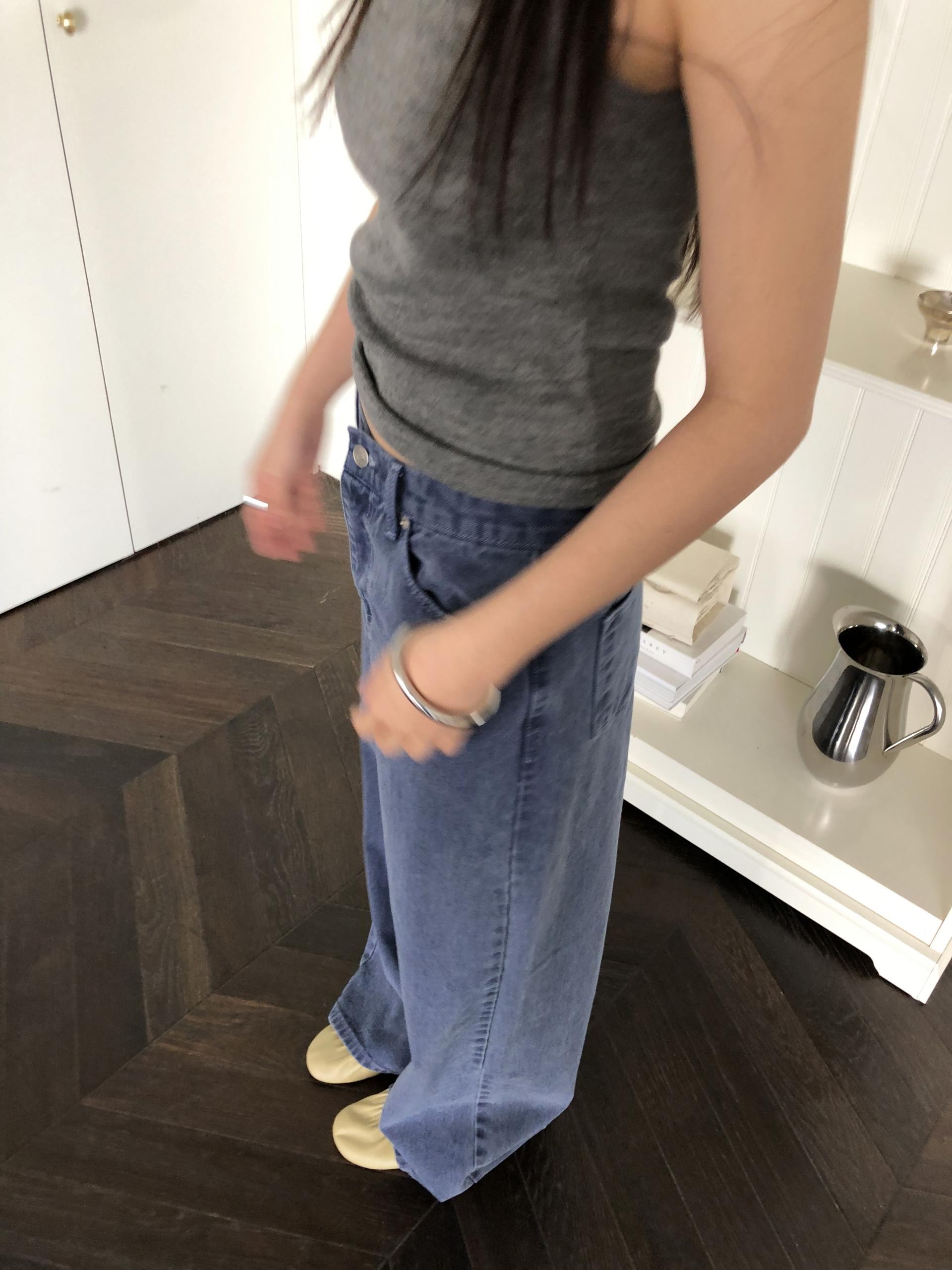 일반 블루 데님처럼 보이지만 입어보면 은은하게 퍼플 톤이 감돌아 또 다른 분위기를 느낄 수 있는 제품입니다. 완전히 블루이거나 퍼플이었다면 팬츠의 존재감이 너무 강했을텐데, 그 사이 어딘가의 컬러라 부담없이 자연스럽게 포인트가 되어줘요. 덕분에 기본 데님보다 조금 더 감각적인 무드로 스타일링 하기 좋고, 컬러 조합하는 재미도 있습니다.