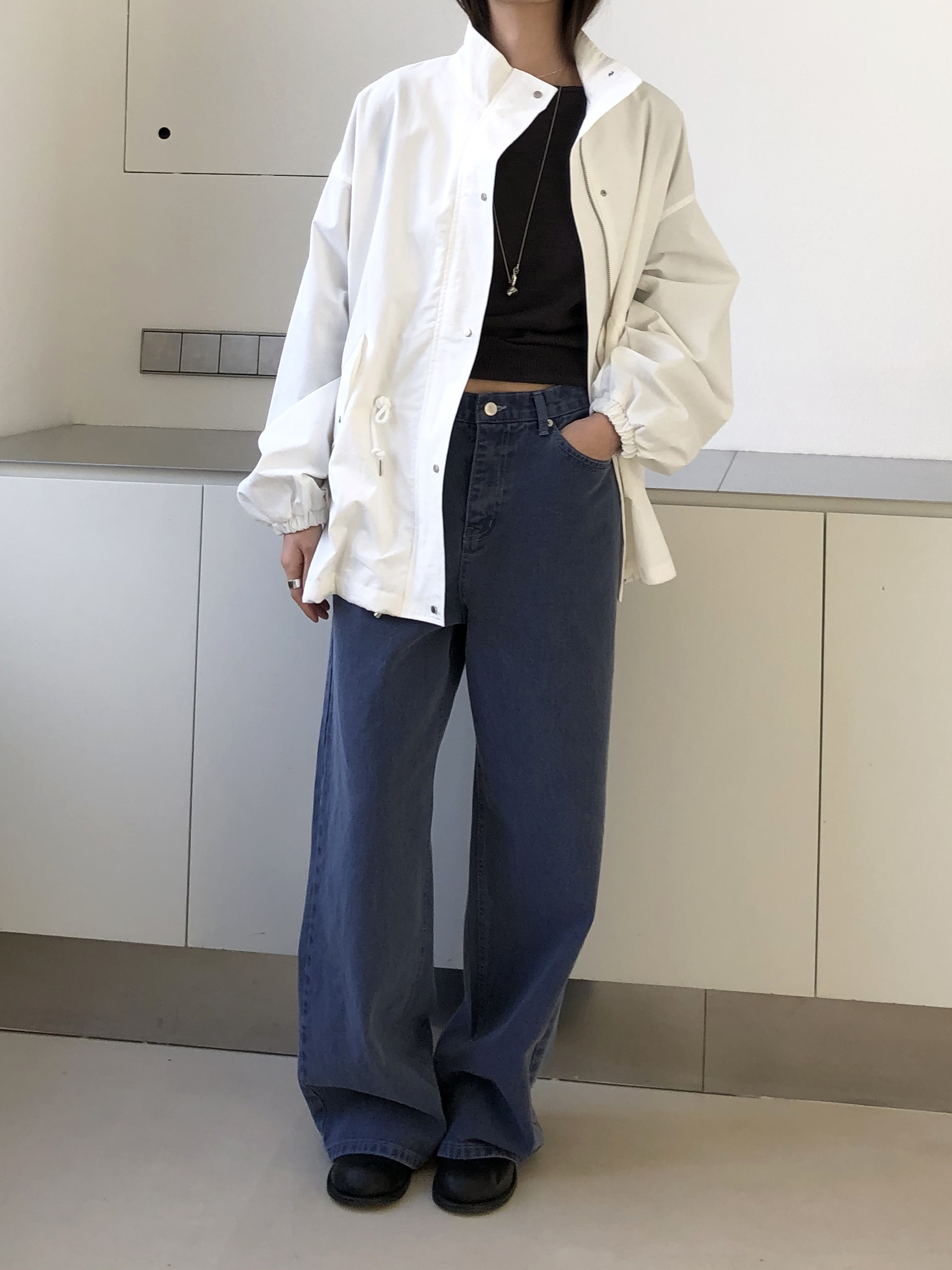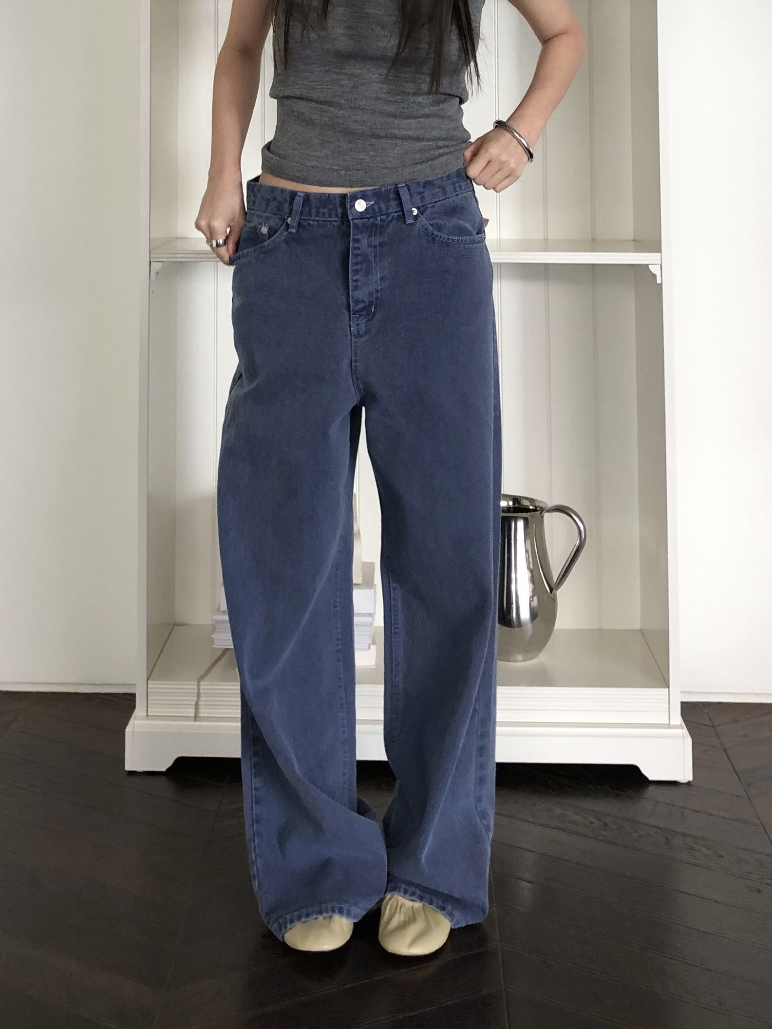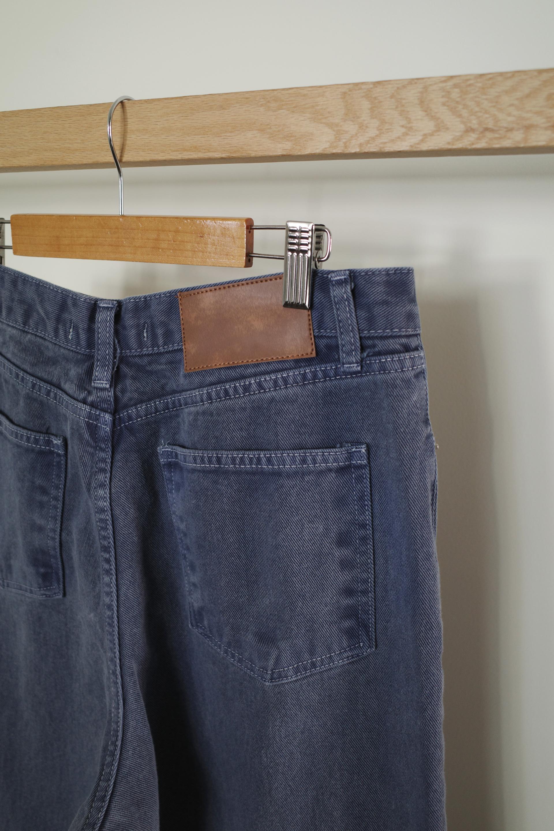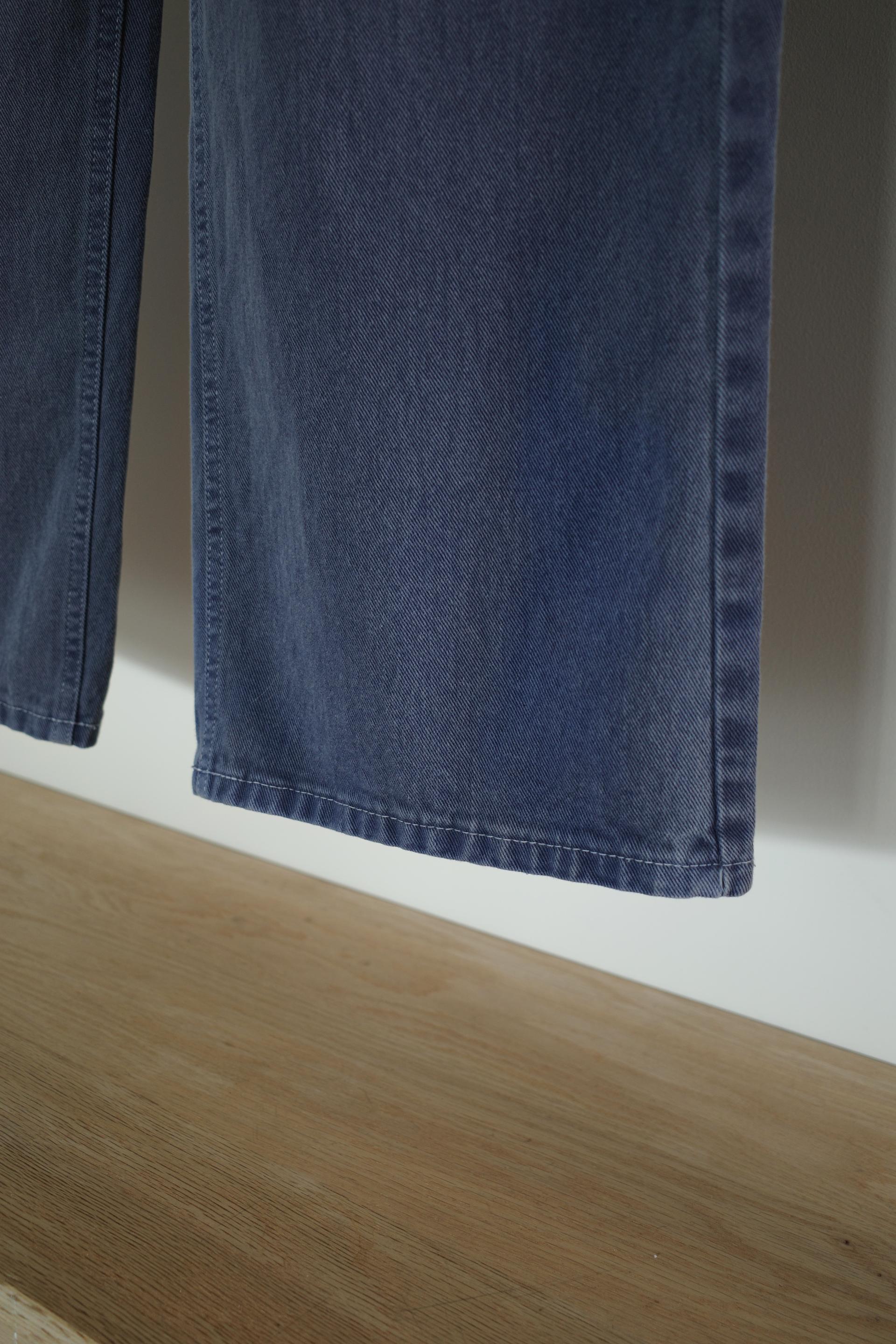 일반 블루 데님처럼 보이지만 입어보면 은은하게 퍼플 톤이 감돌아 또 다른 분위기를 느낄 수 있는 제품입니다. 완전히 블루이거나 퍼플이었다면 팬츠의 존재감이 너무 강했을텐데, 그 사이 어딘가의 컬러라 부담없이 자연스럽게 포인트가 되어줘요. 덕분에 기본 데님보다 조금 더 감각적인 무드로 스타일링 하기 좋고, 컬러 조합하는 재미도 있습니다.