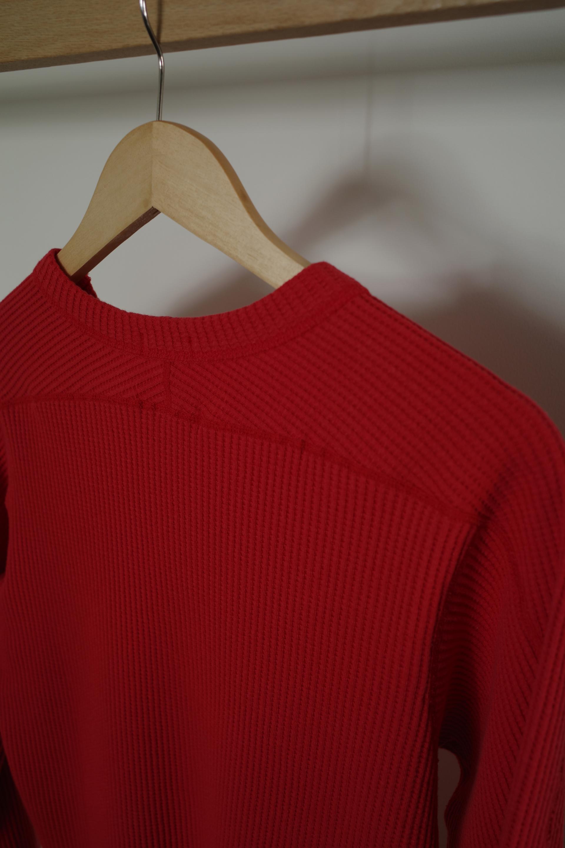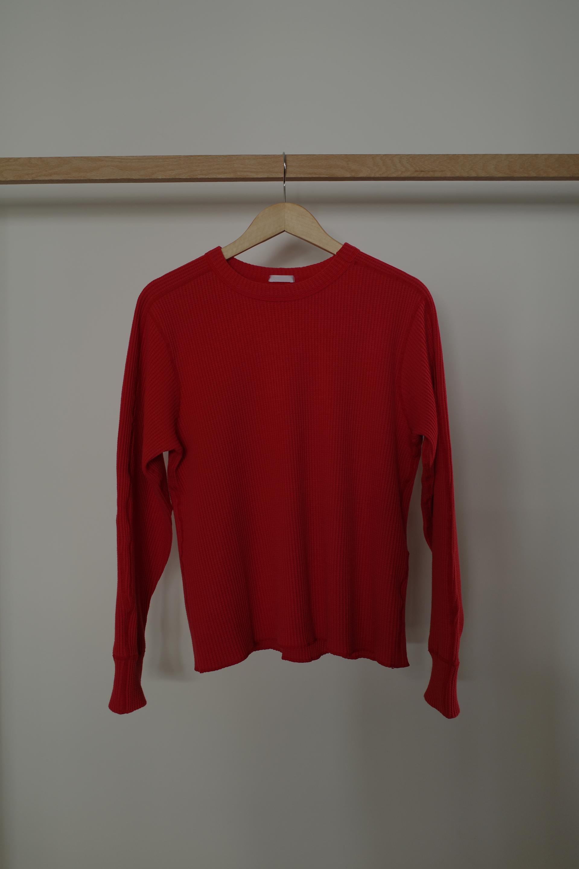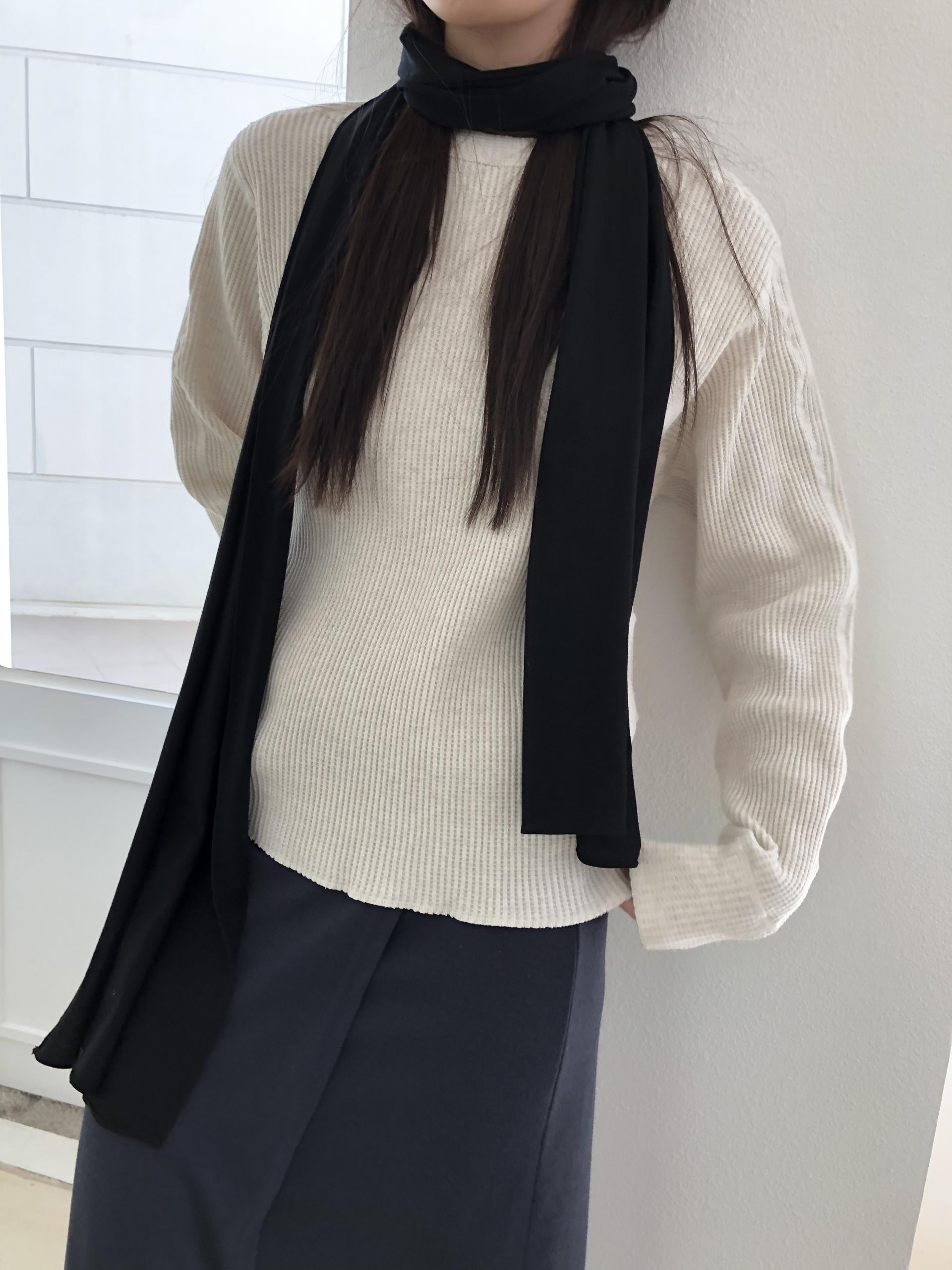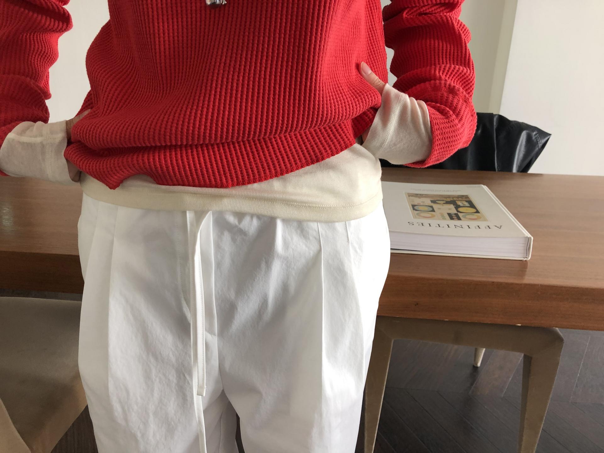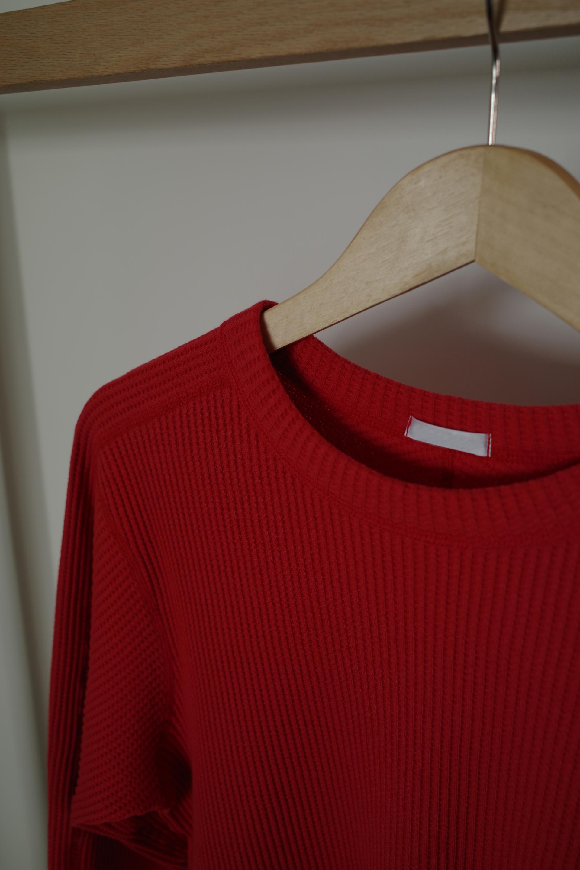 잔잔한 와플 텍스처가 살아있는 원단으로 기본 티셔츠보다 한층 분위기가 느껴지는 제품입니다. 살짝 도톰한 두께감으로 여름을 제외하고 두고두고 활용하기 좋고, 단독으로 입어도 밋밋하지 않아 추천드리는 티셔츠입니다.