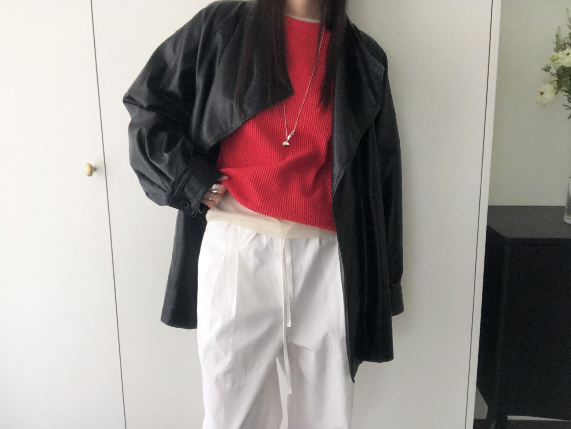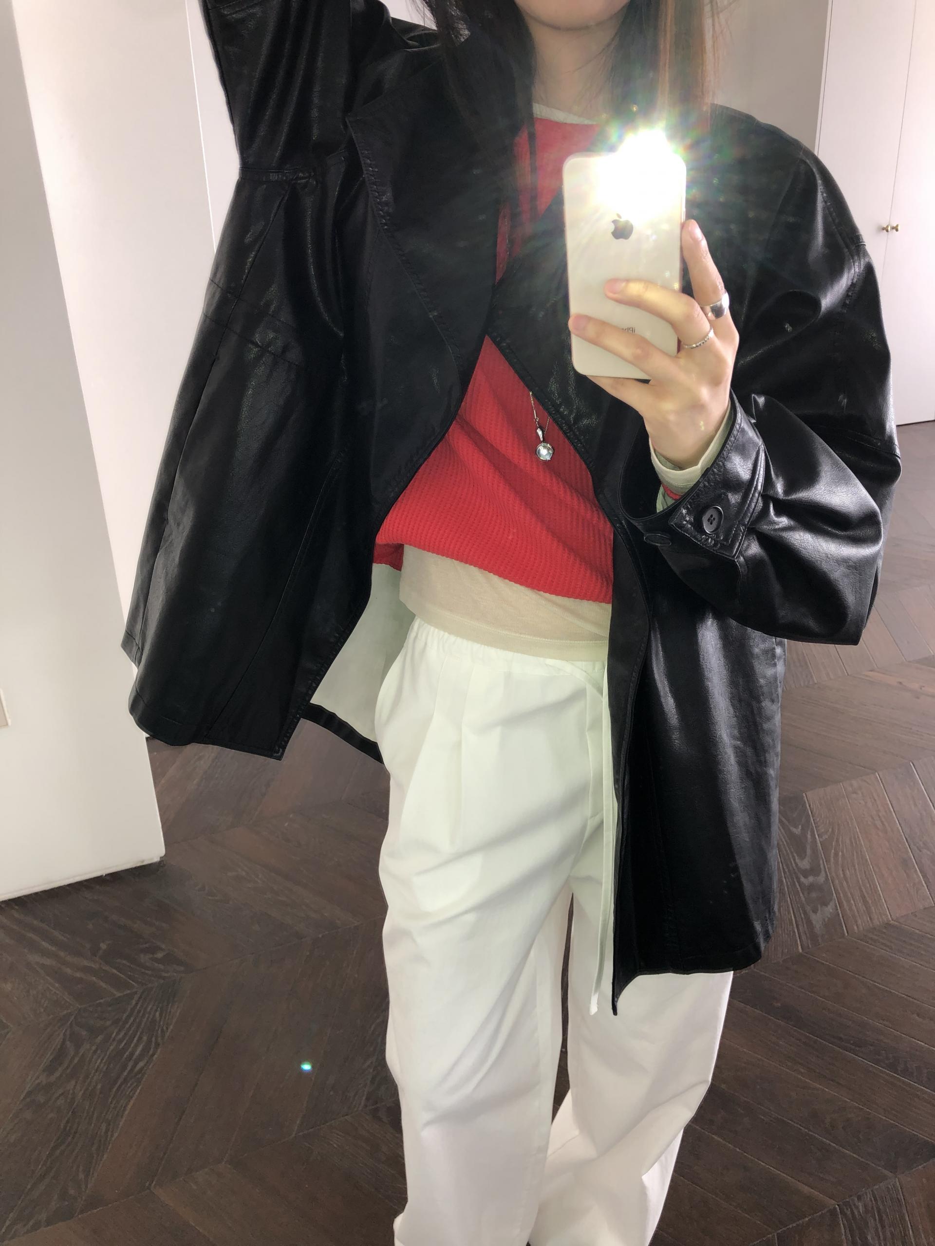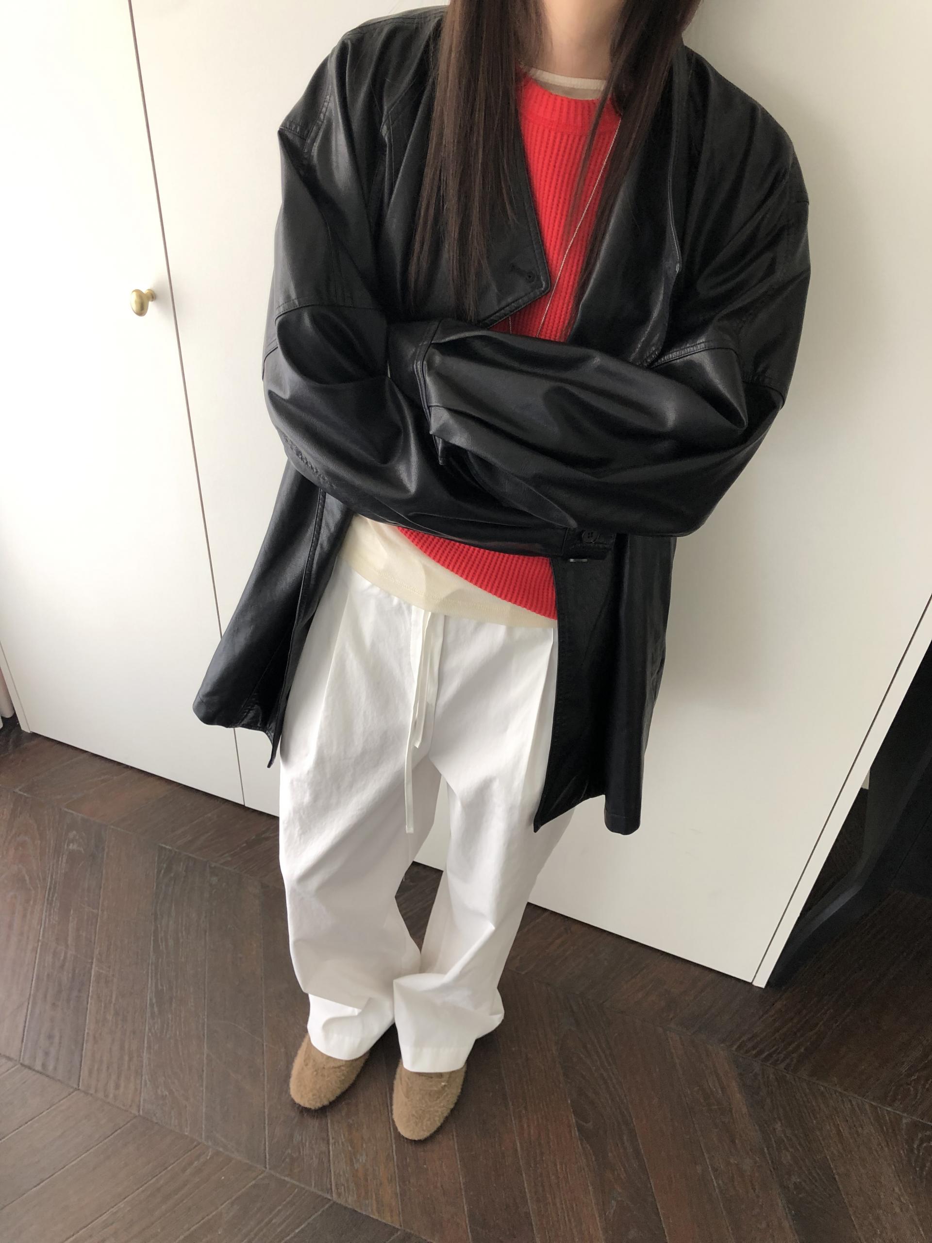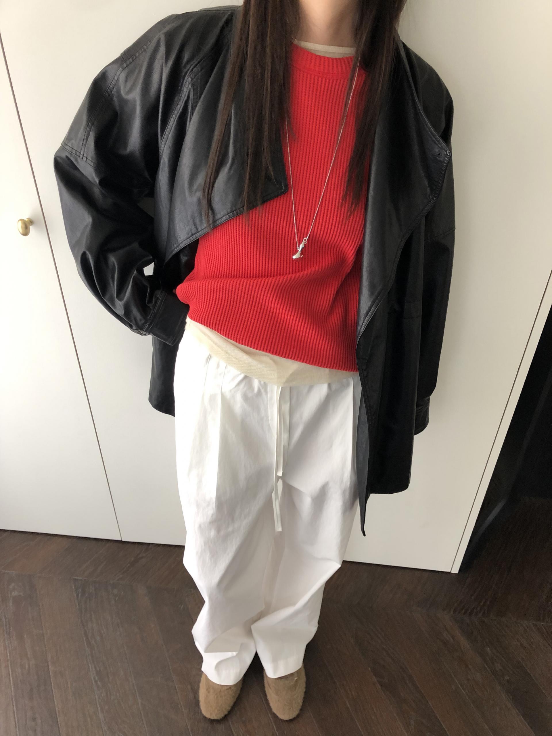 넥~어깨, 소매까지 같은 컬러의 스티치 디테일을 더해 작은 포인트를 주었어요. 작지만 라인들을 약간 또렷하게 만들어주어 기본 티셔츠처럼 편하게 입으면서도 심심하지 않게 연출됩니다.