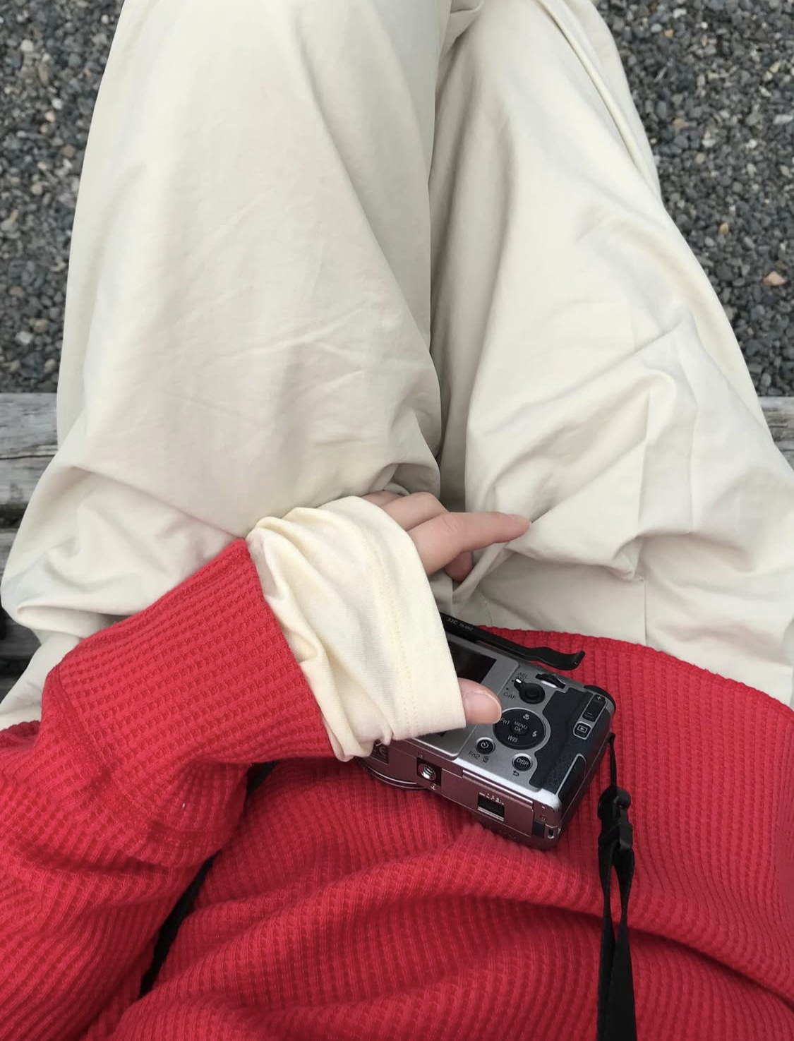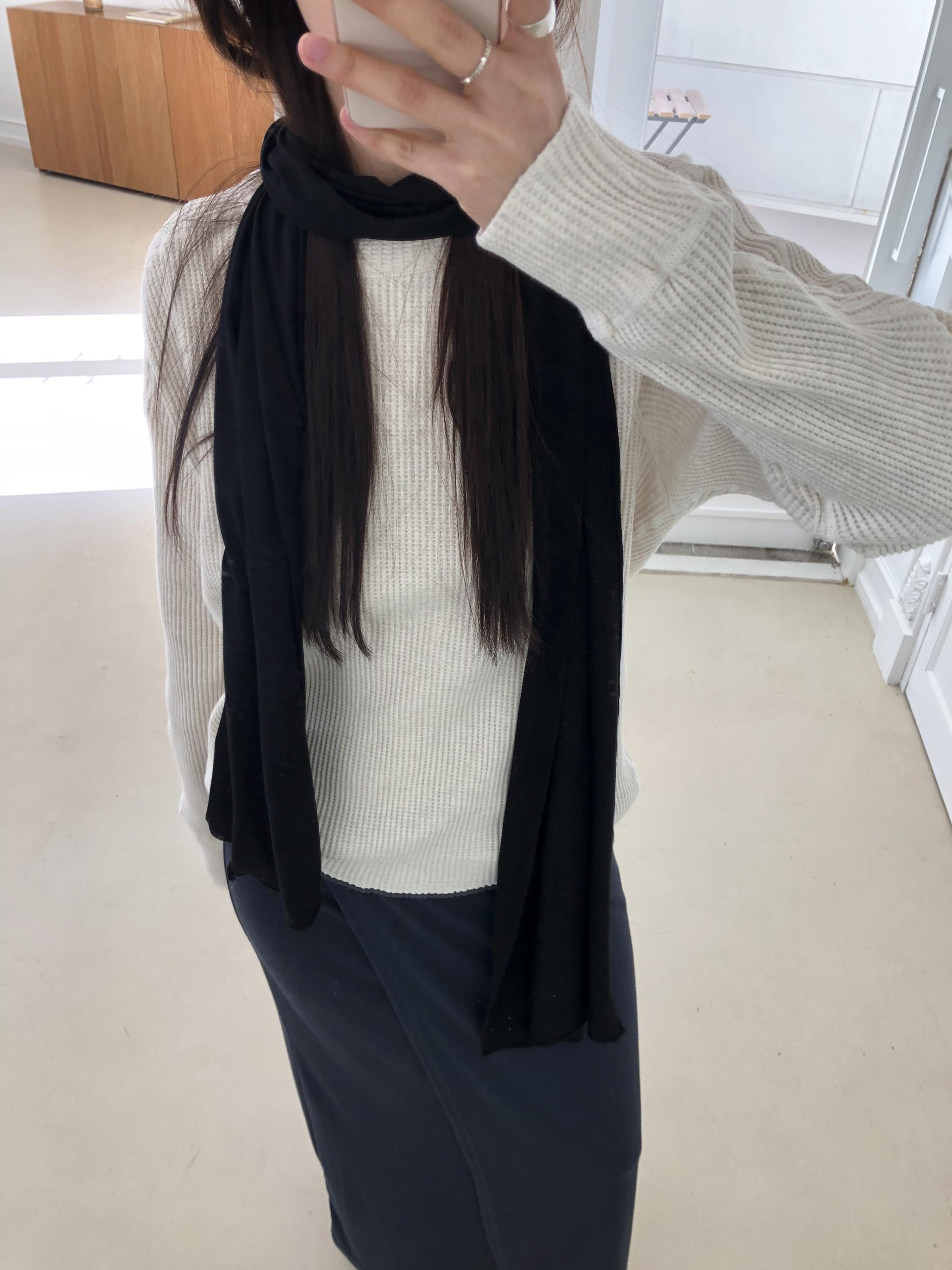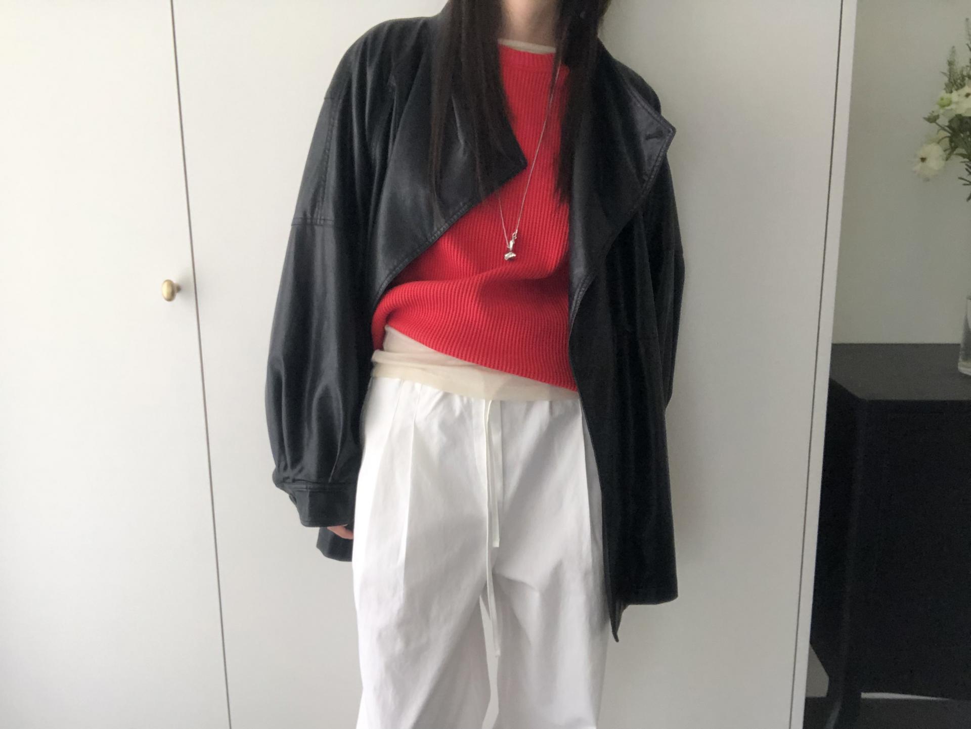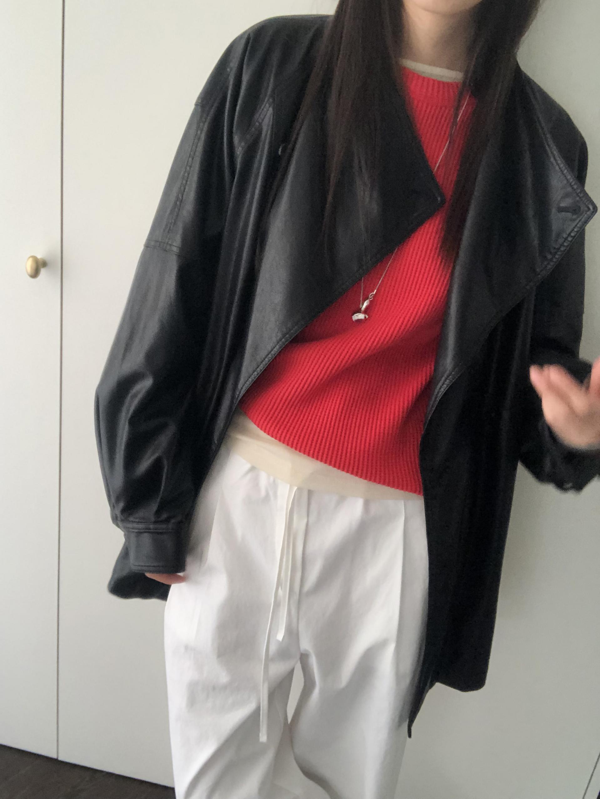 넥~어깨, 소매까지 같은 컬러의 스티치 디테일을 더해 작은 포인트를 주었어요. 작지만 라인들을 약간 또렷하게 만들어주어 기본 티셔츠처럼 편하게 입으면서도 심심하지 않게 연출됩니다.