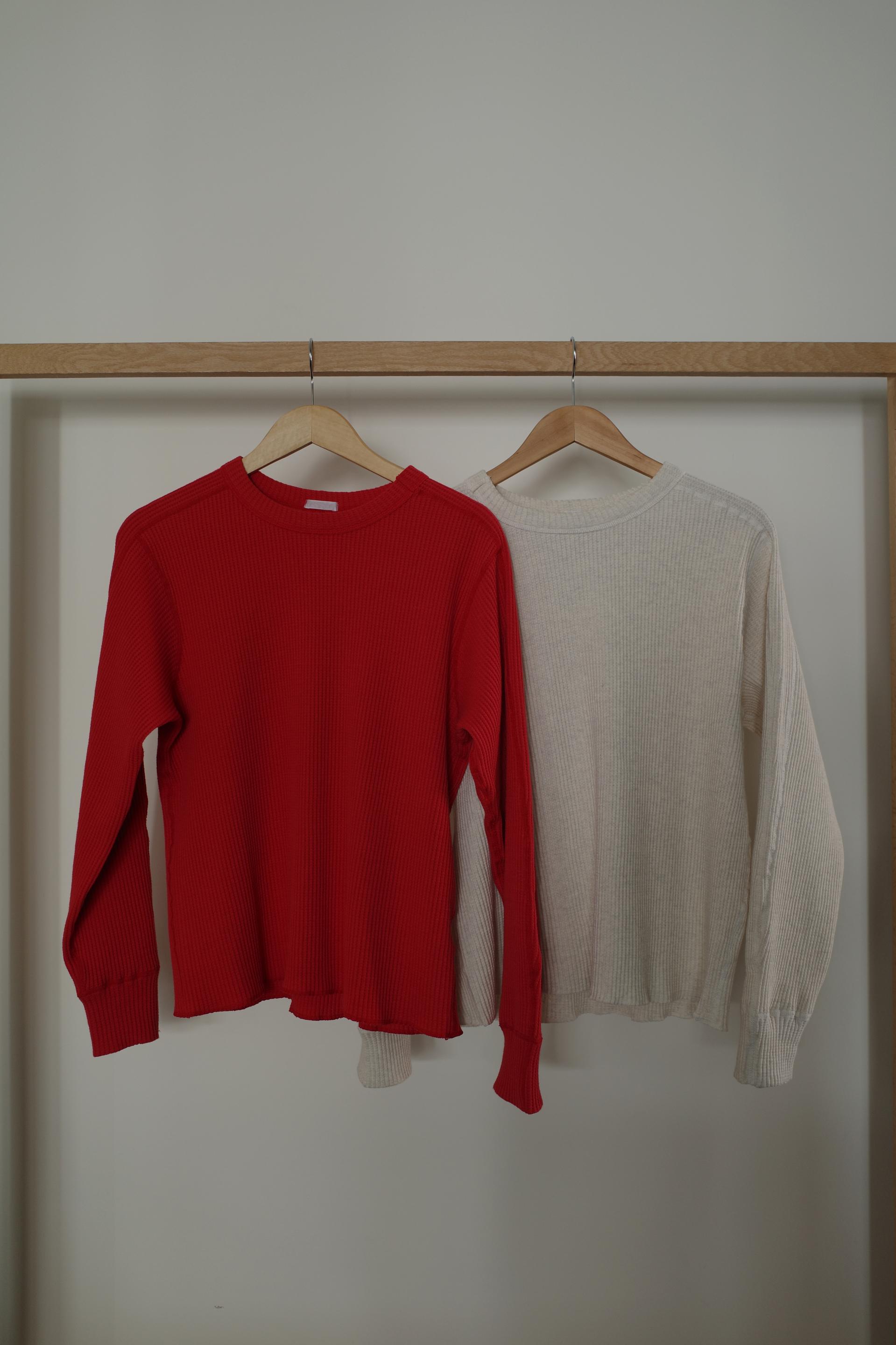 내추럴함의 정수인 오트밀 컬러와 산뜻하고 발랄한 체리 레드 컬러 두가지로 보여드립니다.