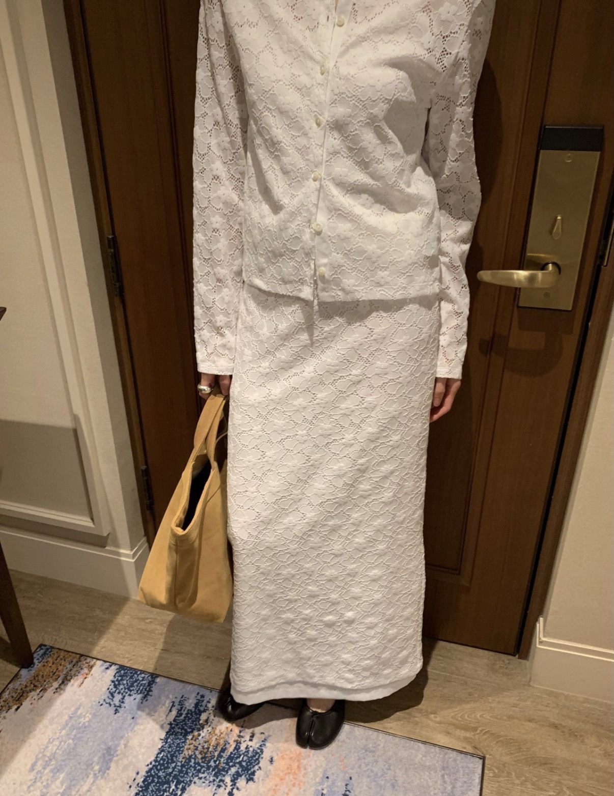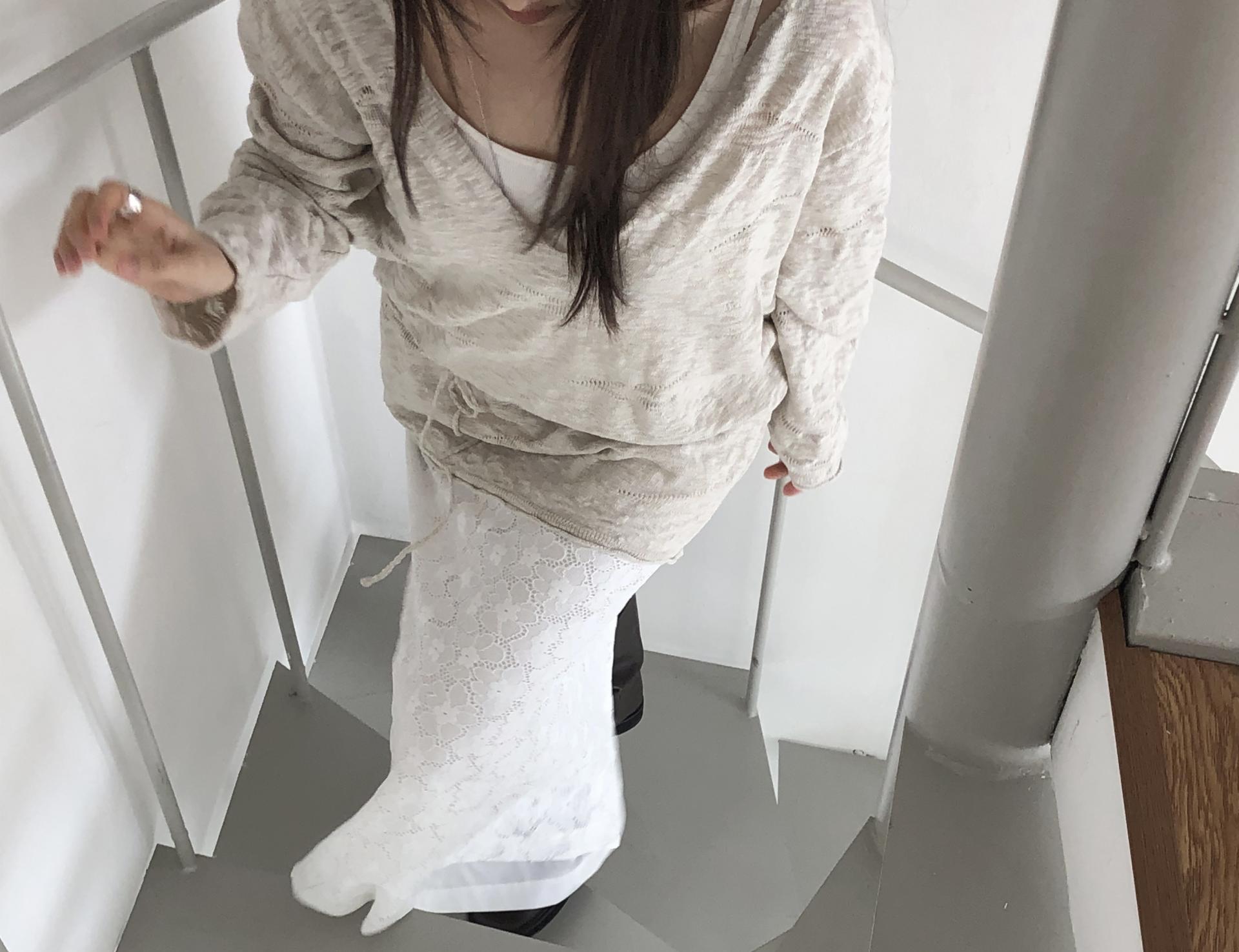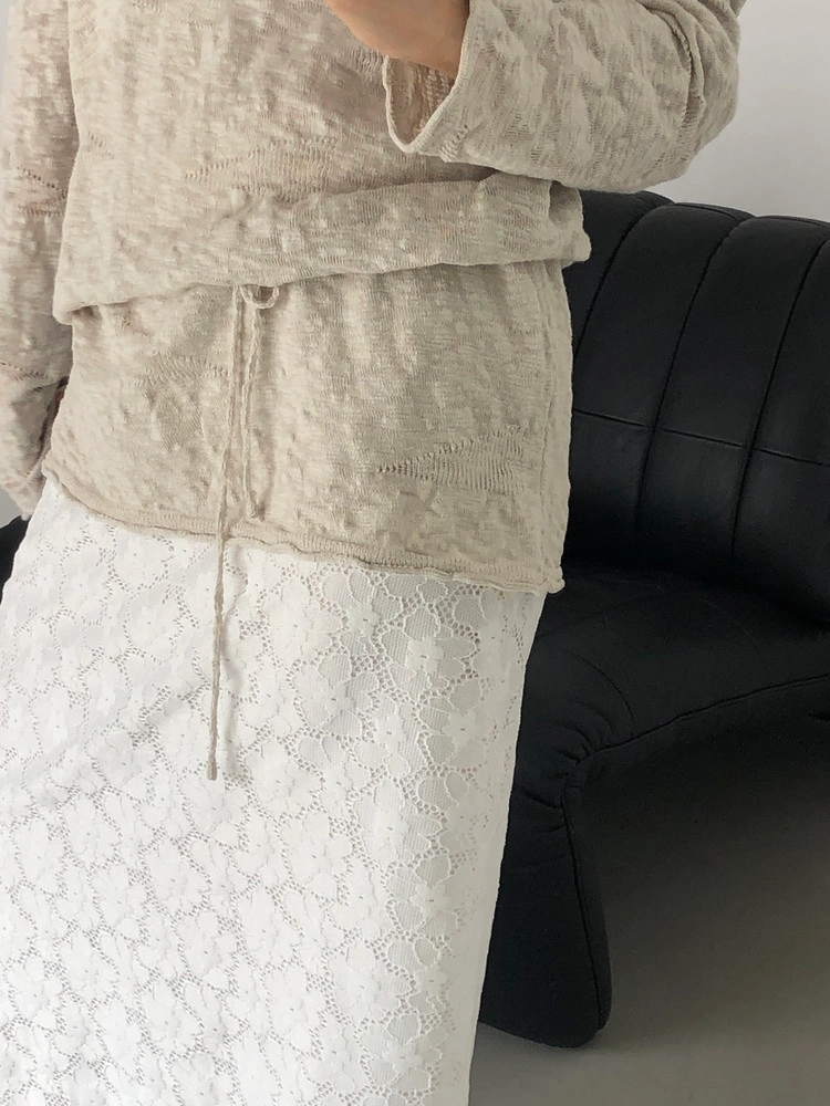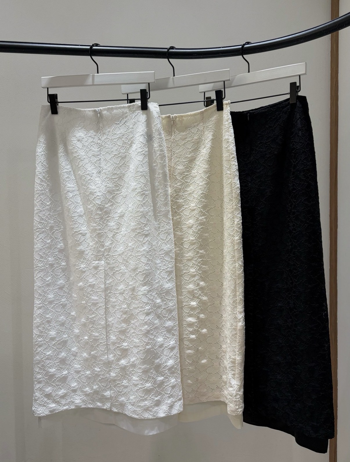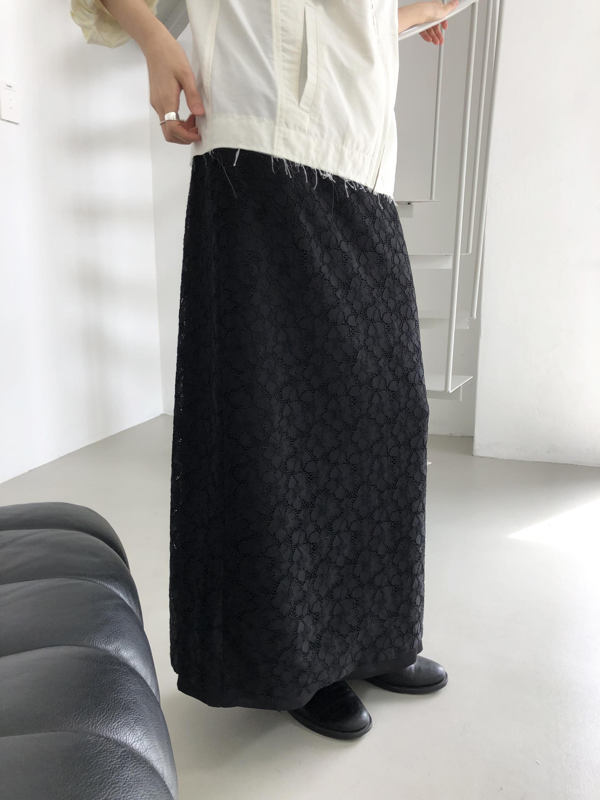 플라워 모티브가 잔잔히 이어지면서, 섬세한 무드가 느껴지는 크로셰 짜임의 맥시 스커트입니다.