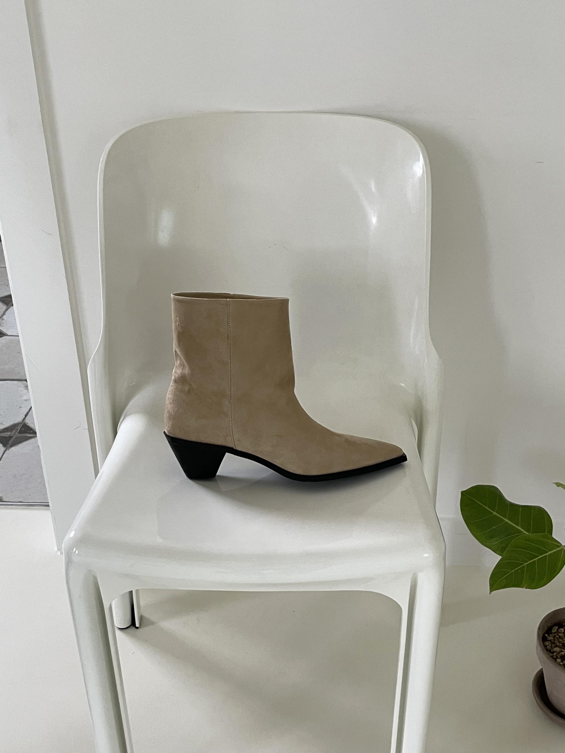가을시즌을 준비하다보니 신발에도 욕심이 많이 생기더라구요. 샘플만 4-5가지 받아봤는데 그 중 추리고 추려서 보여드리는 앵클 부츠입니다. 많은 장점들이 있지만, 다리가 정~말 길고 얇아보여요. 착용해보시면 아마 모두 만족하실거예요 :) 부츠 입구의 통이 여유있게 디자인되어 지퍼가 없음에도 신고 벗기 수월하고, 상대적으로 종아리가 매우 슬림해보입니다. 게다가 앞코가 날렵해서 부츠 통이 넓어도 투박해보이지 않아 좋았어요. 밑창은 앞코보다 조금 앞쪽으로 돌출되어 있어서 앞코 가죽 벗겨짐도 최소화 해준답니다. 굽이 안정감 있어서 5.5cm 임에도 착화감이 편했어요! 군더더기 없이 미니멀한 디자인으로 어떤 룩에도 쉽게 매치할 수 있는 부츠라 추천드리고 싶어요. 붉은기가 없는 애쉬 베이지 컬러와 화이트 컬러, 블랙까지 총 3컬러 준비했습니다! 애쉬 베이지 컬러는 스웨이드 소재, 화이트/블랙 컬러는 가죽입니다. 사이즈가 다양해서 좋았어요. 225~255까지 선택 가능합니다. 정사이즈 추천드리지만, 칼발이신 분들은 반사이즈 작게 주문 주셔도 될 것 같아요!