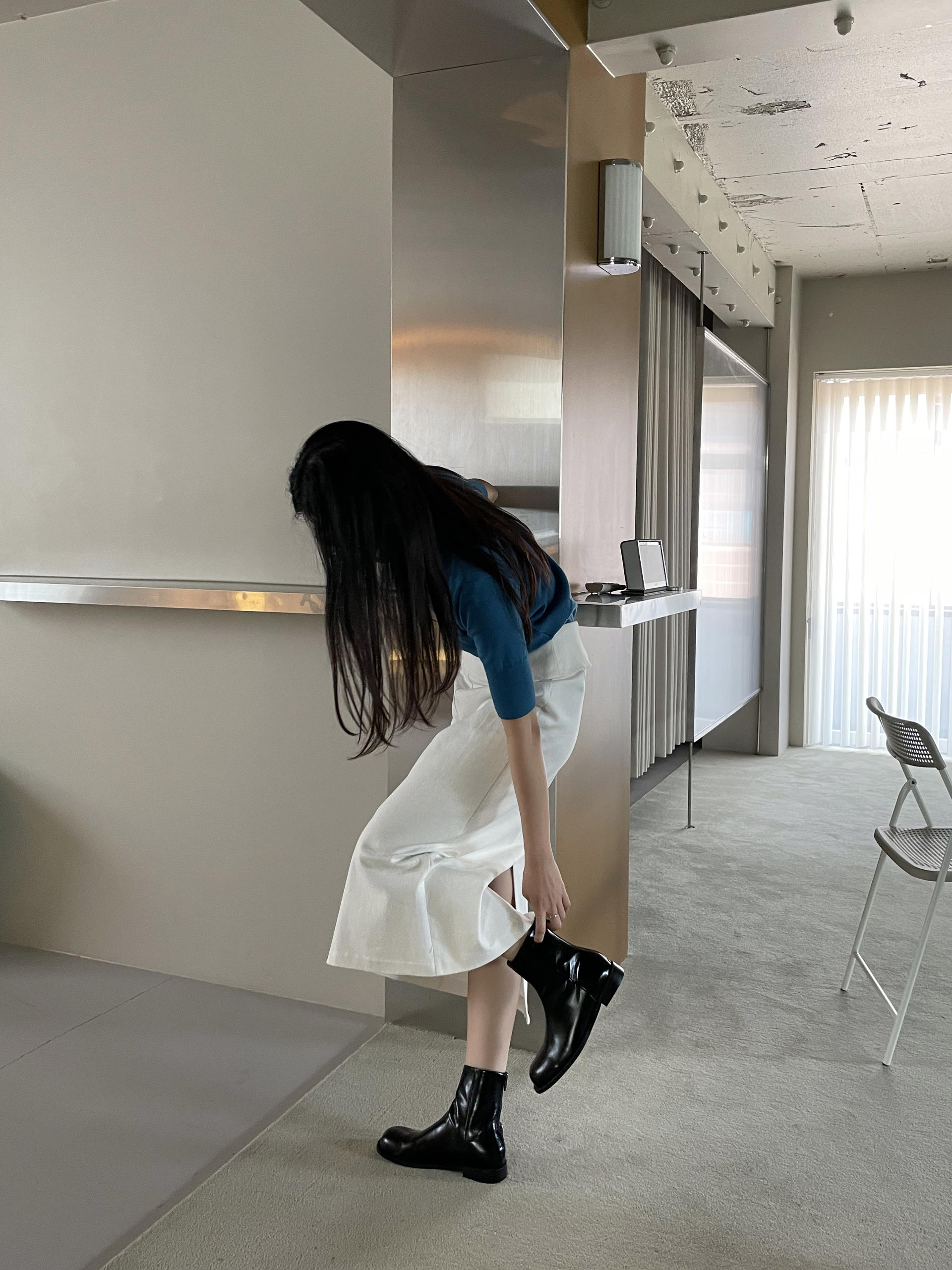 - 앞코가 살짝 각이 진 듯 둥근 쉐입이라 모던하면서 캐주얼한 느낌