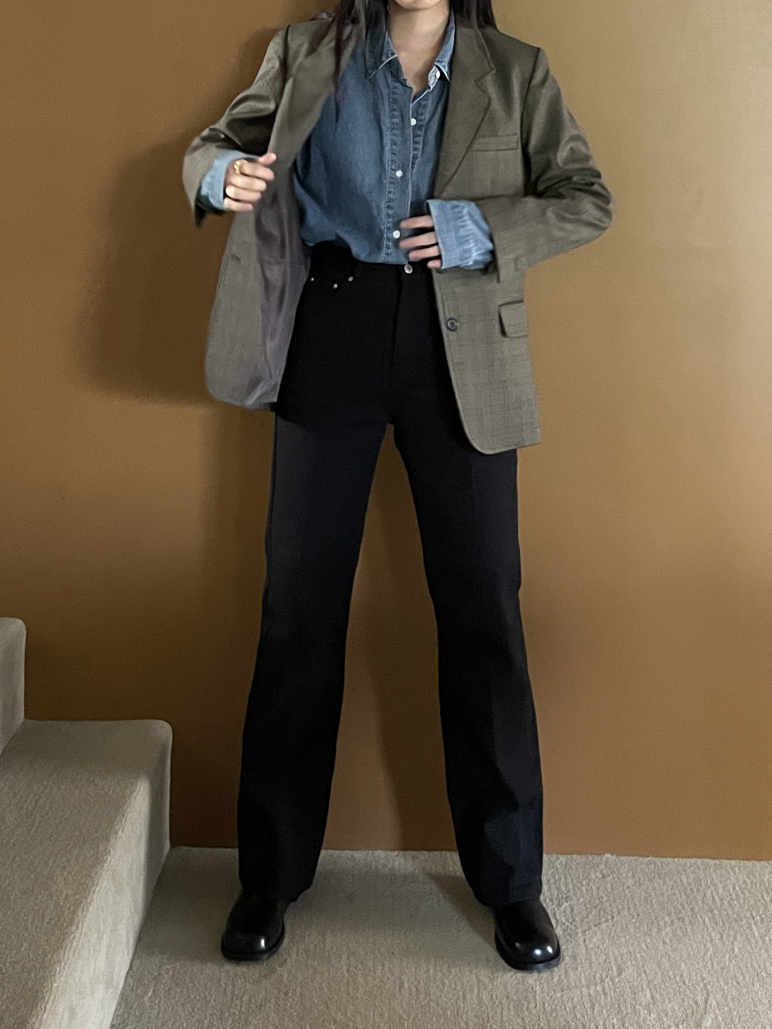 - 진한 초콜렛 색의 브라운 컬러는 데님과 매치했을 때 클래식하고 빈티지한 무드를 연출할 수 있음