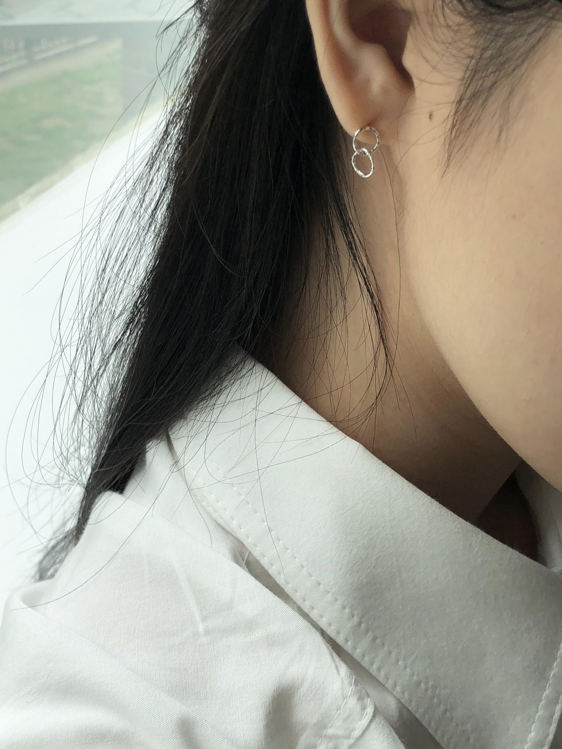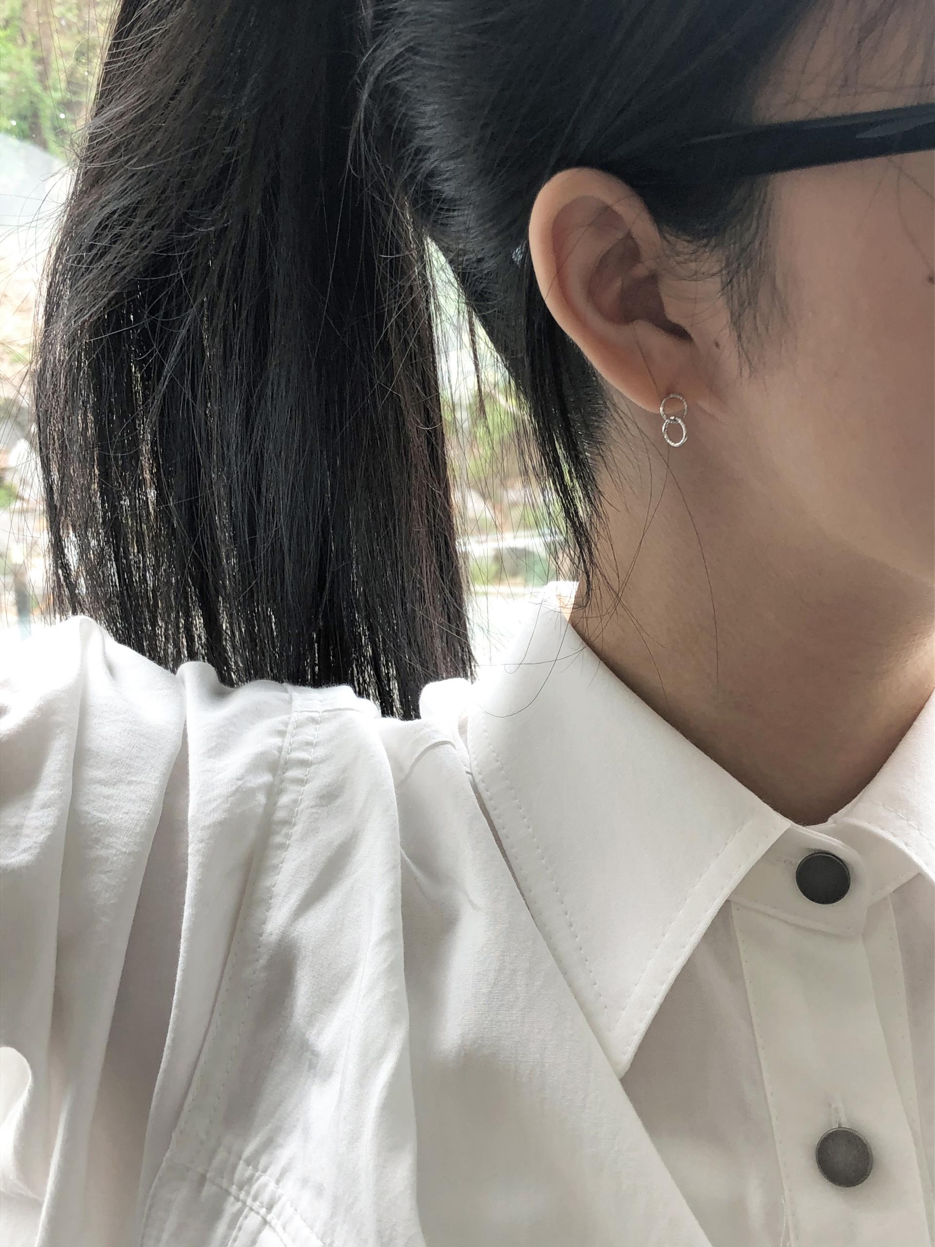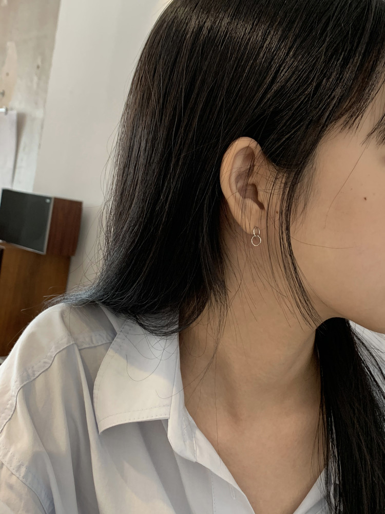 두개의 작은 원 펜던트가 이어져있는 이어링입니다.