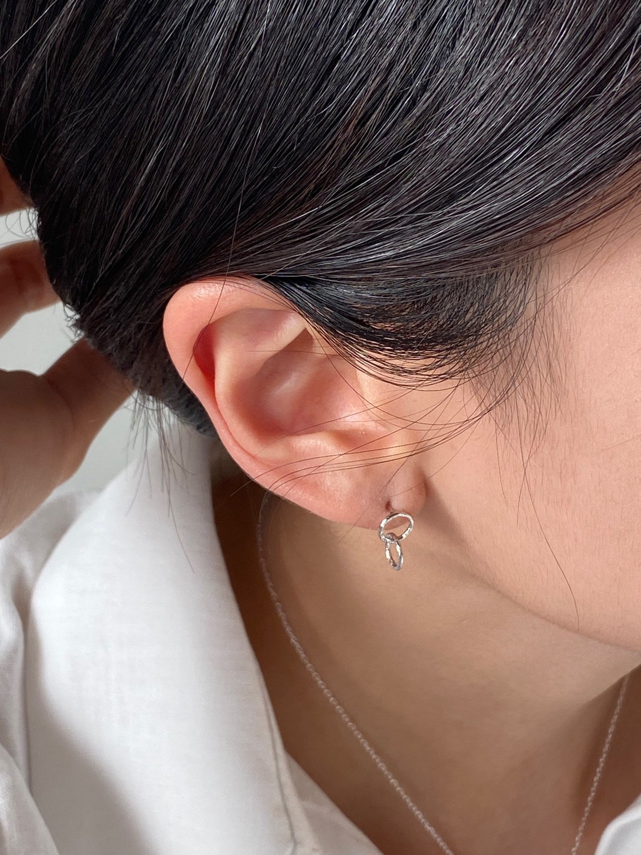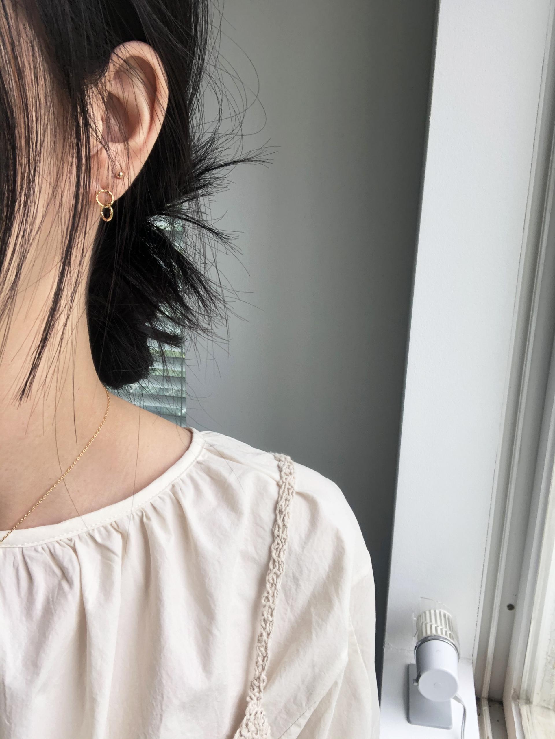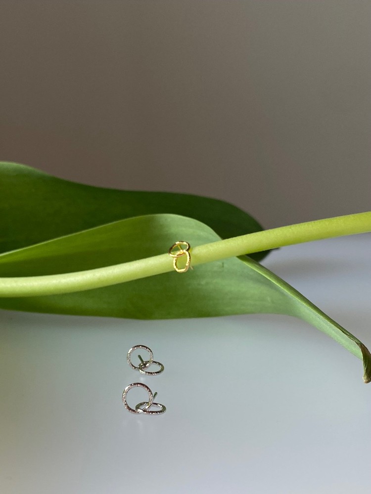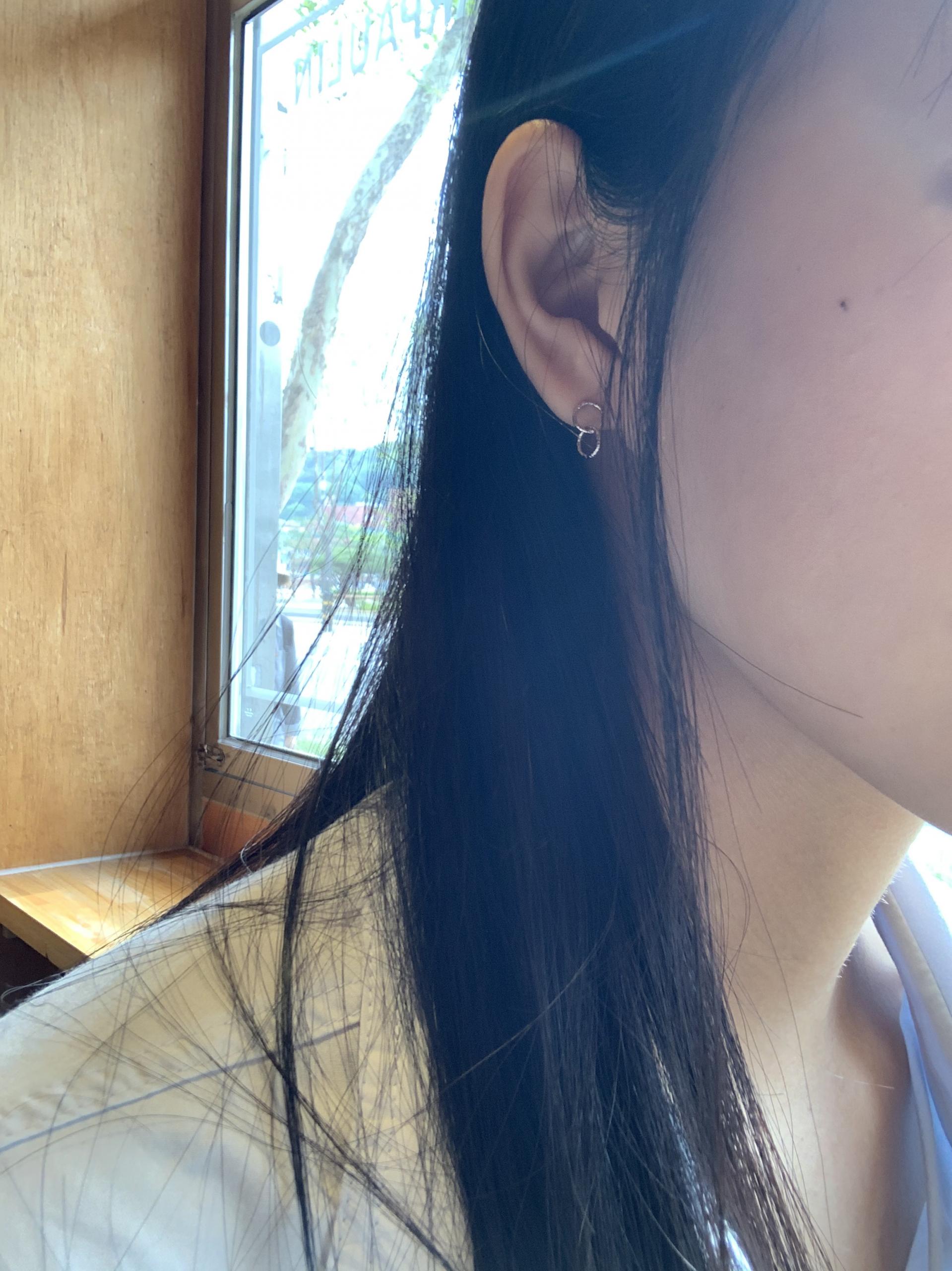두개의 작은 원 펜던트가 이어져있는 이어링입니다.