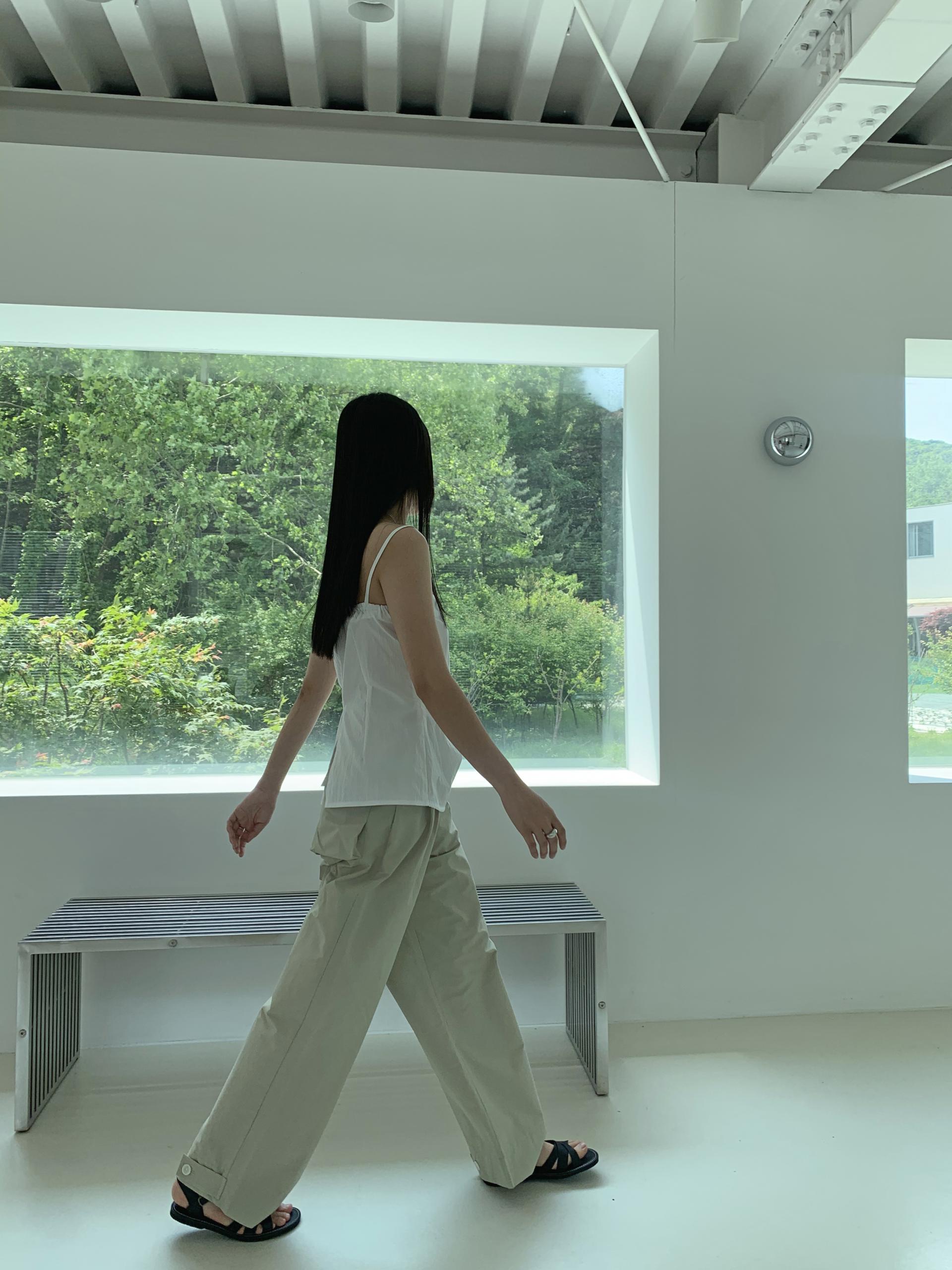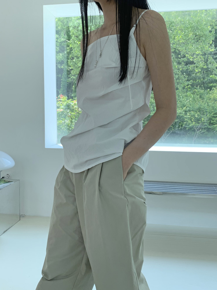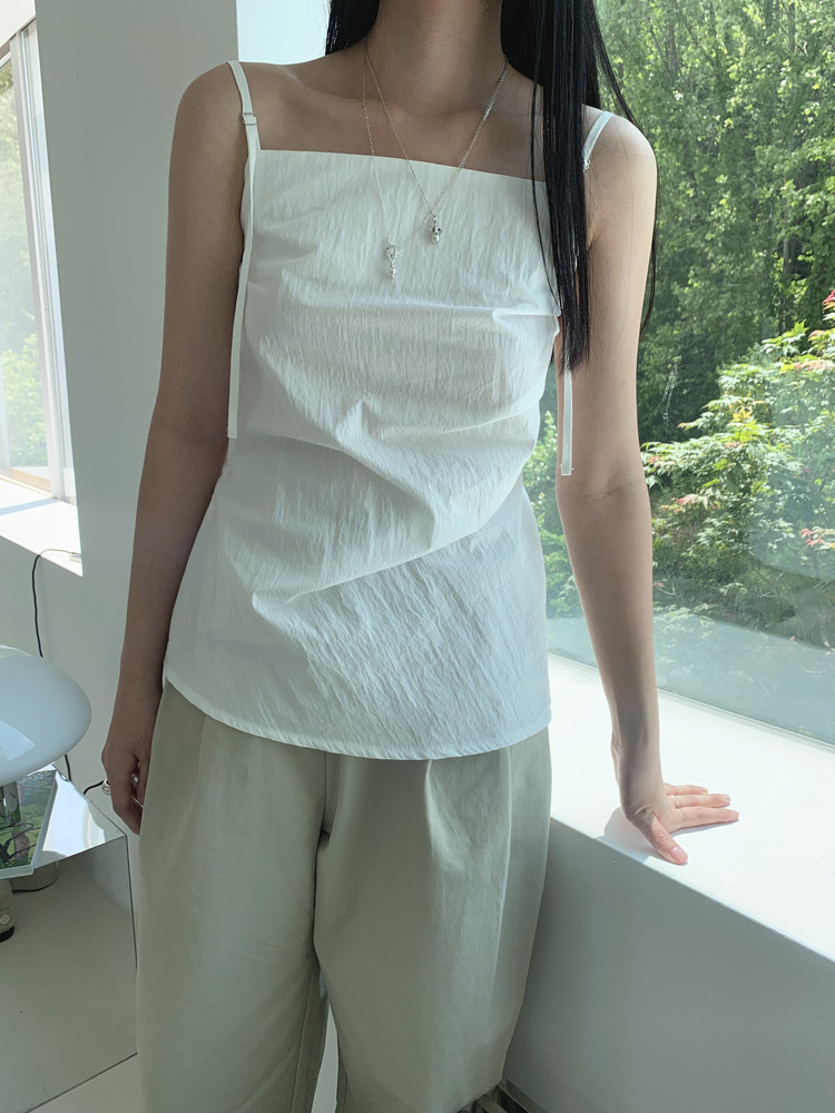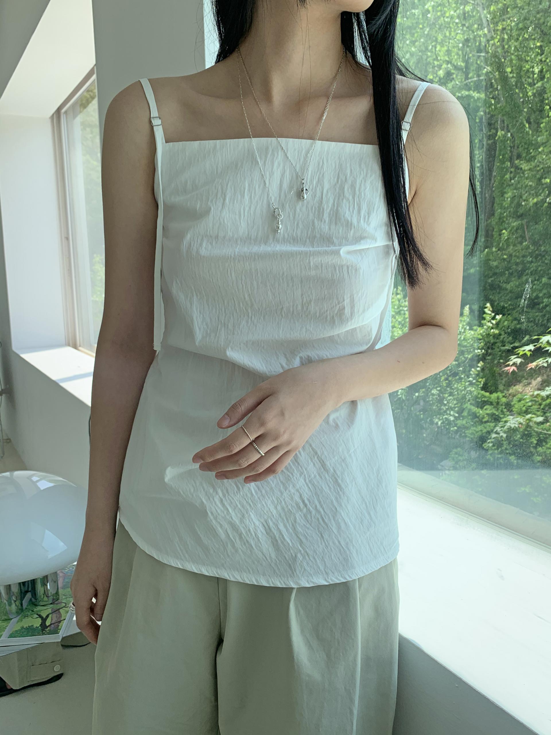 핀턱이 만드는 자연스러운 주름과 어깨에서 내려오는 길고 얇은 스트랩이 내추럴하고 자유로운 느낌을 연출해줘요.