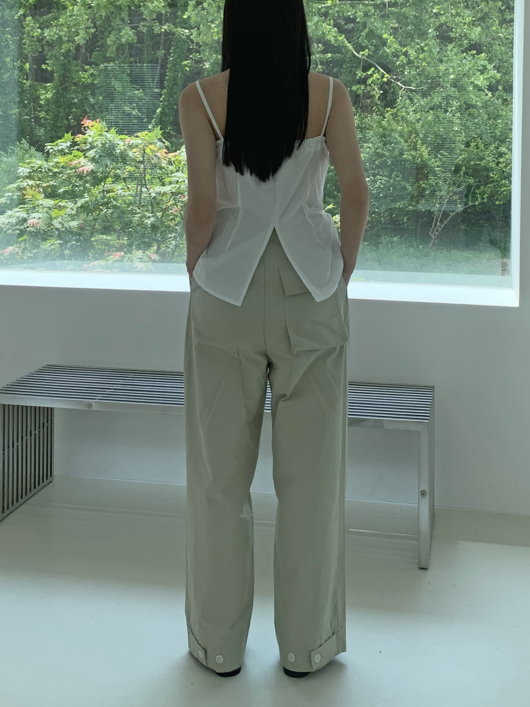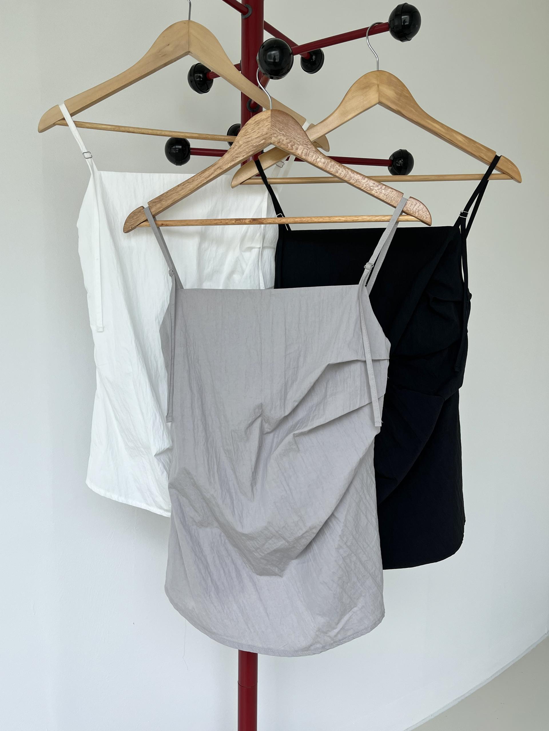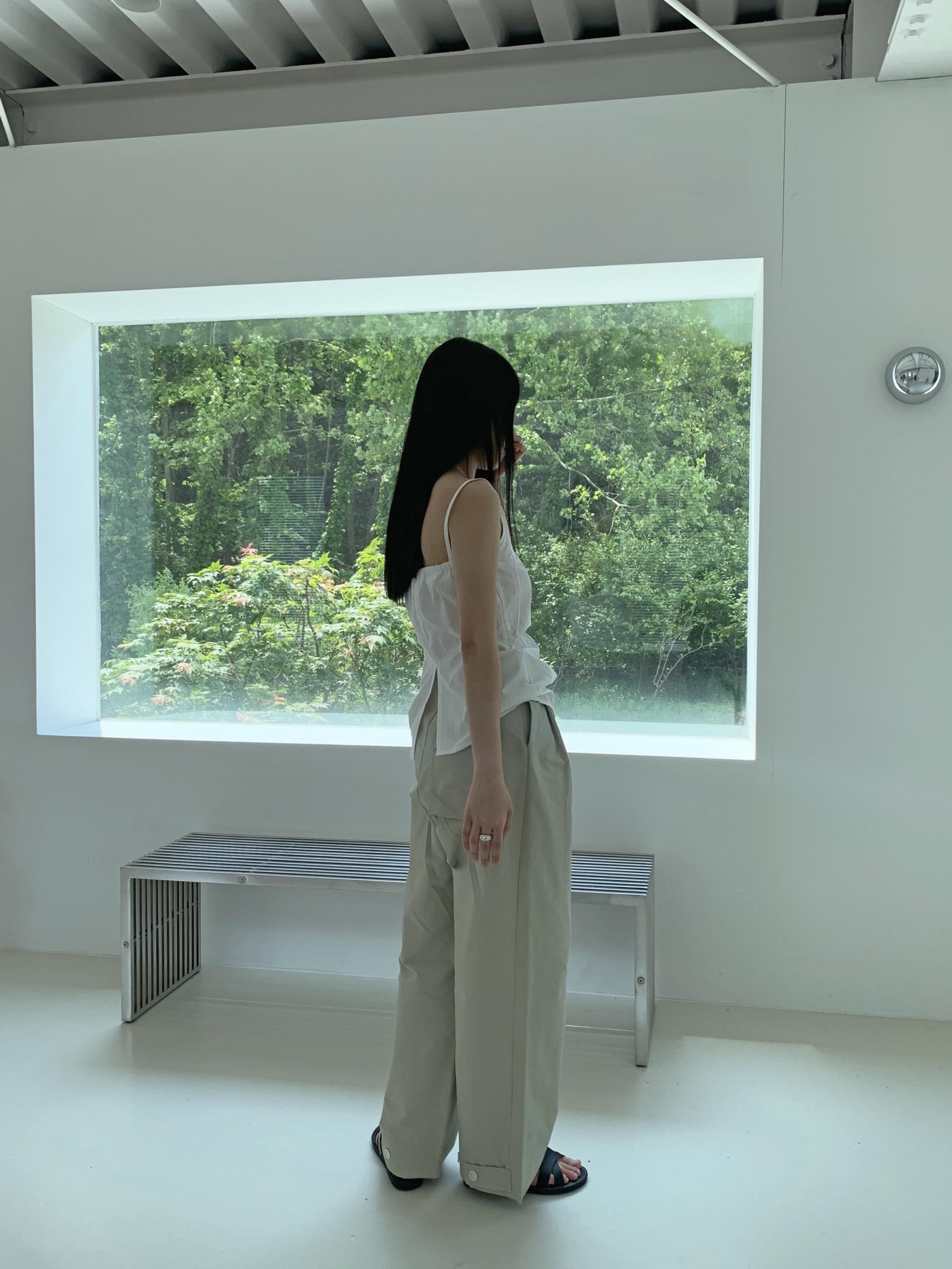 핀턱이 만드는 자연스러운 주름과 어깨에서 내려오는 길고 얇은 스트랩이 내추럴하고 자유로운 느낌을 연출해줘요.