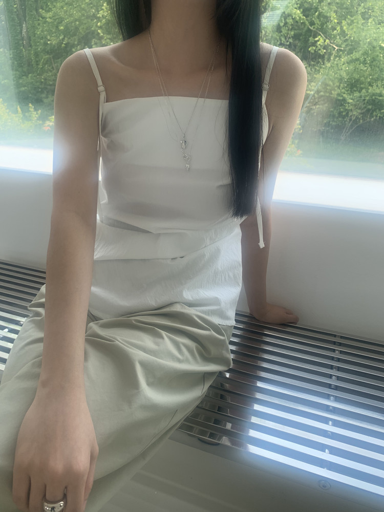 얇은 끈나시 디자인이라 한여름에 더 예쁘게 입기 좋은 아이템이에요.
