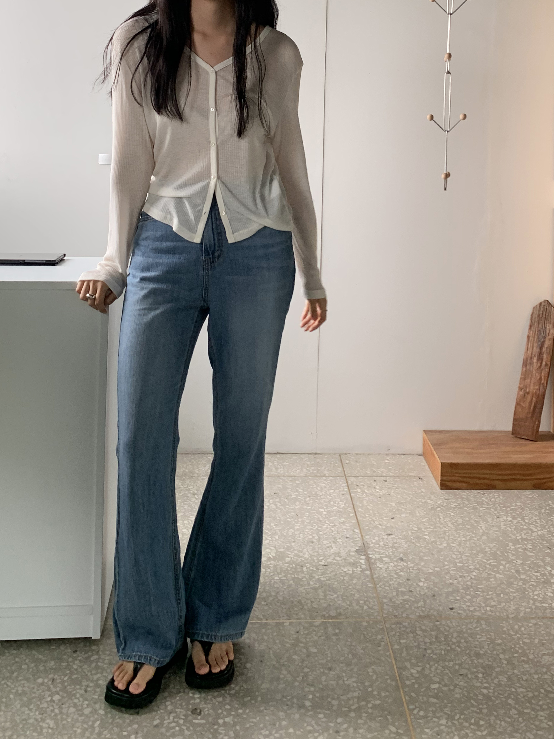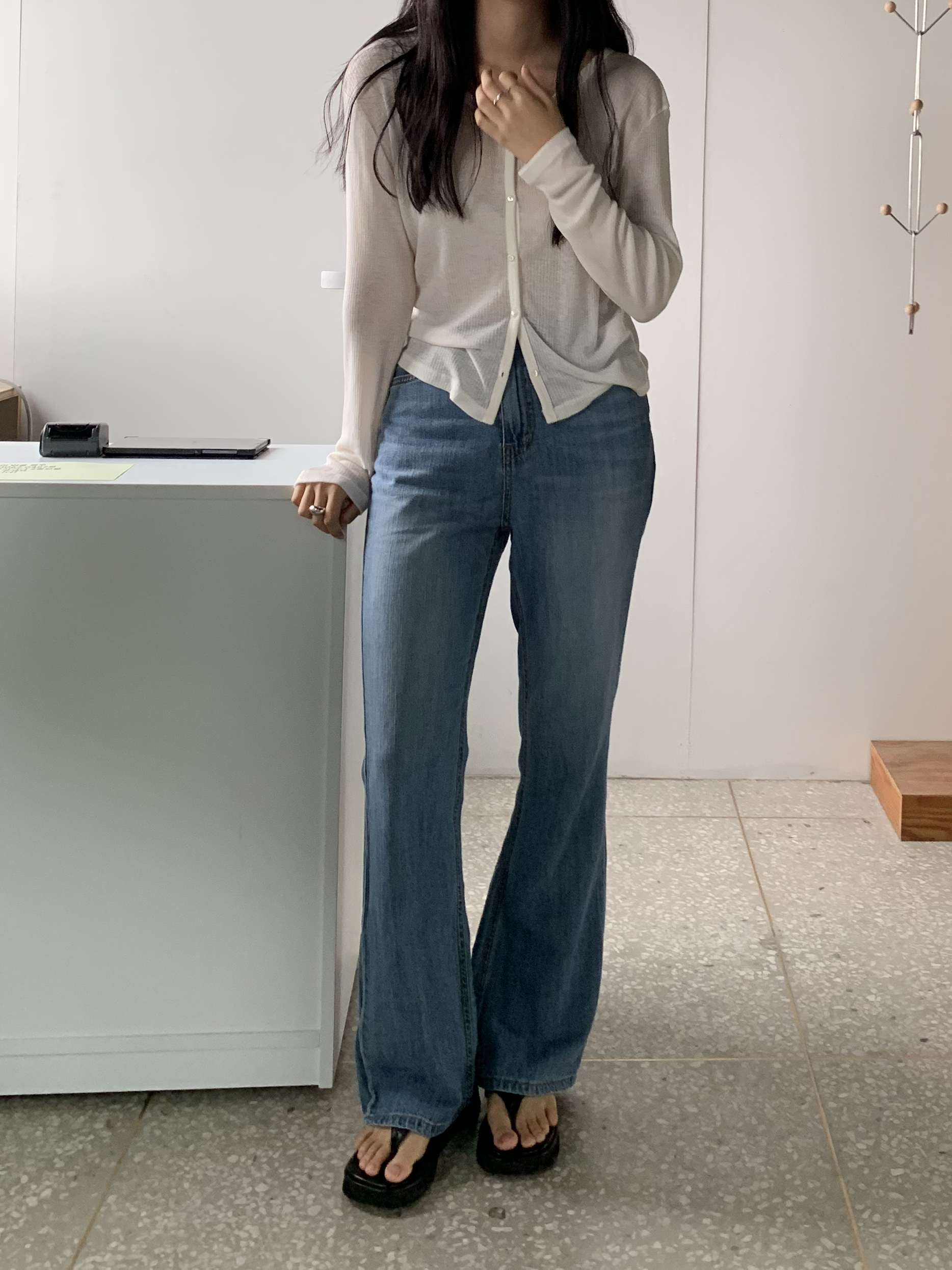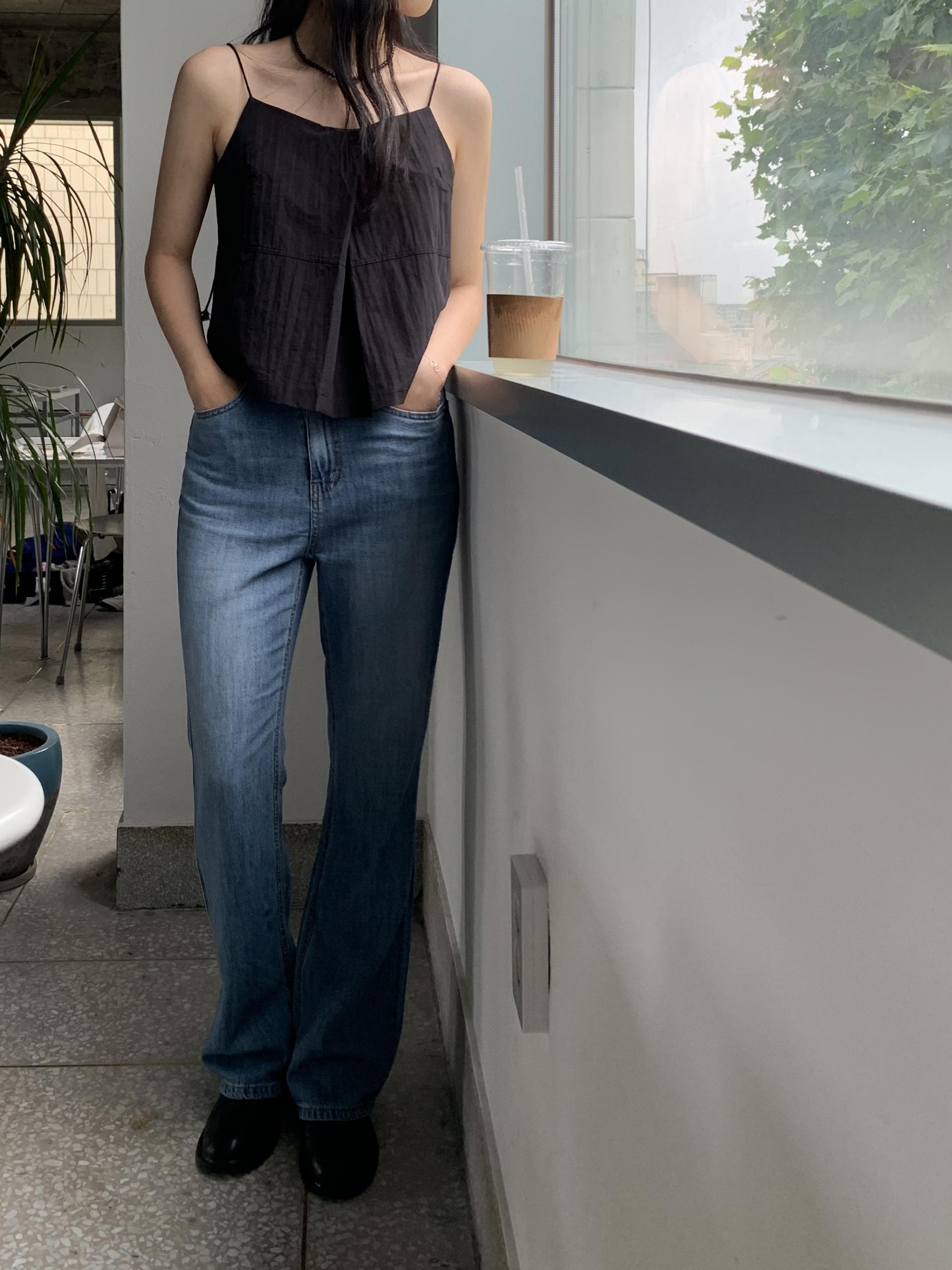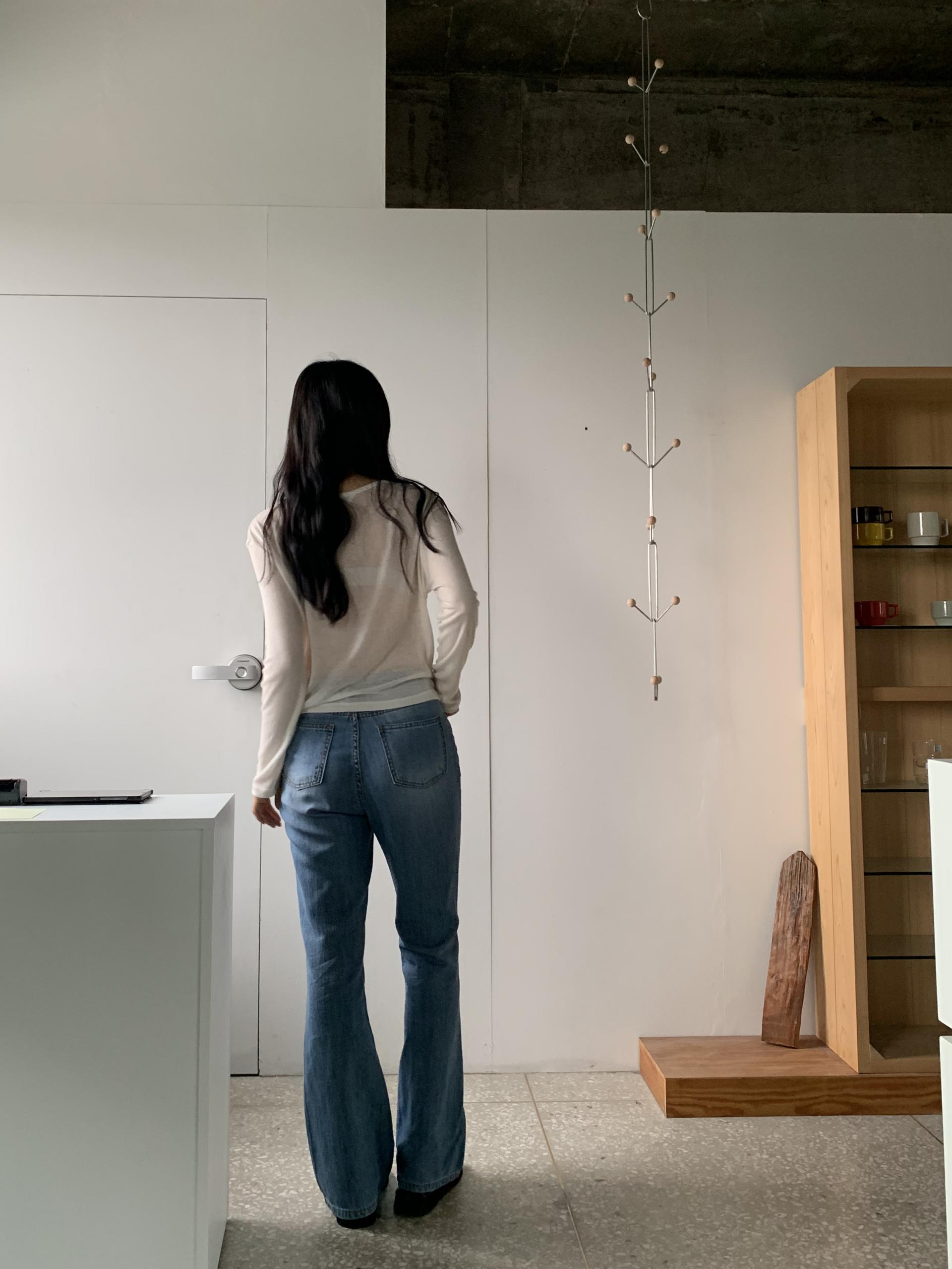 플로르 부츠컷과 비교해보자면 전체적으로 좀 더 슬림하고, 밑단이 더 넓은 편이라고 생각하시면 될 것 같아요 :)