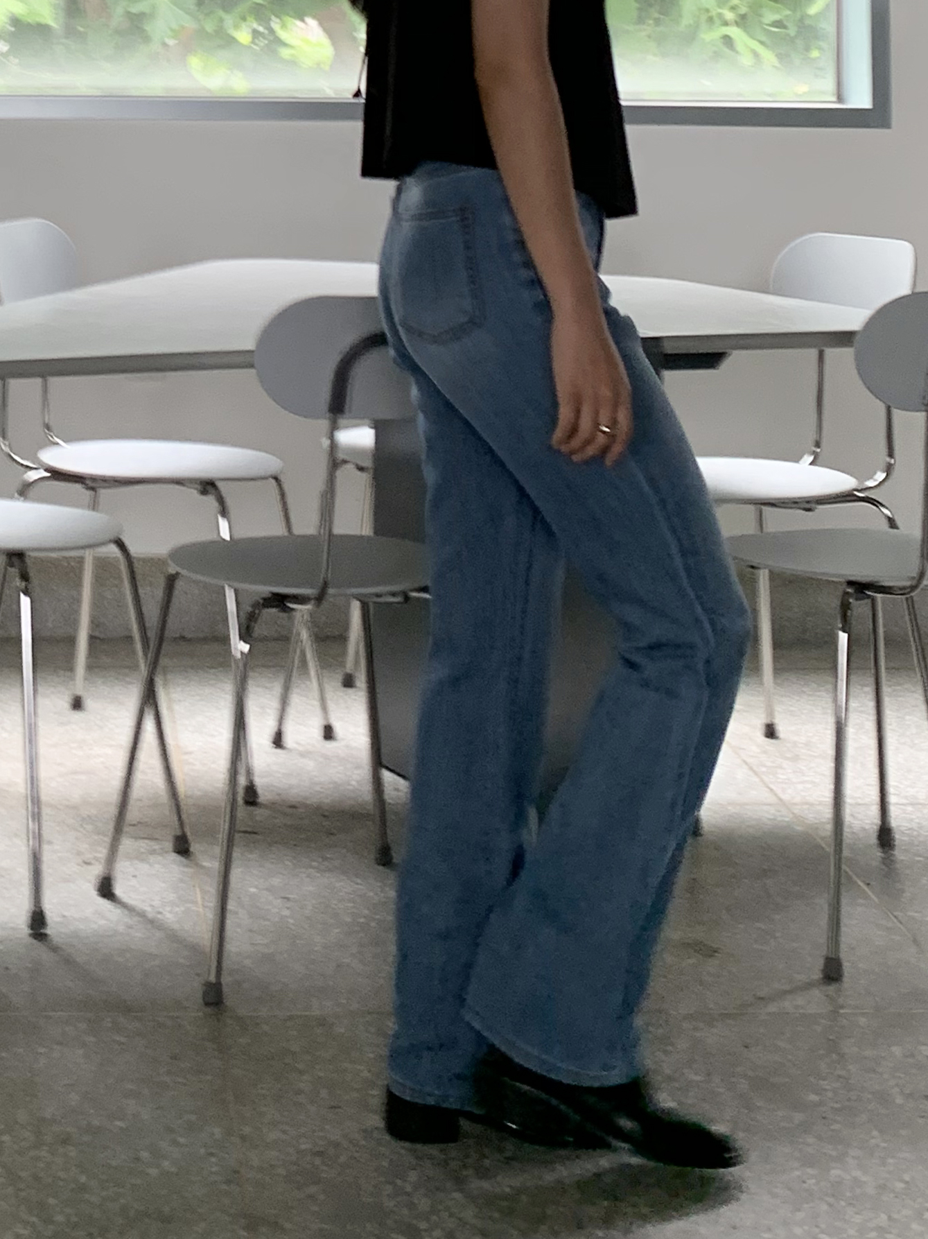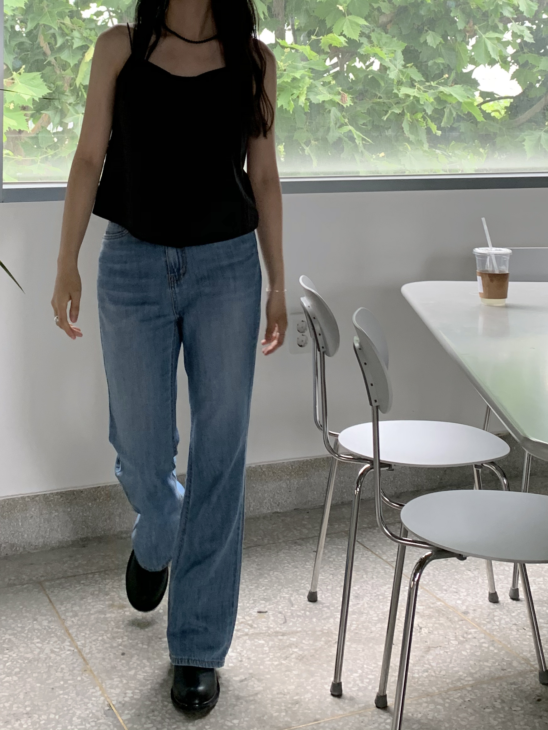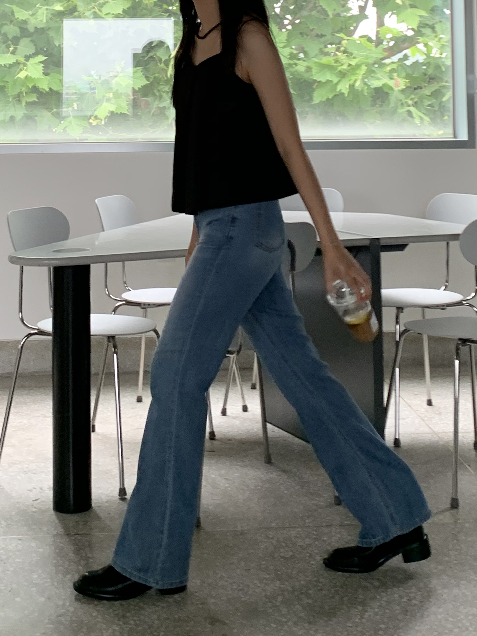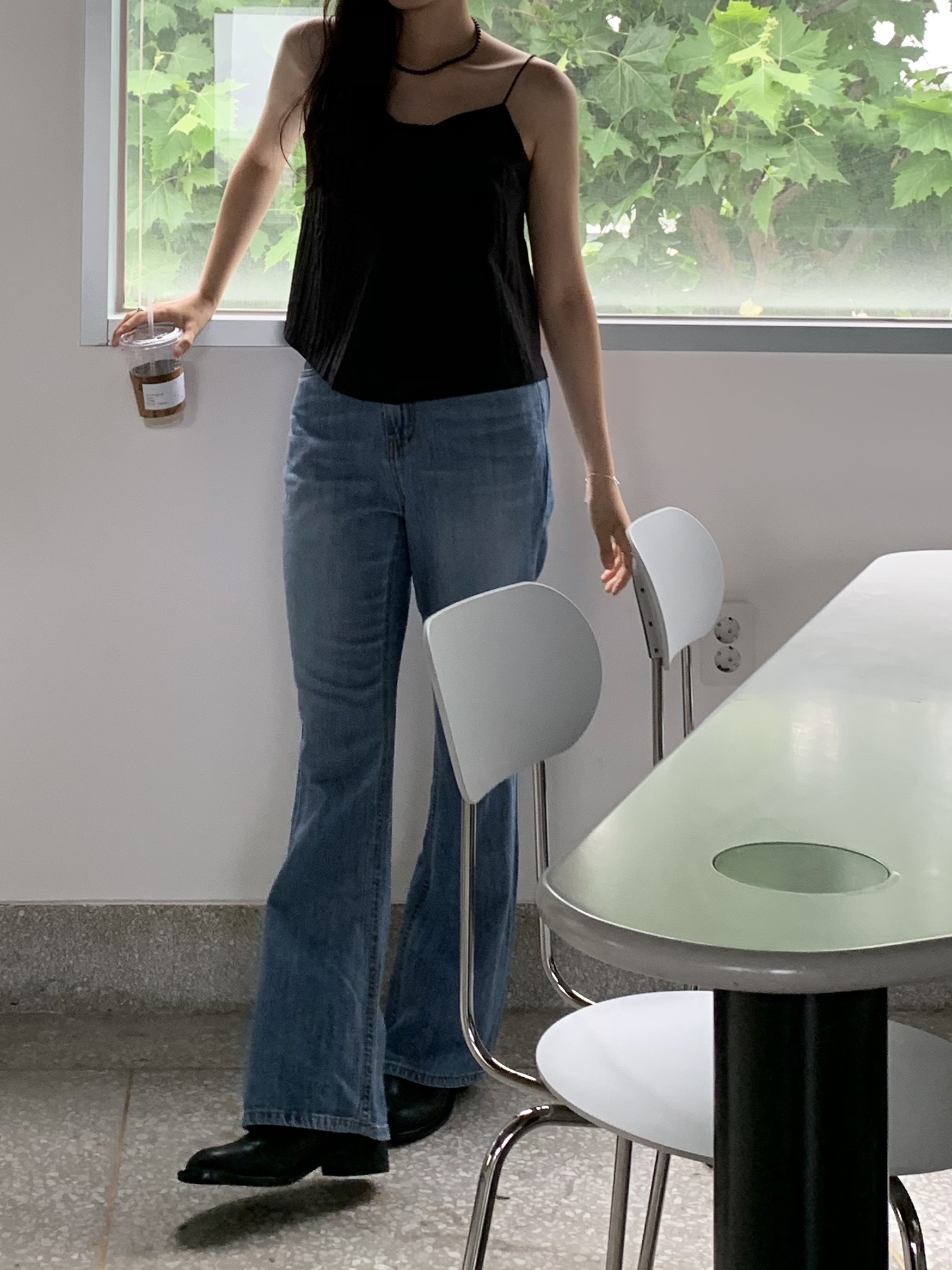 플로르 부츠컷과 비교해보자면 전체적으로 좀 더 슬림하고, 밑단이 더 넓은 편이라고 생각하시면 될 것 같아요 :)