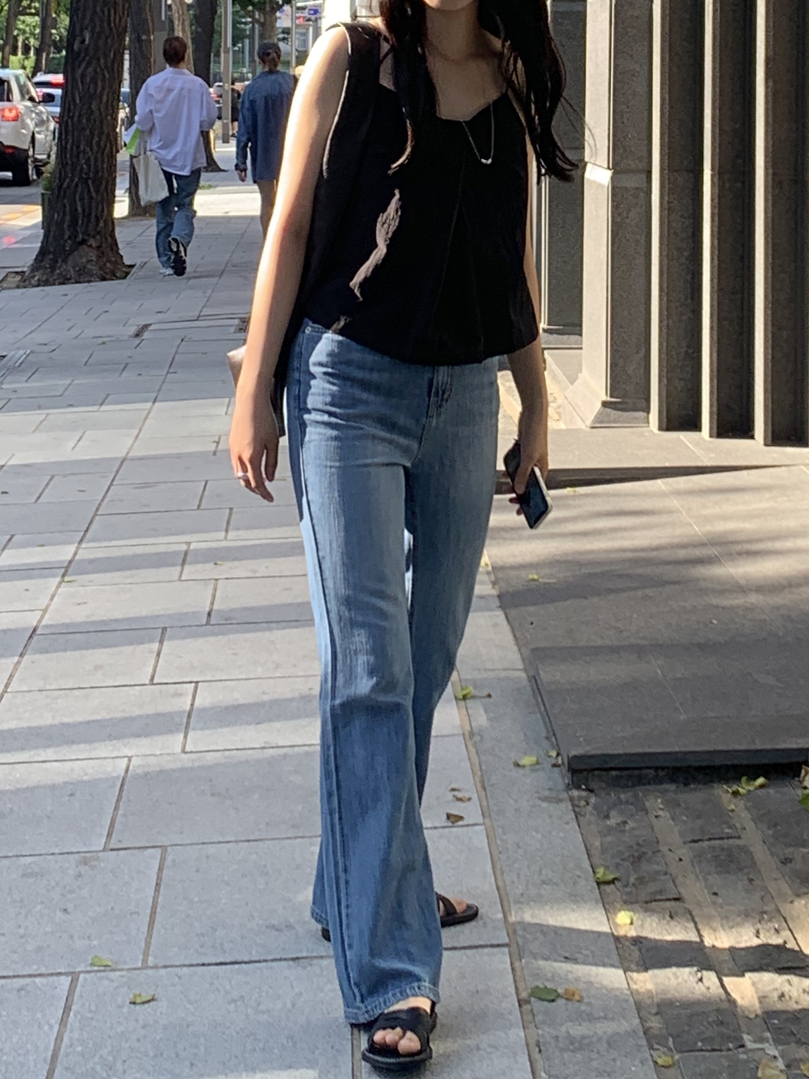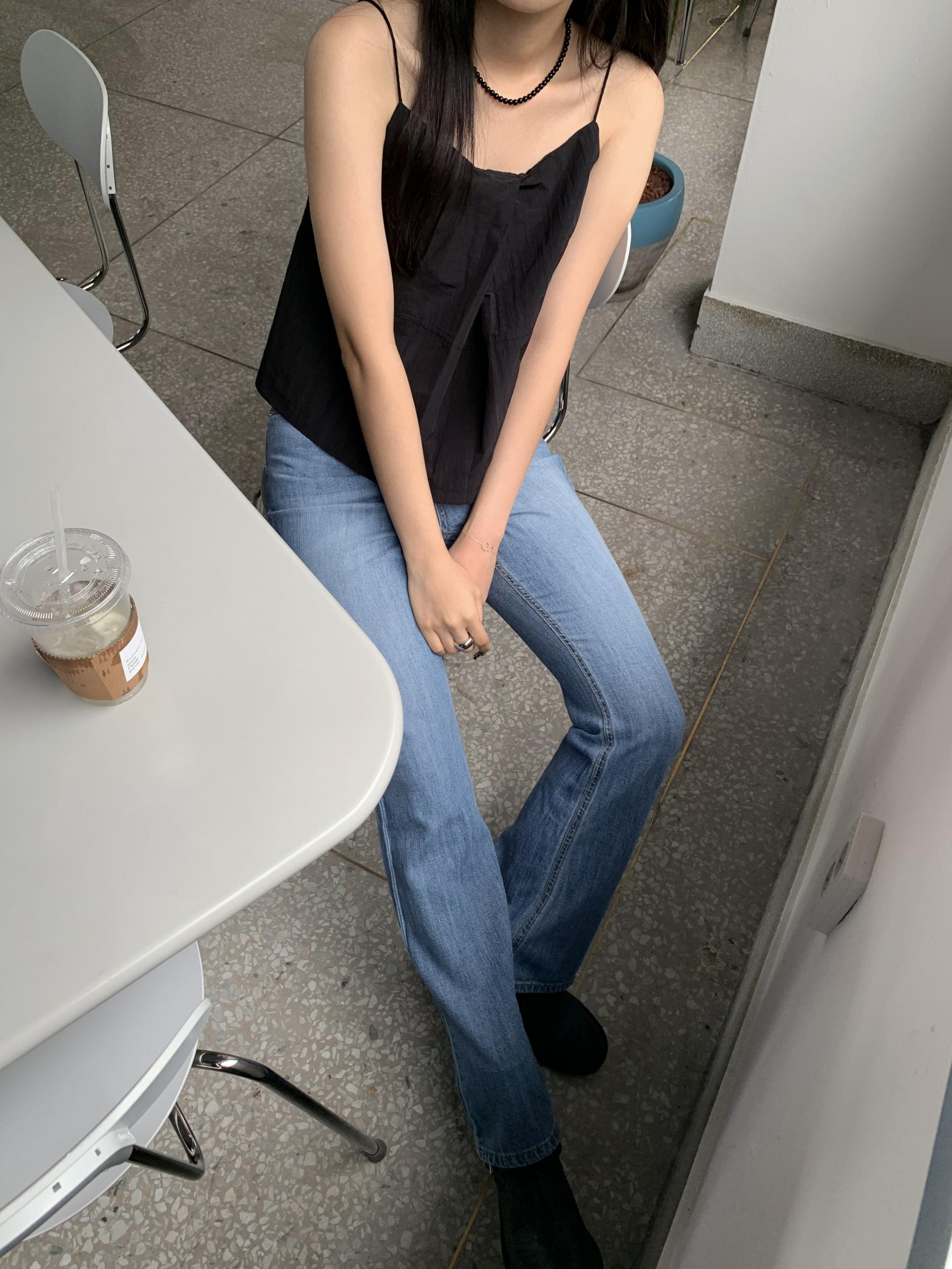 아래로 갈수록 와이드하게 떨어지는 부츠컷으로 다리가 정말 길어보인답니다👍