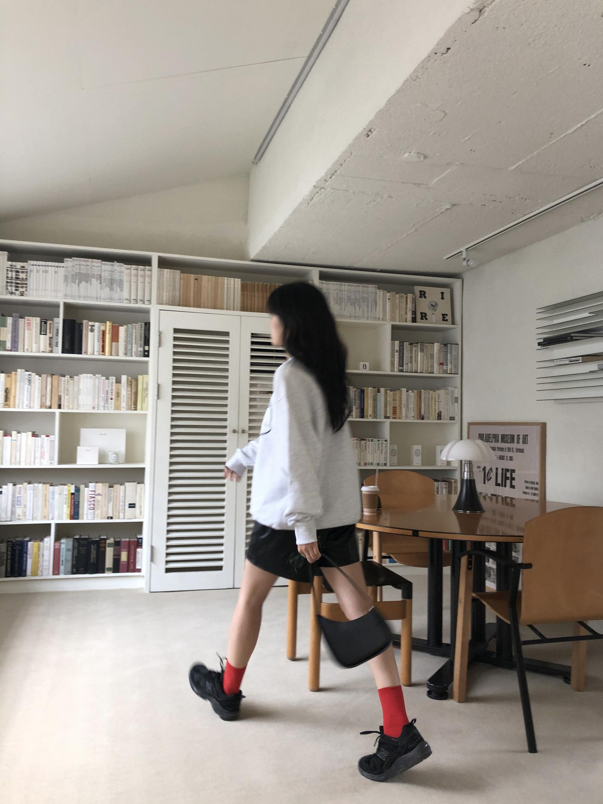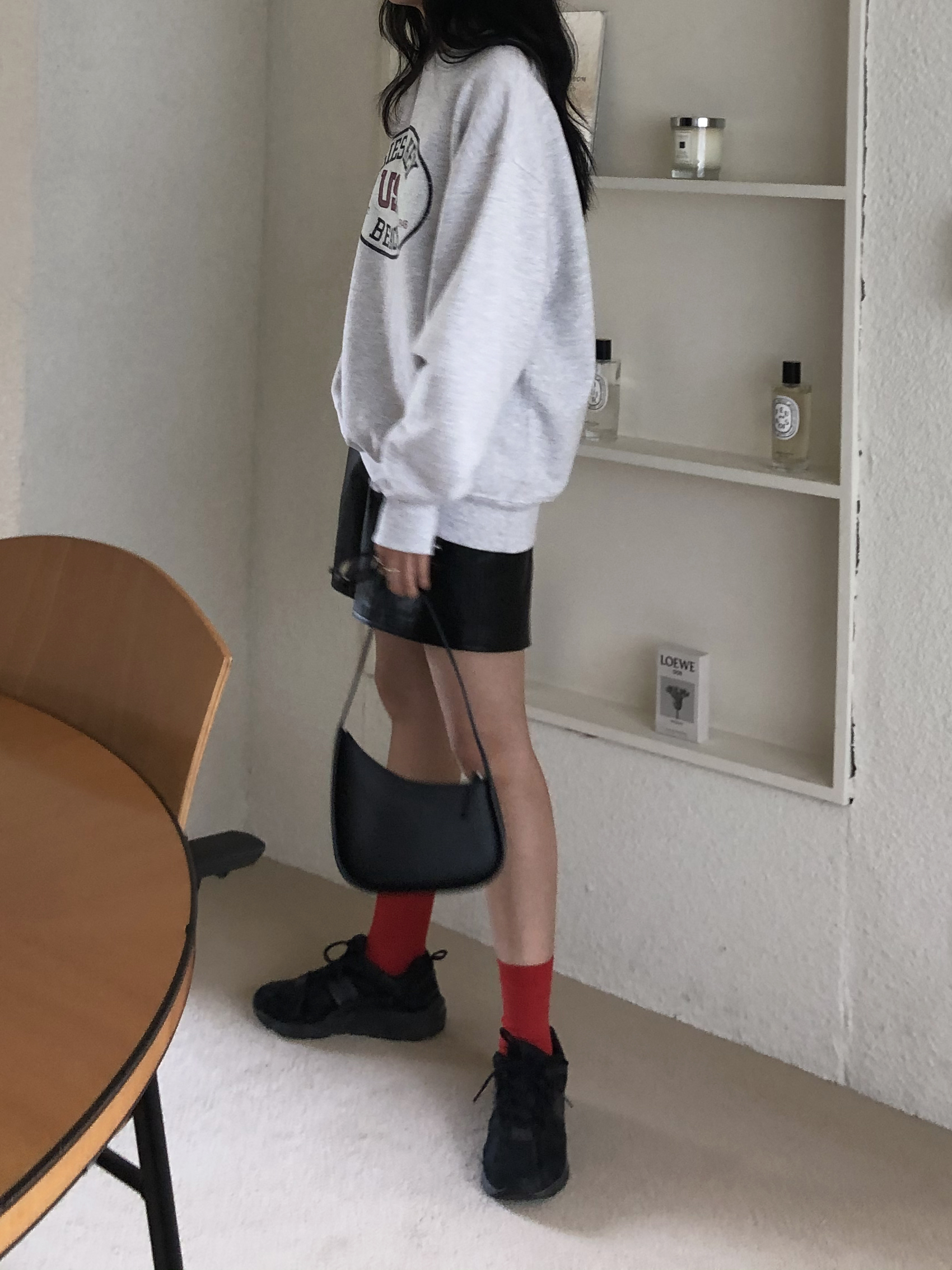특히나 오버핏의 아이템이기 때문에 짧은 숏츠나 스커트와의 밸런스가 좋아 가을에 특히 추천드려요 !