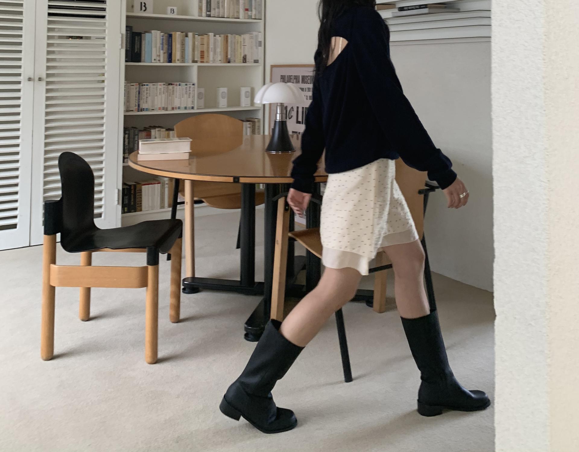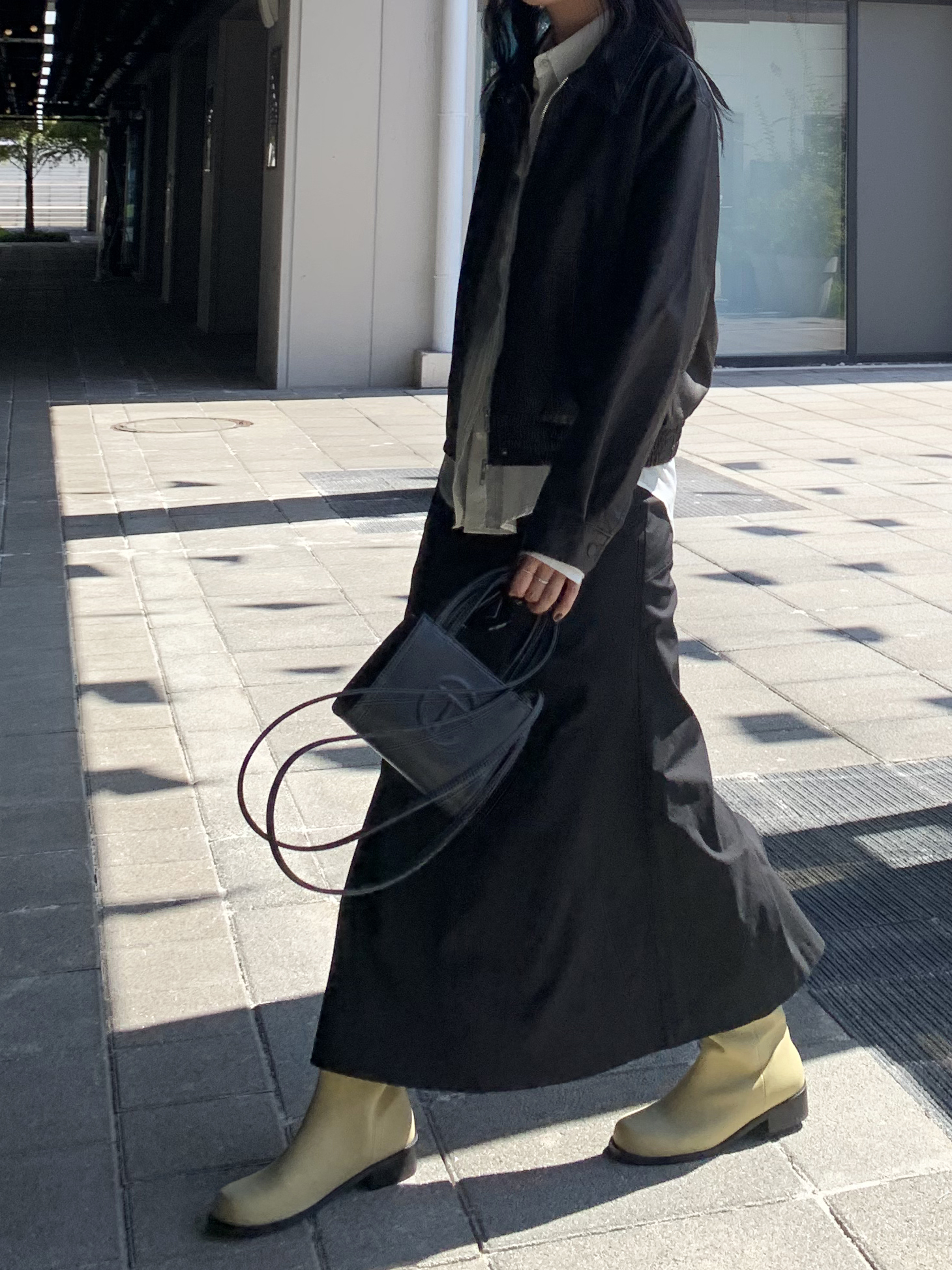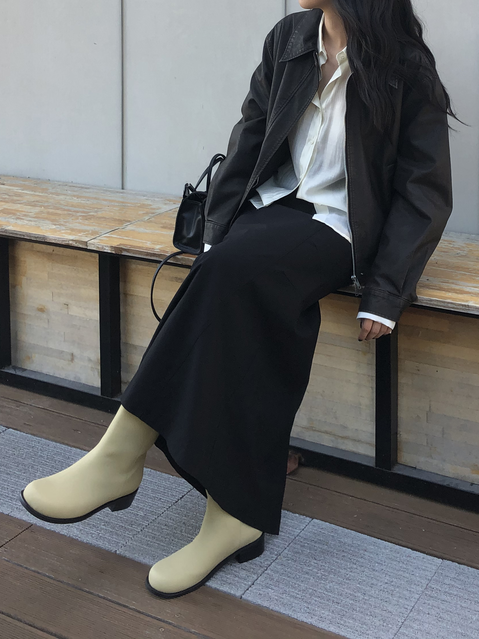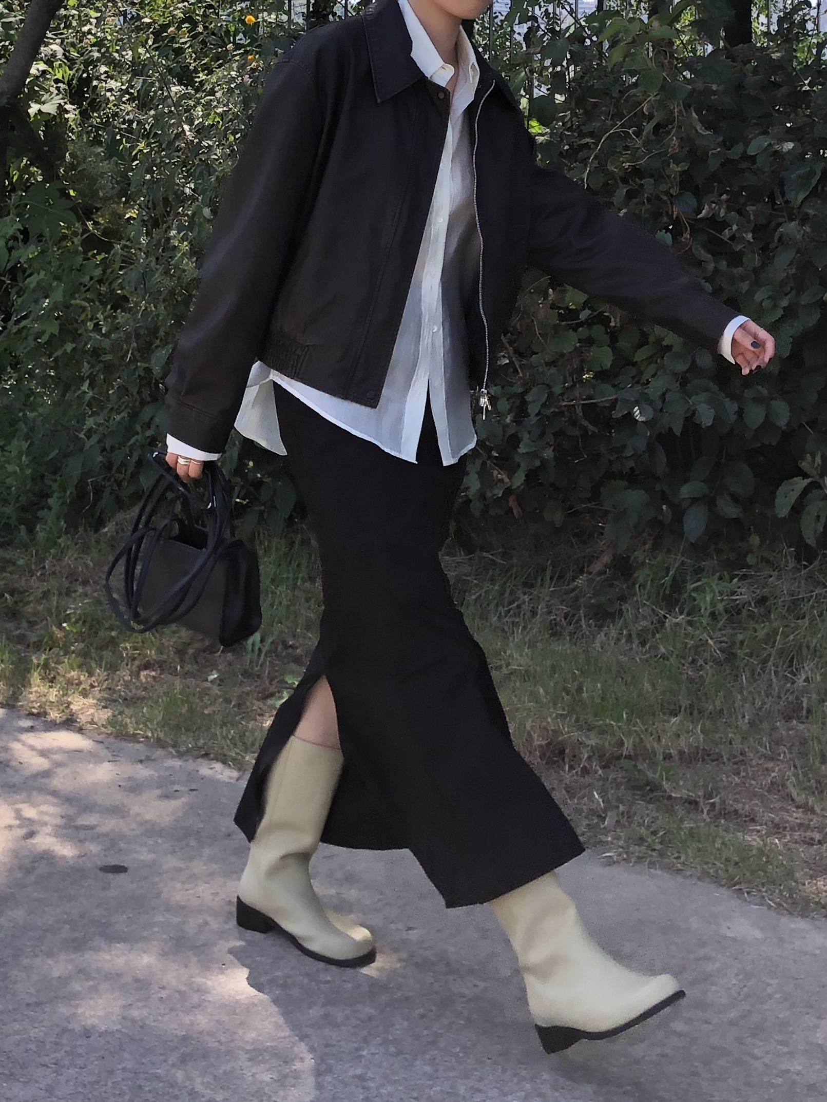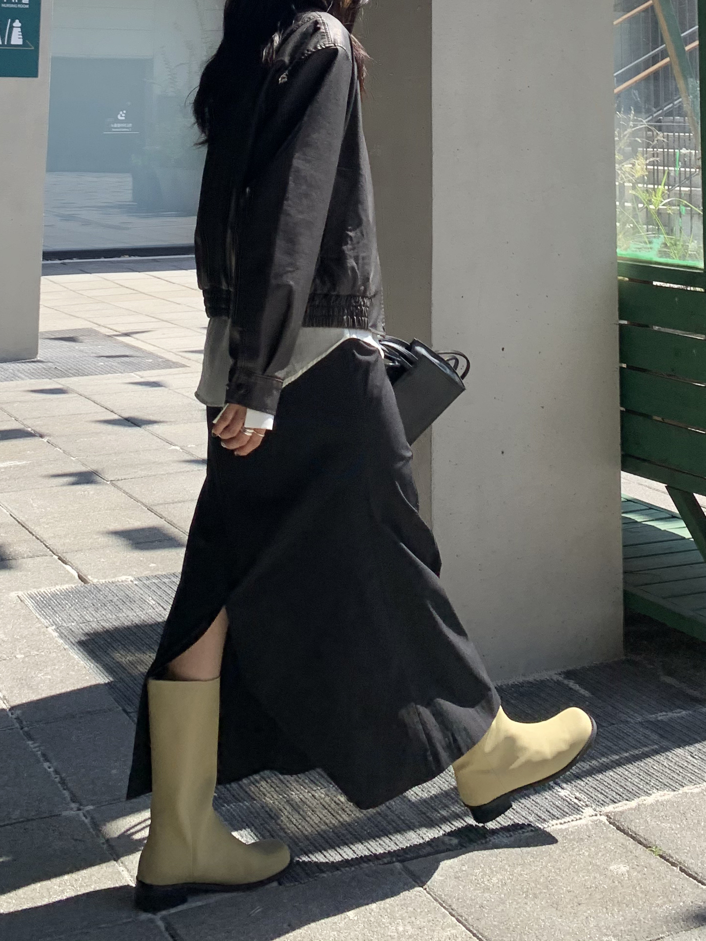 종아리 중간 정도의 적당한 기장으로 데님이나 스커트 모두 잘 어울리는 제품이에요.