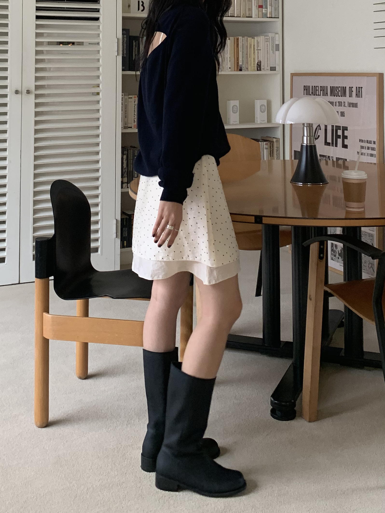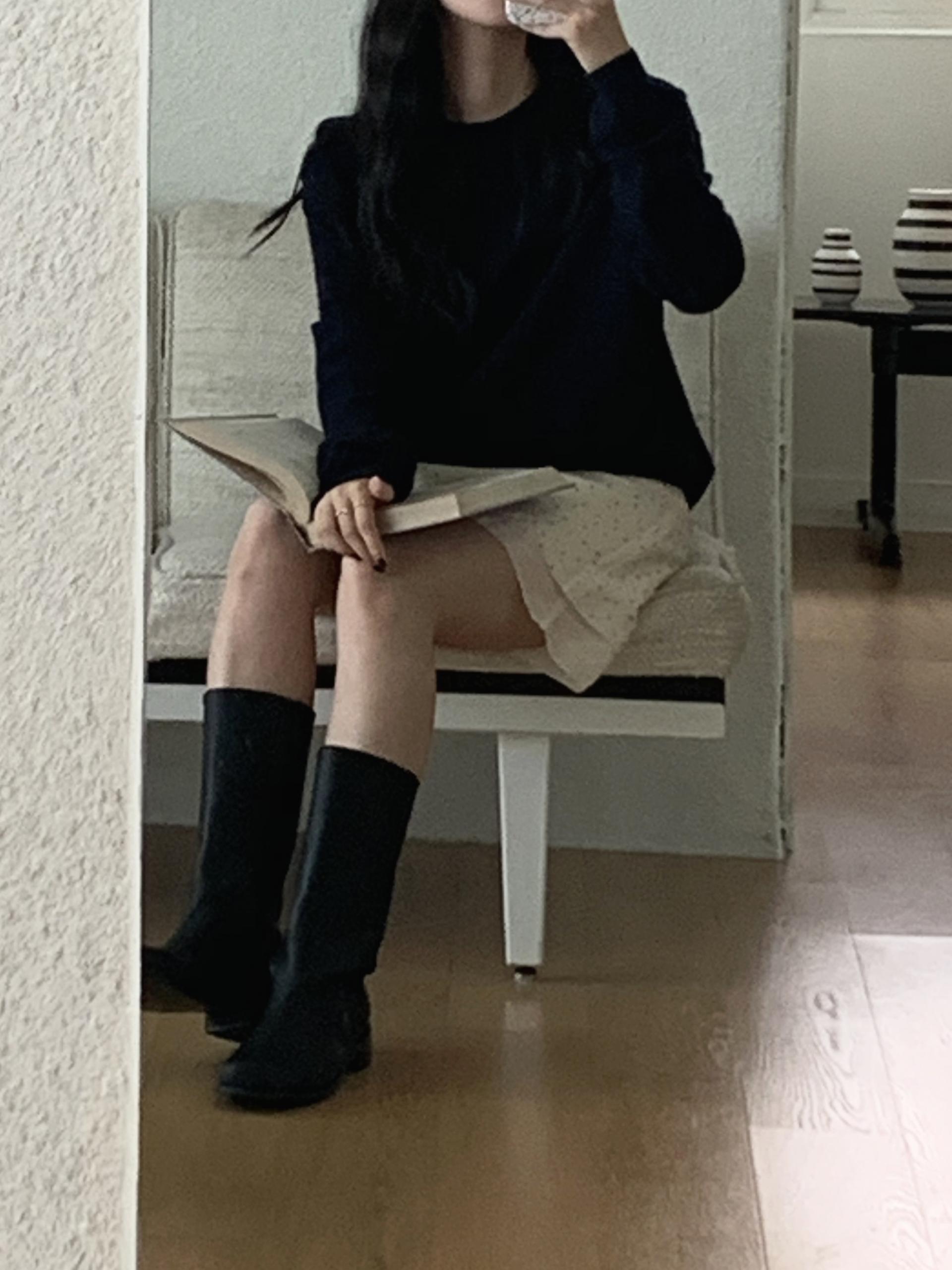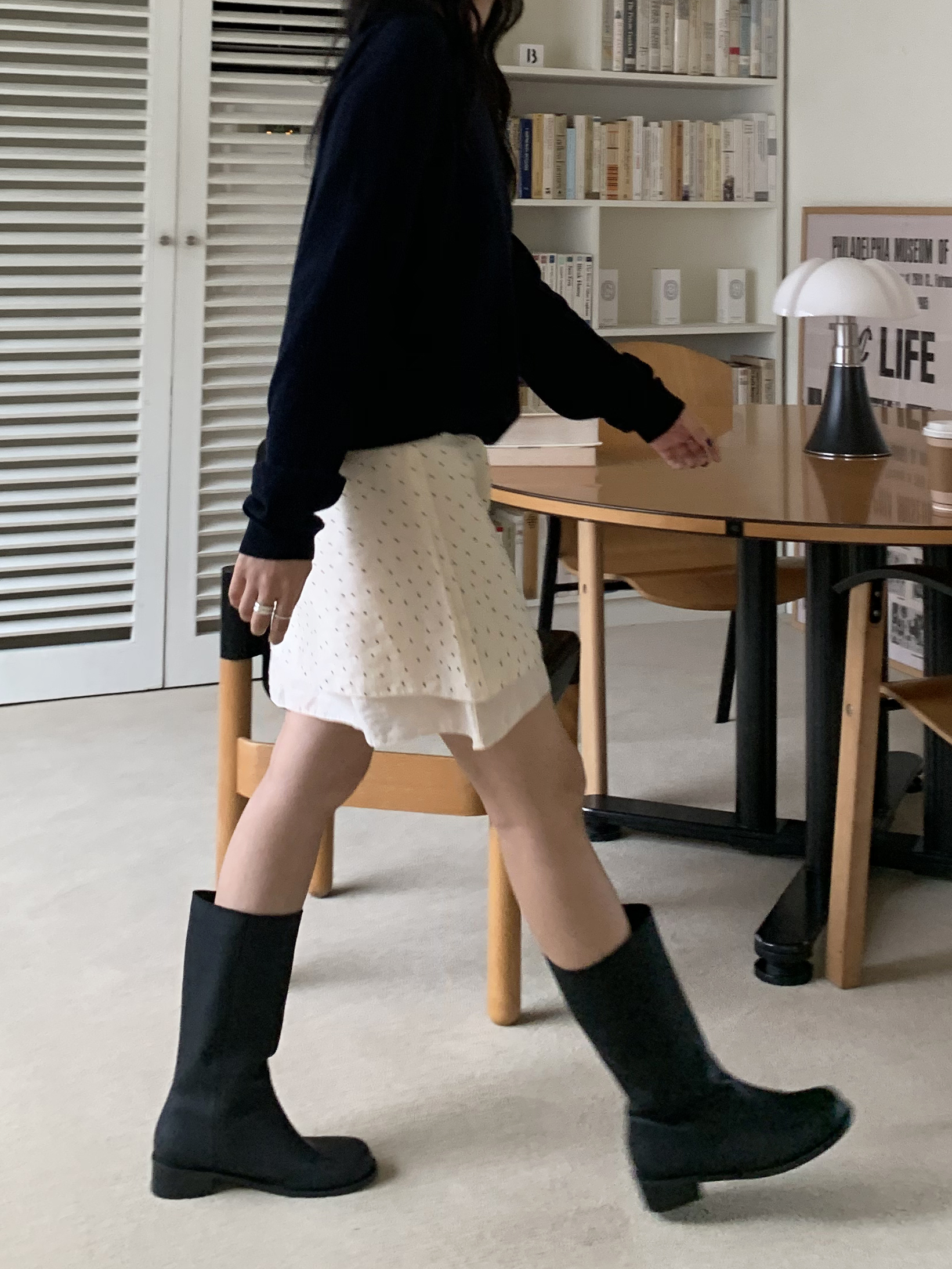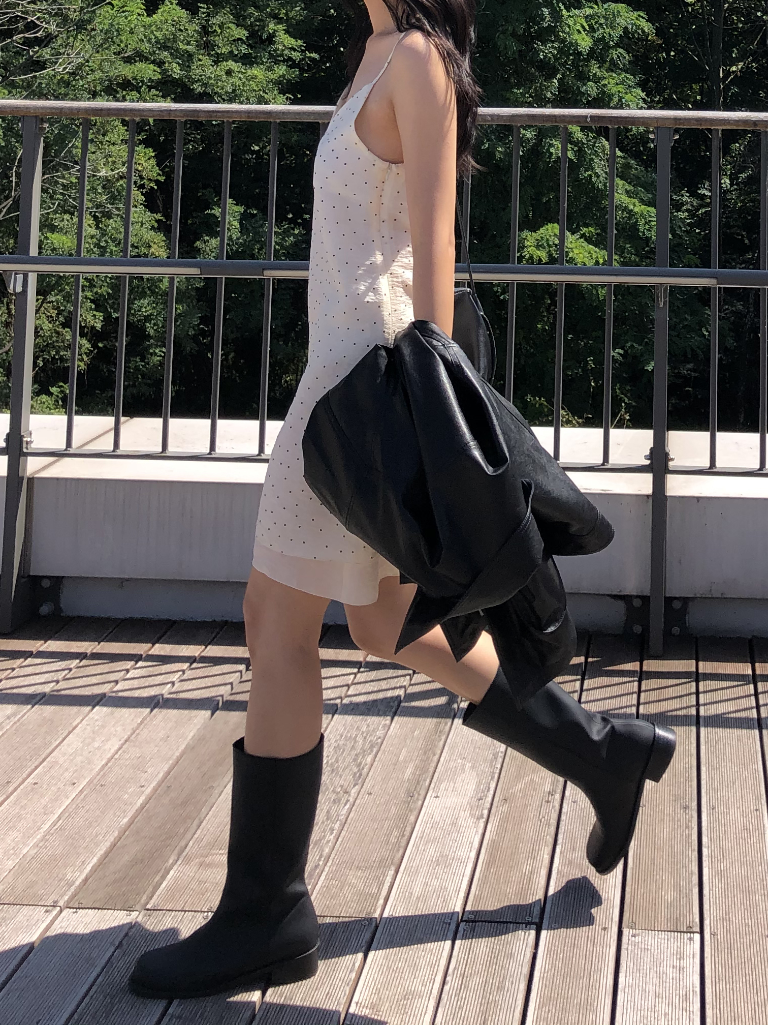 종아리 중간 정도의 적당한 기장으로 데님이나 스커트 모두 잘 어울리는 제품이에요.