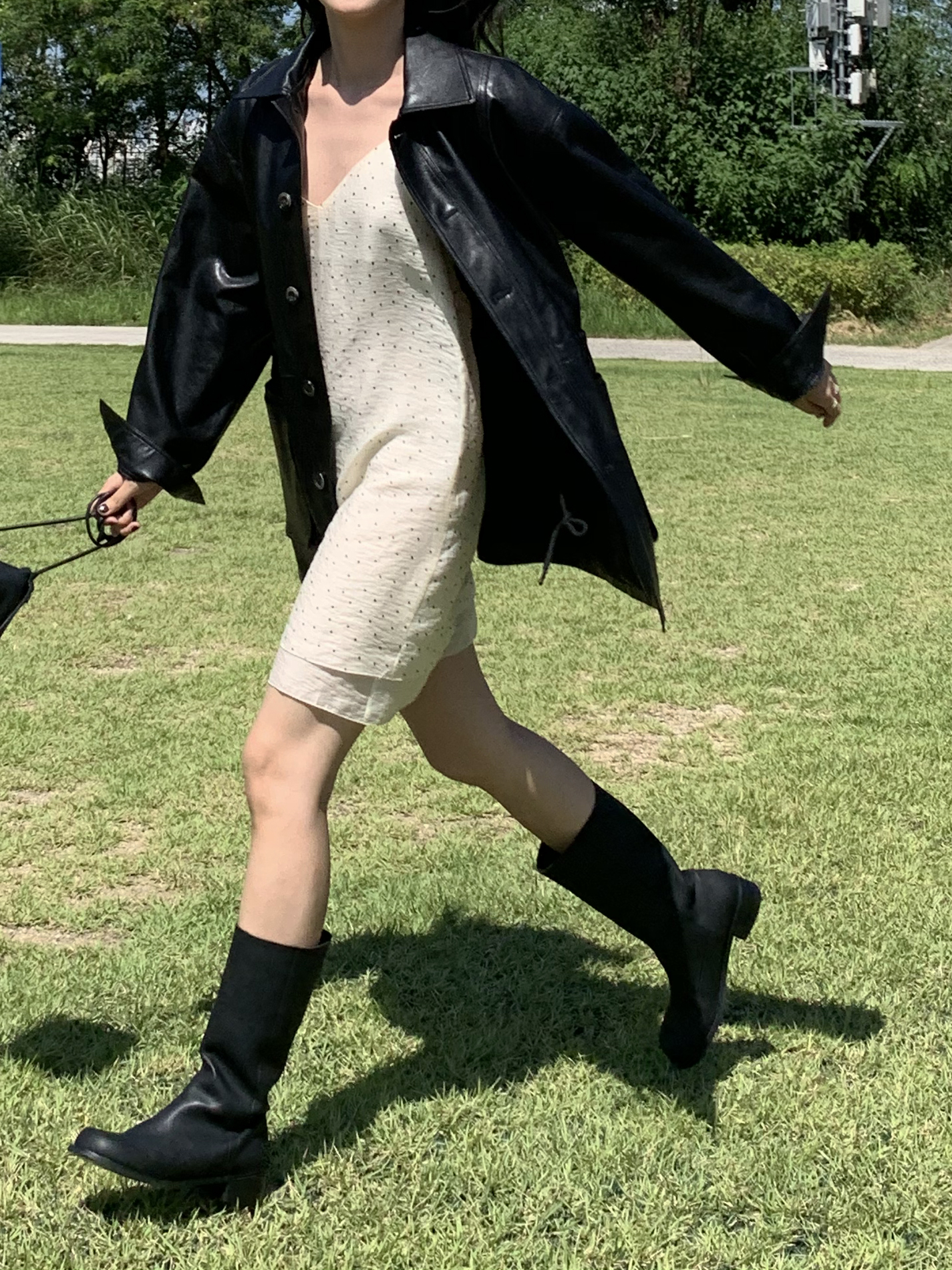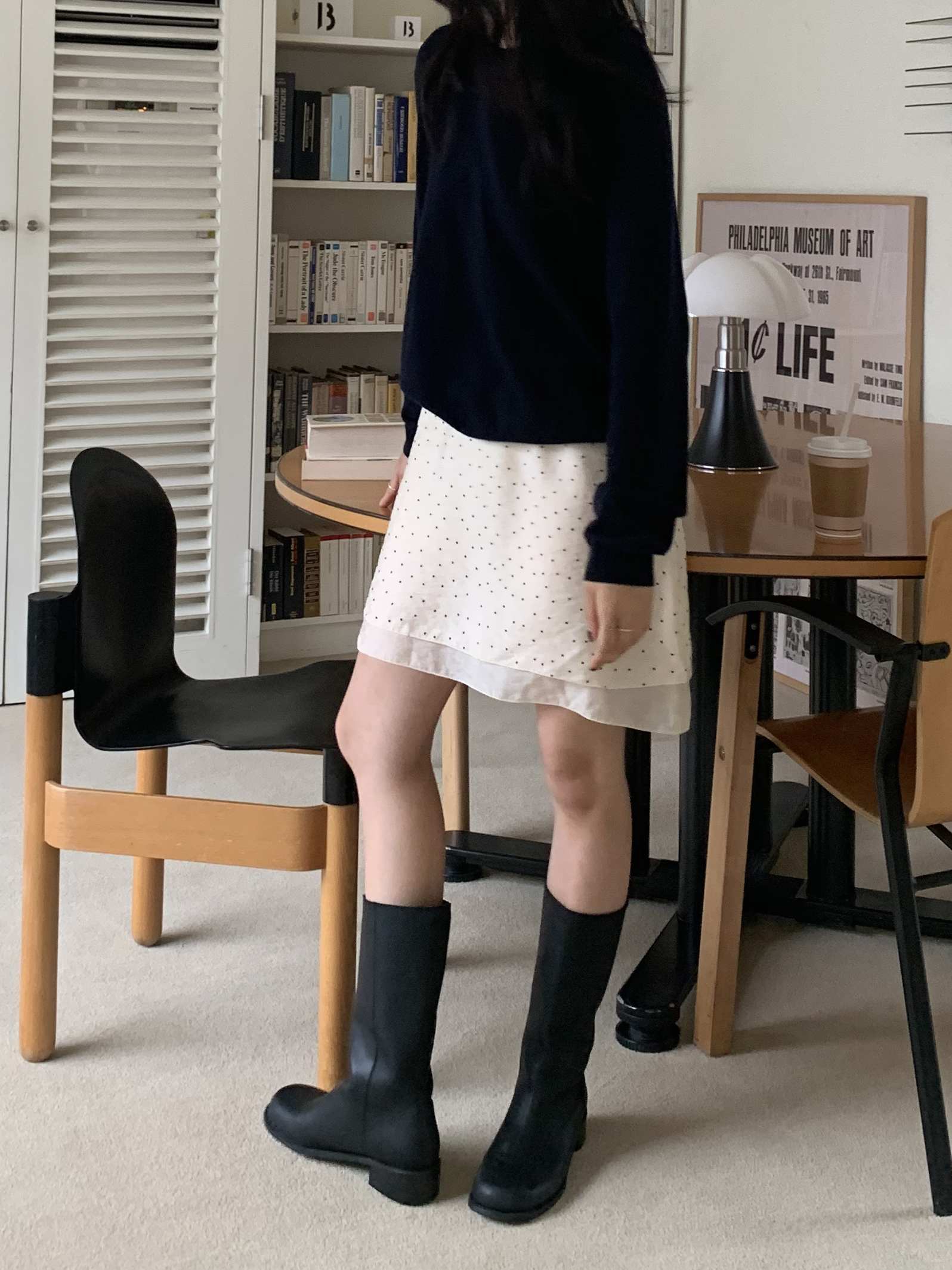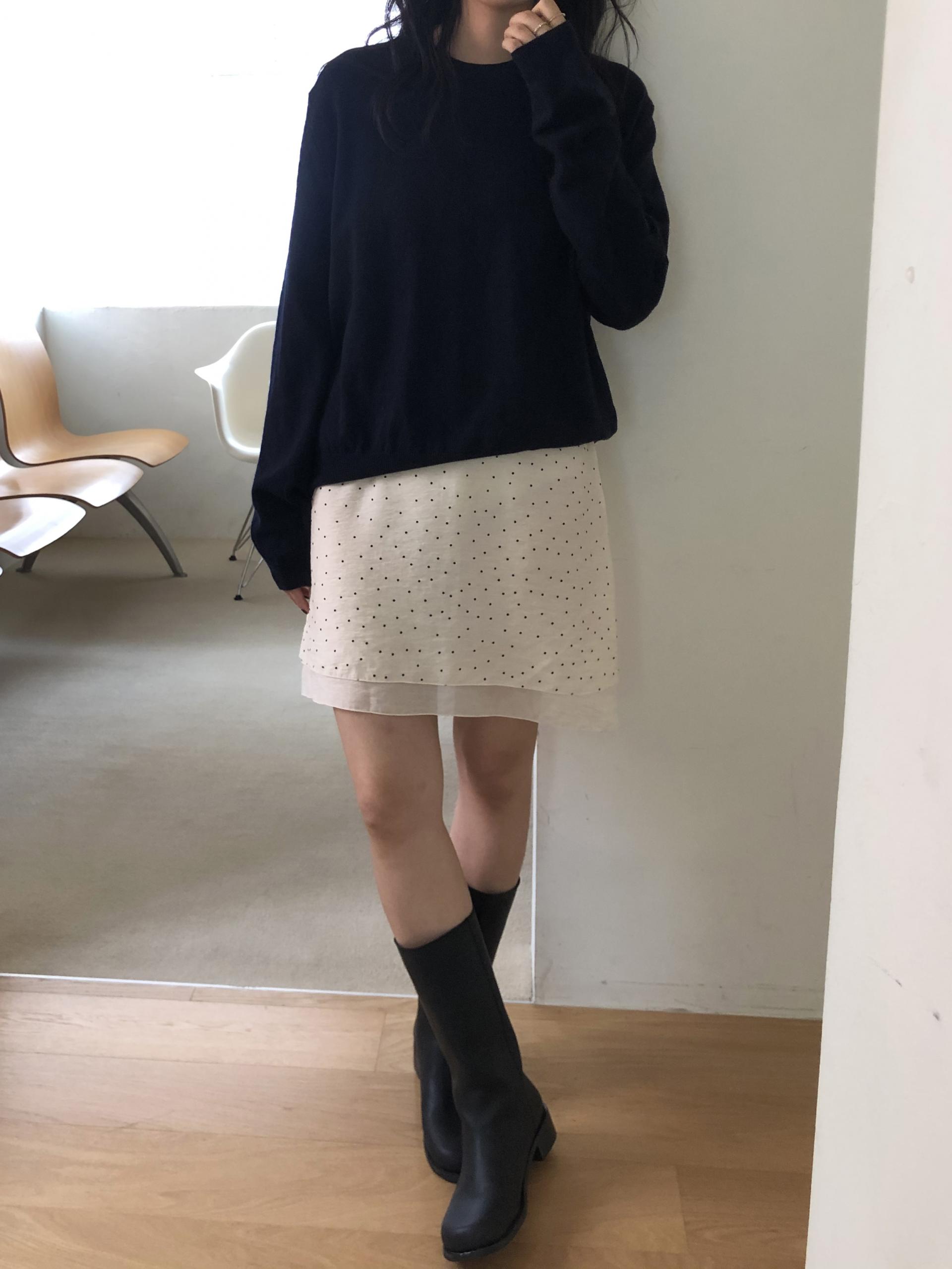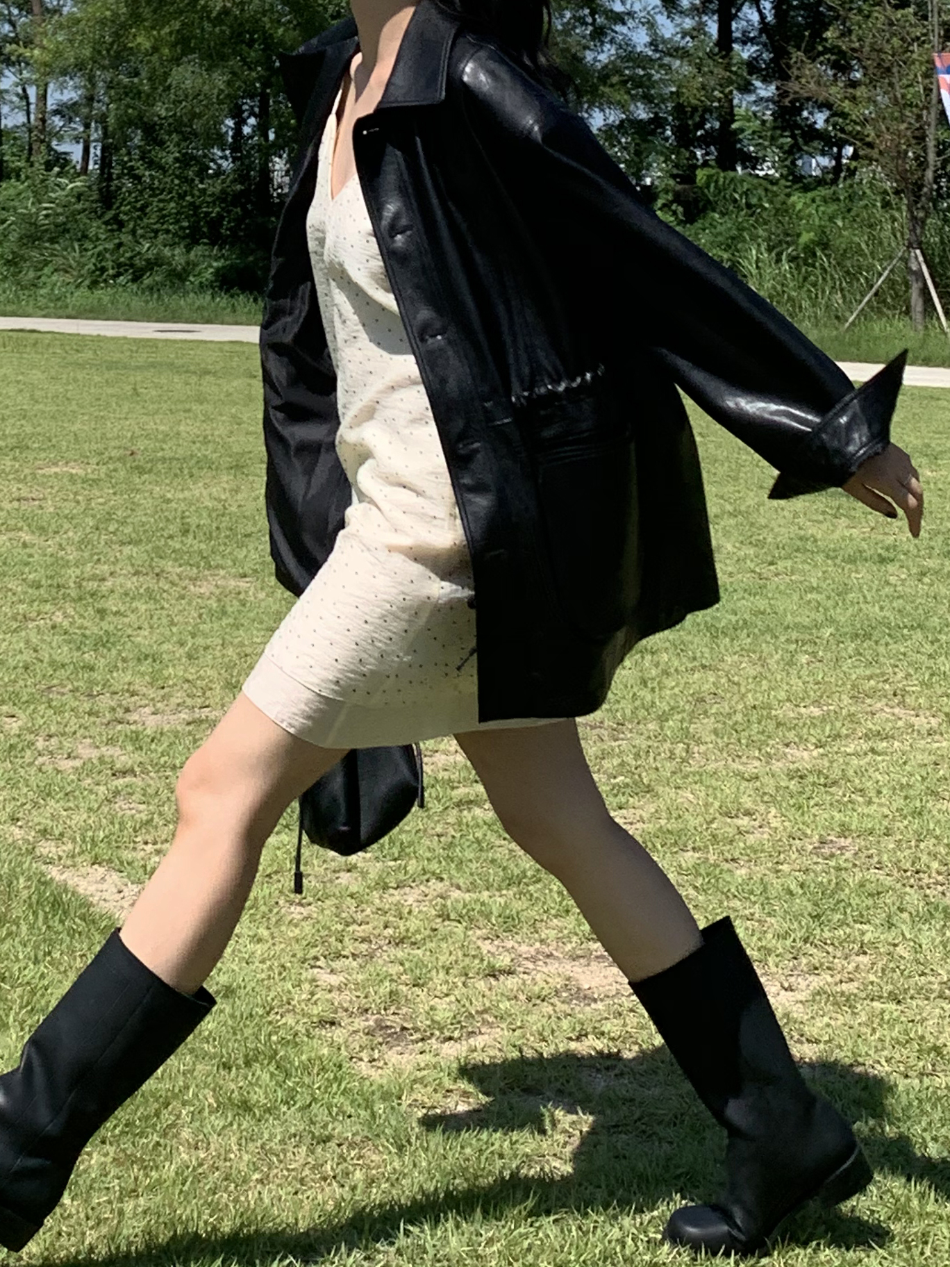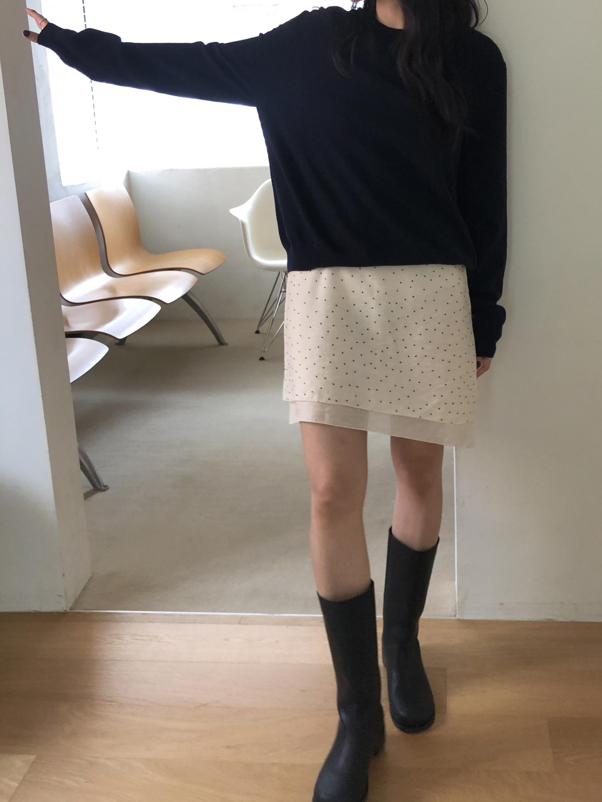 종아리 중간 정도의 적당한 기장으로 데님이나 스커트 모두 잘 어울리는 제품이에요.