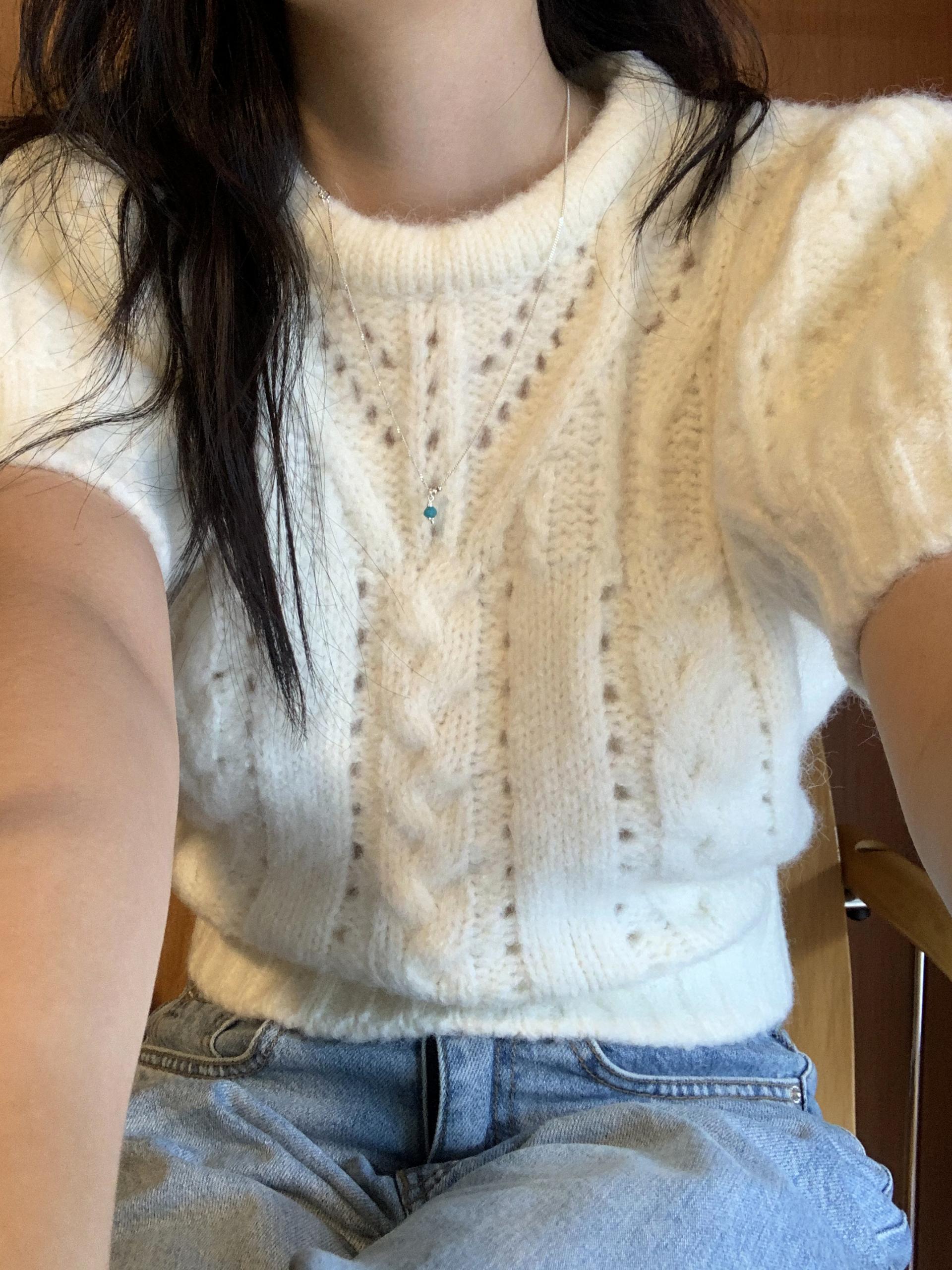 저희도 알파카 소재의 포슬포슬한 아이보리 니트에 매치했는데 은은하게 포인트 주기 좋더라구요. 네크리스 상세컷이 한장밖에 없었는데도 업데이트 문의가 정말 많이 와서, 추가로 보여드리게 되었습니다!
