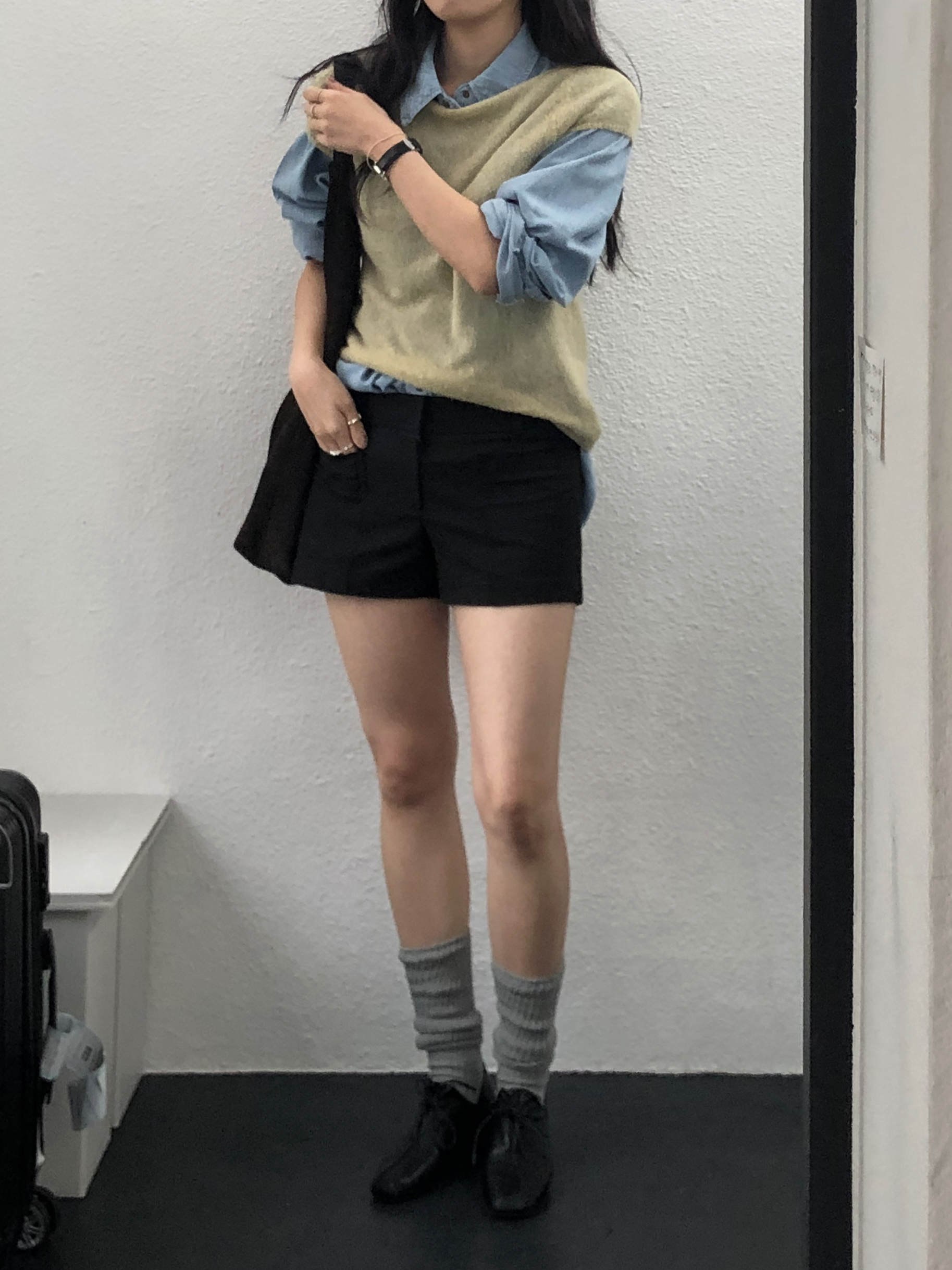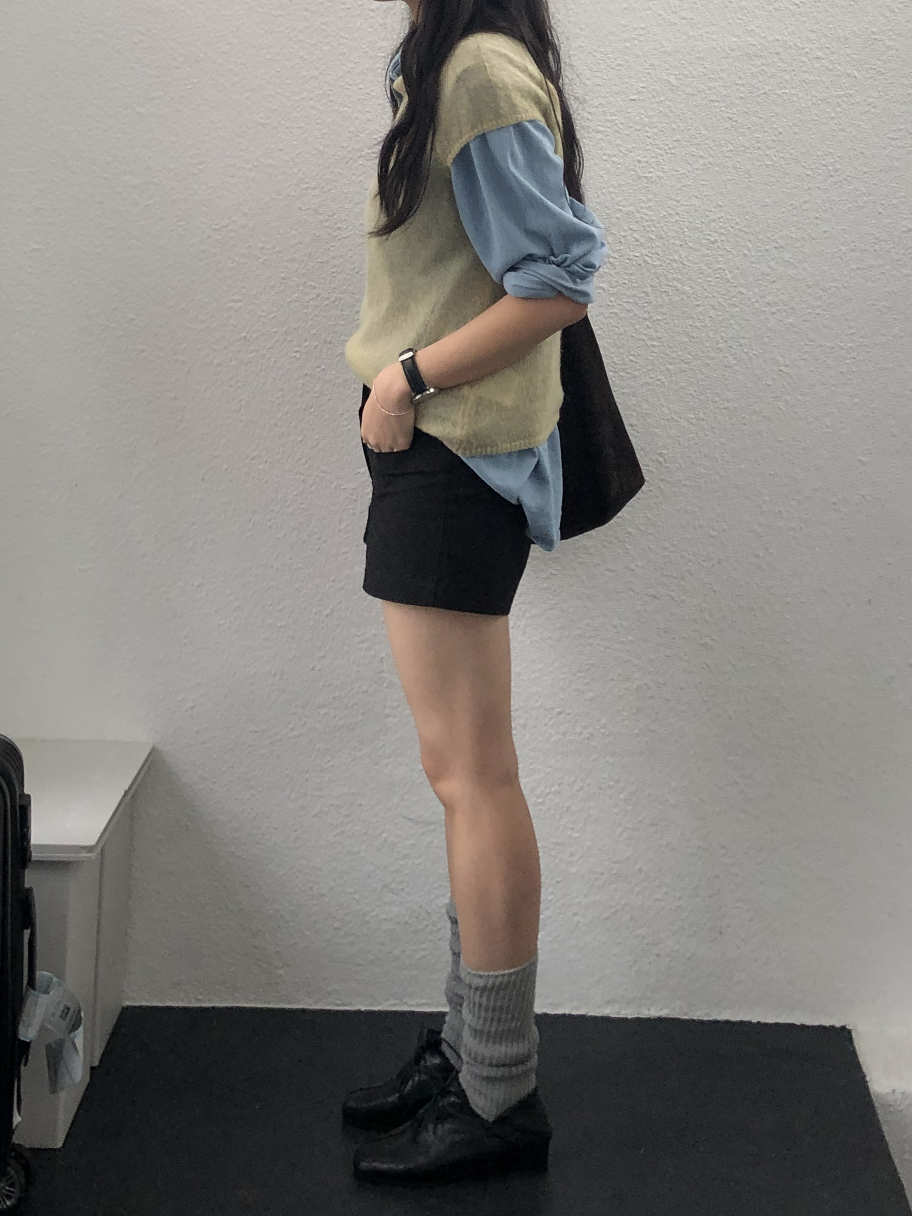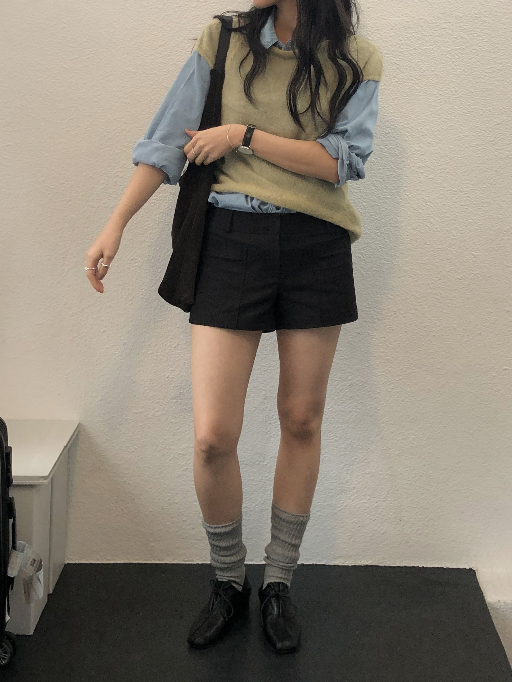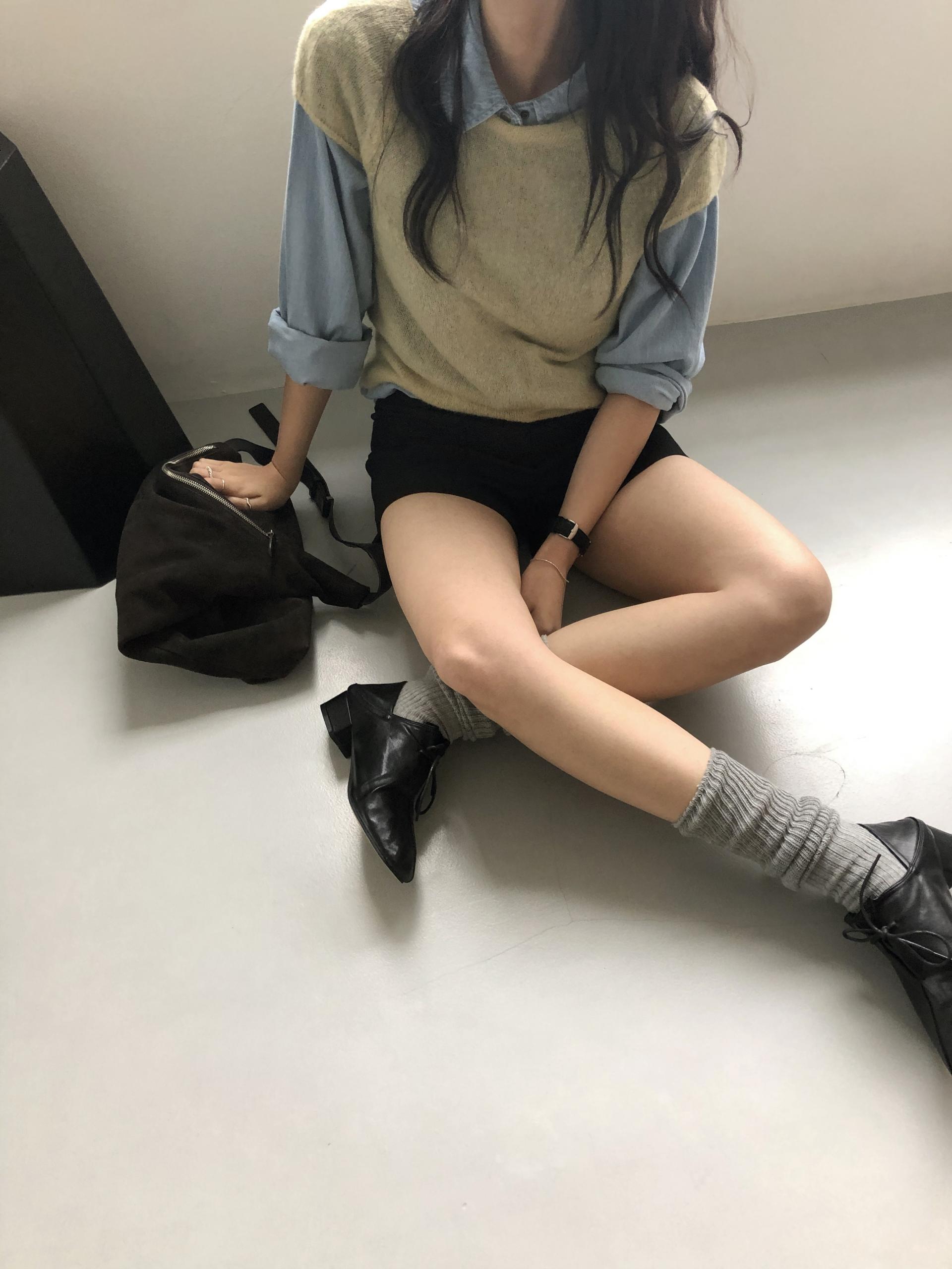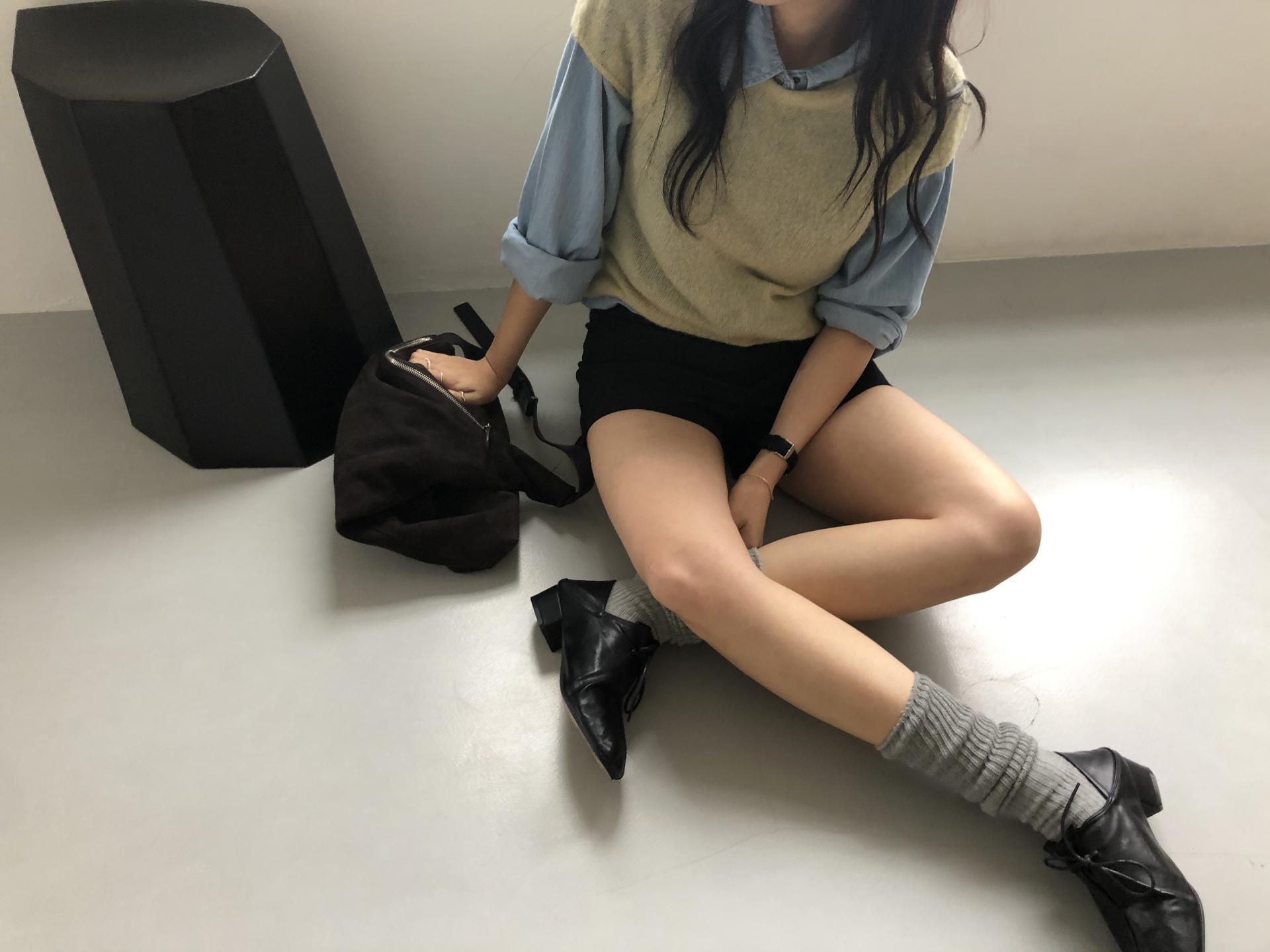 루즈한 무드를 더해줄 수 있는 아이템으로 다양한 룩에 매치하기 좋았던 삭스예요.