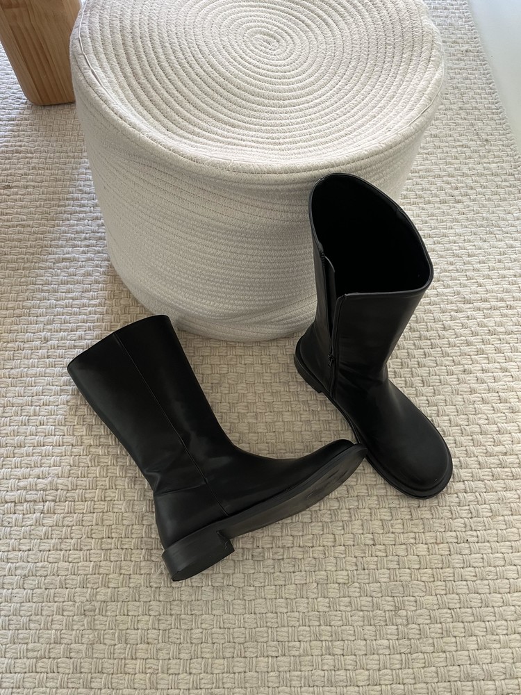 군더더기 없이 깔끔한 디자인의 미들부츠입니다. 웨스턴 스타일의 부츠가 아닌 아무런 디테일 없는 베이직한 미들 부츠를 보여드리고 싶었는데 소재, 핏, 가격, 모든 부분이 만족스러웠던 제품을 찾아 기분좋게 소개해드려요.
