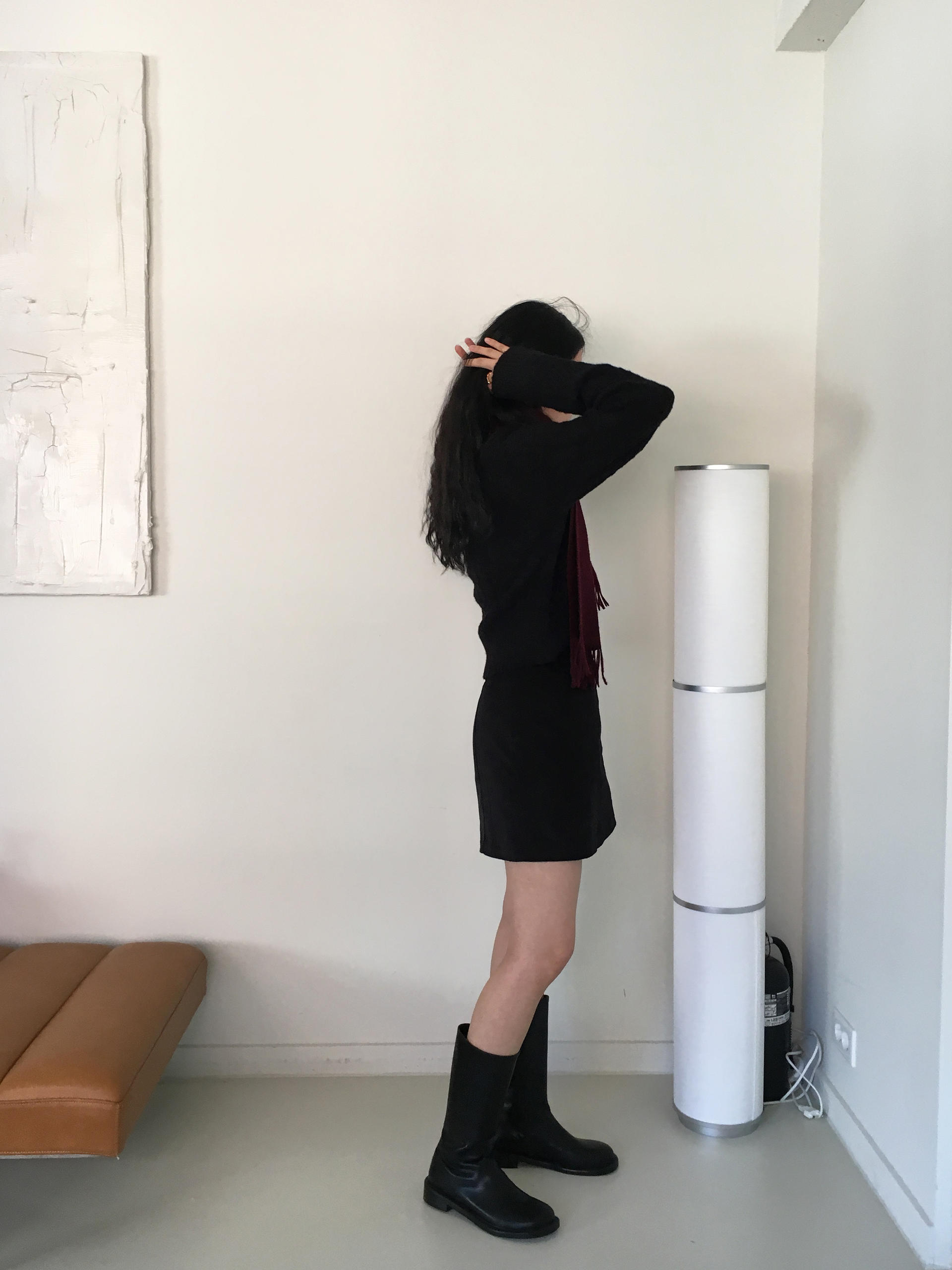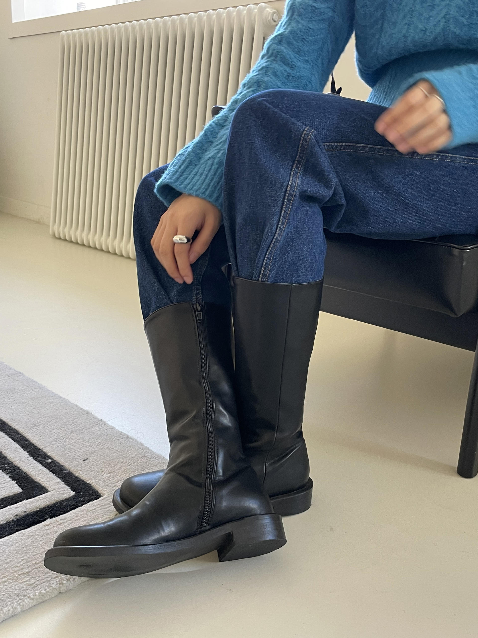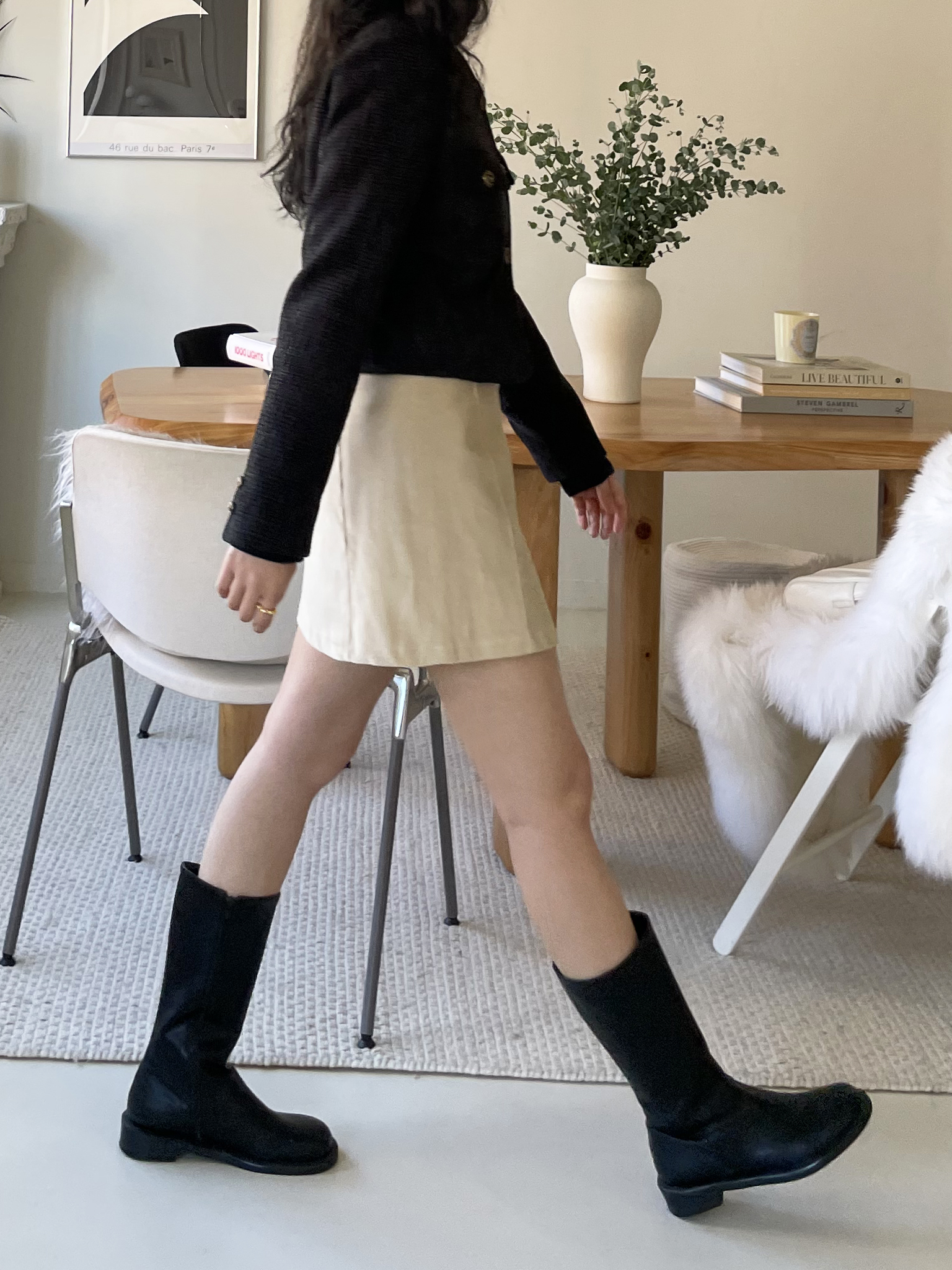 그리고 앞코가 적당히 날렵한 라운드 쉐입이라 투박해보이지 않아 마음에 들었어요. 롱부츠가 부담스러우셨던 분들께 적극 추천드리고 싶어요. 저도 롱부츠만 신다가 미들 부츠에 발을 들이게 됐는데 한동안 이것만 신을 것 같습니다.. 스커트,팬츠 다 잘 어울려요 :)