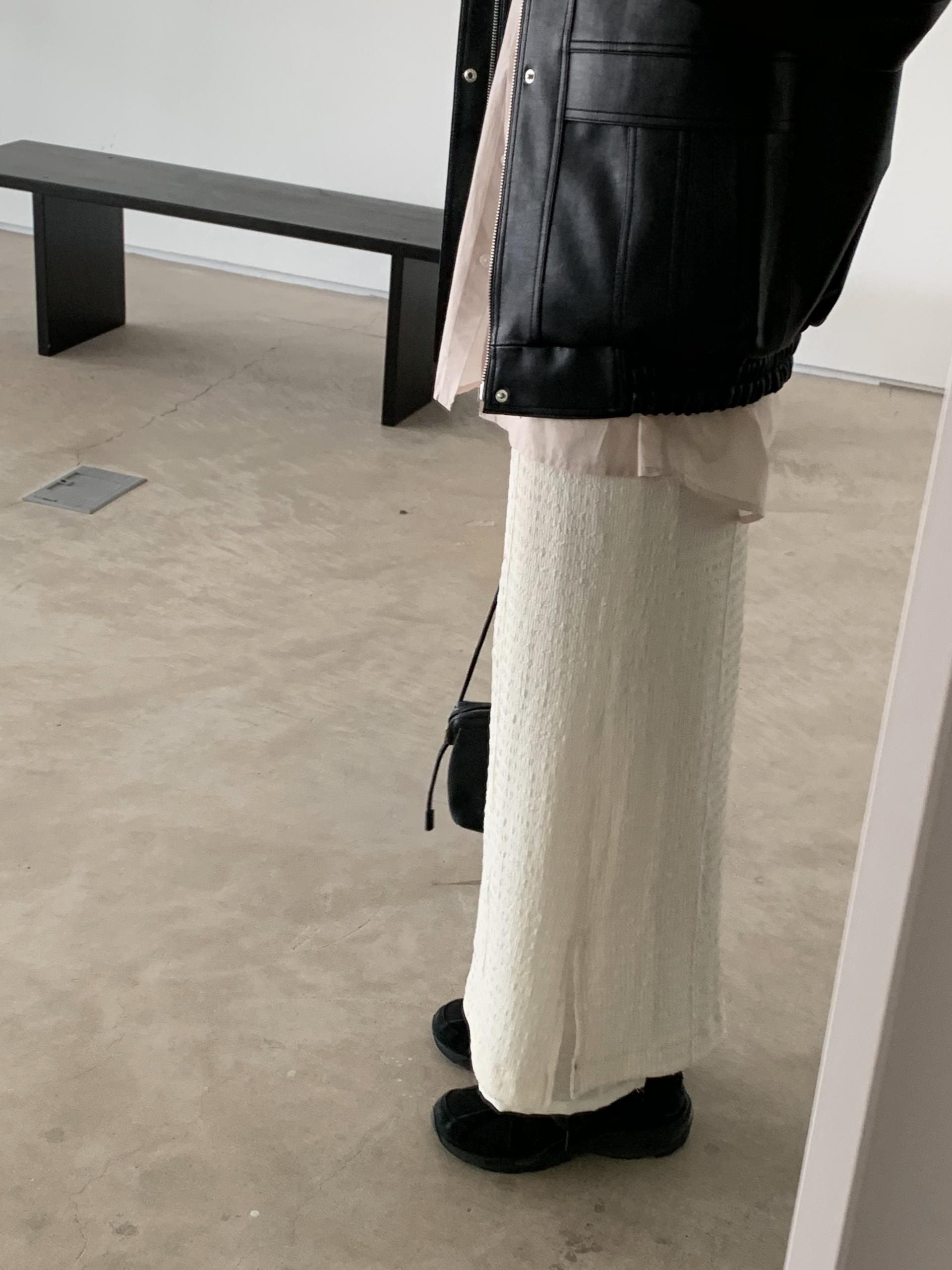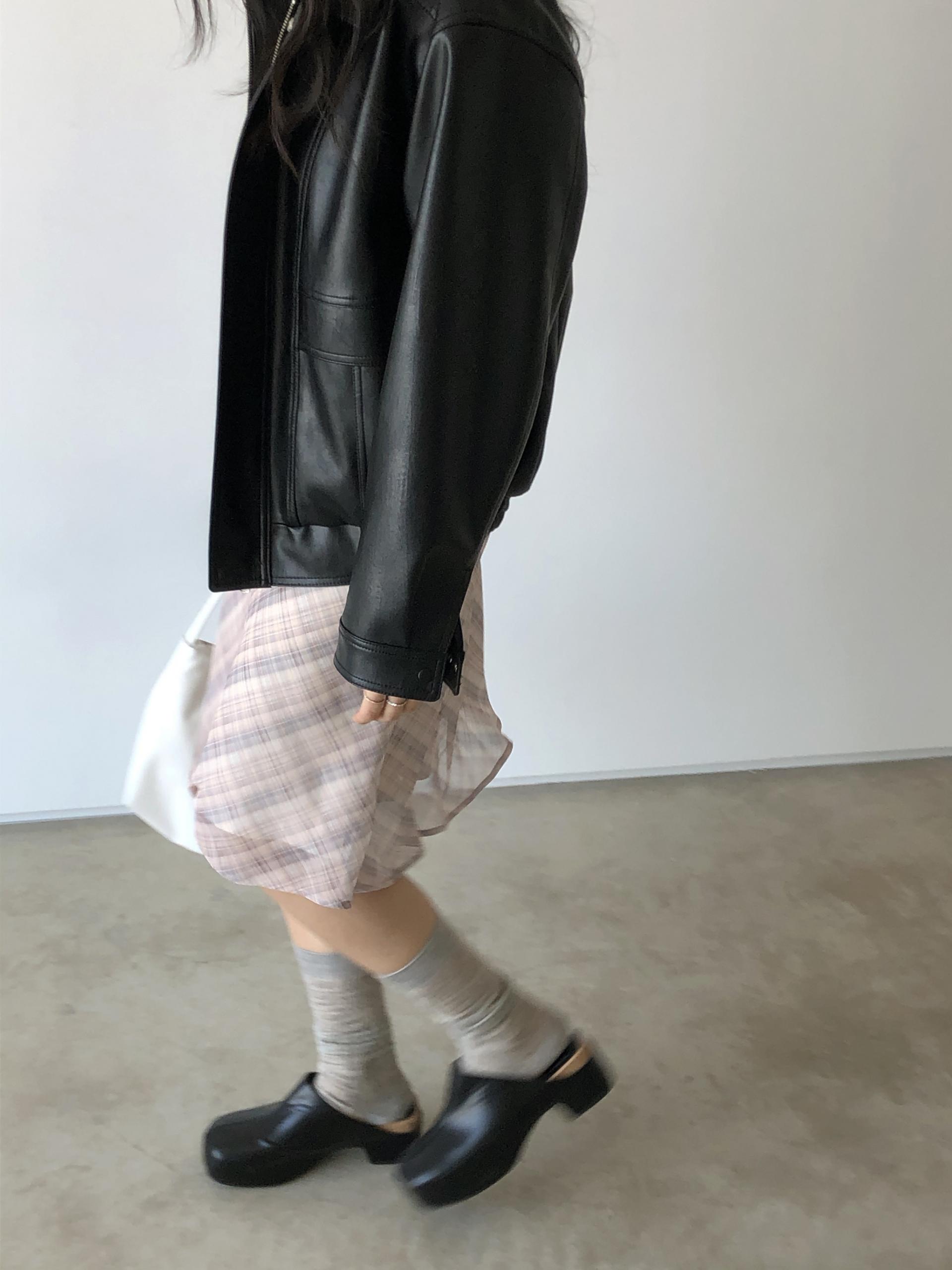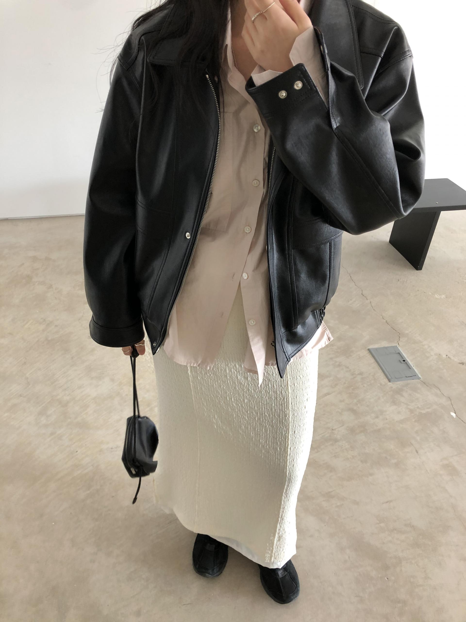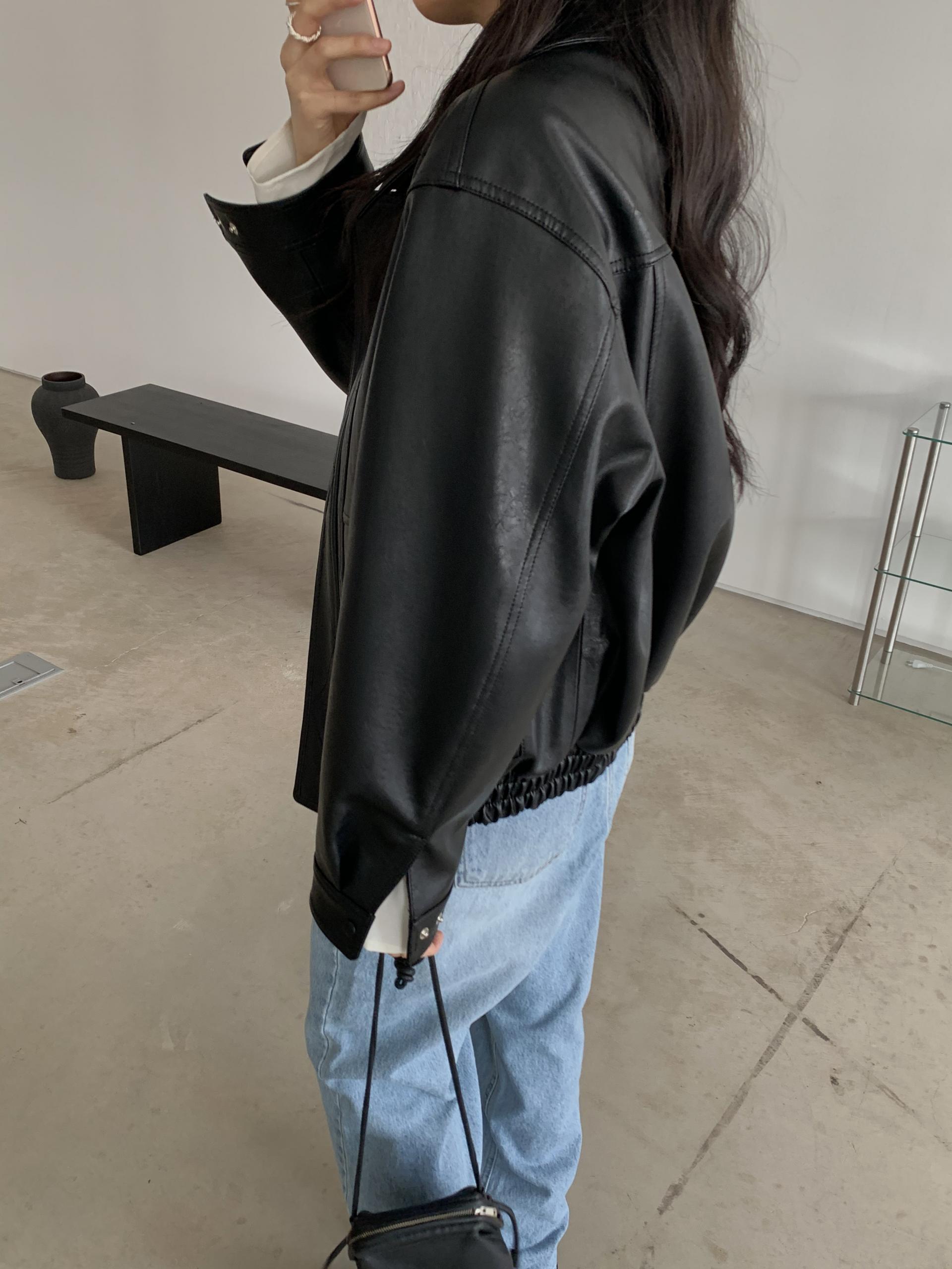 시크한 매력의 블랙 ! 레더 아이템이 가장 빛나는 컬러라 역시나 예뻐요. 포켓에 작게 위치한 실버 미니참이 언뜻언뜻 보이는게 참 예쁘답니다.