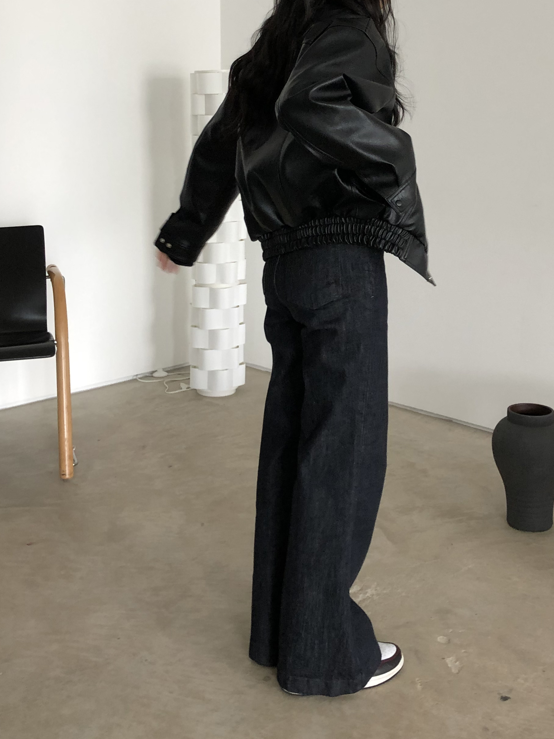 전체적으로는 세미오버핏 정도의 실루엣으로 연출되어요. 정핏보다는 멋스럽게, 오버핏보다는 좀 더 웨어러블하게 입기 좋은 딱 그 정도의 핏 !!