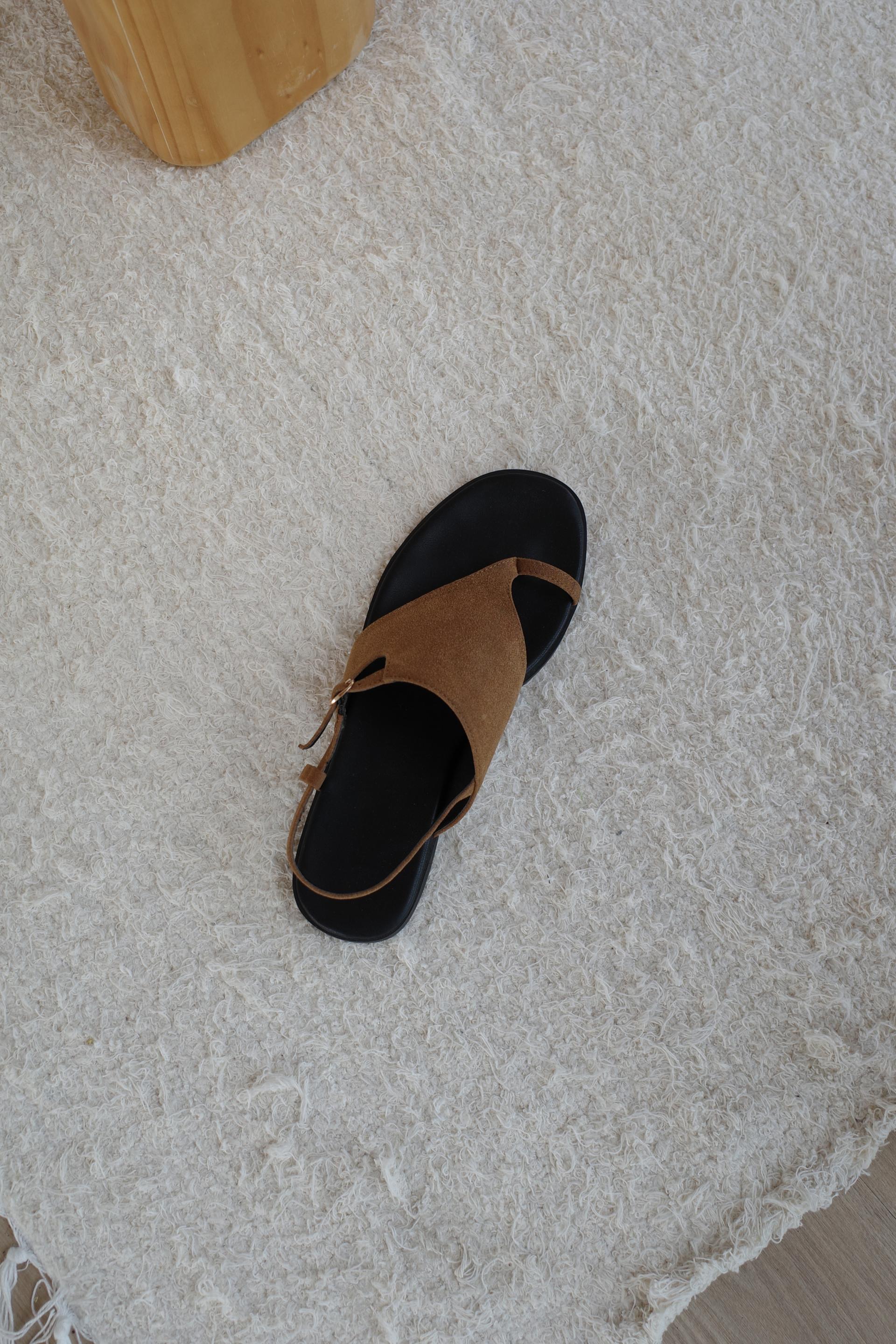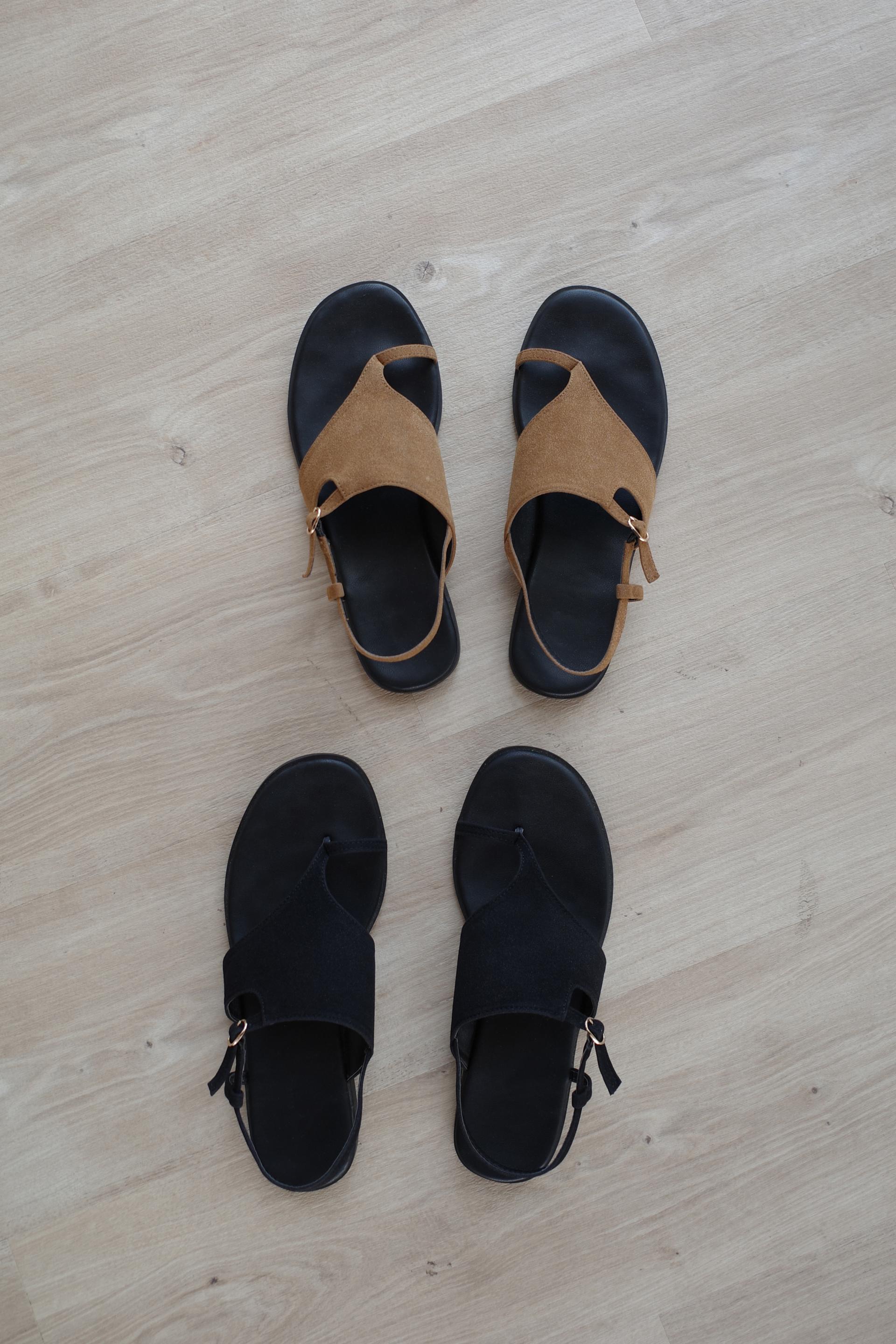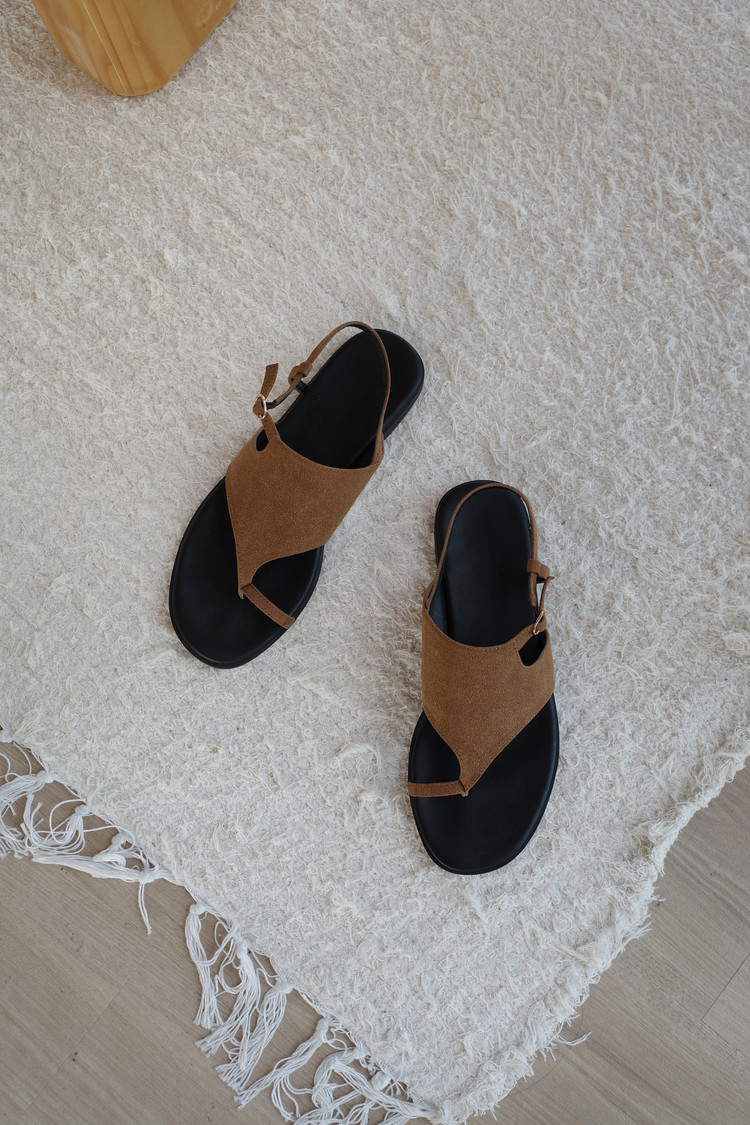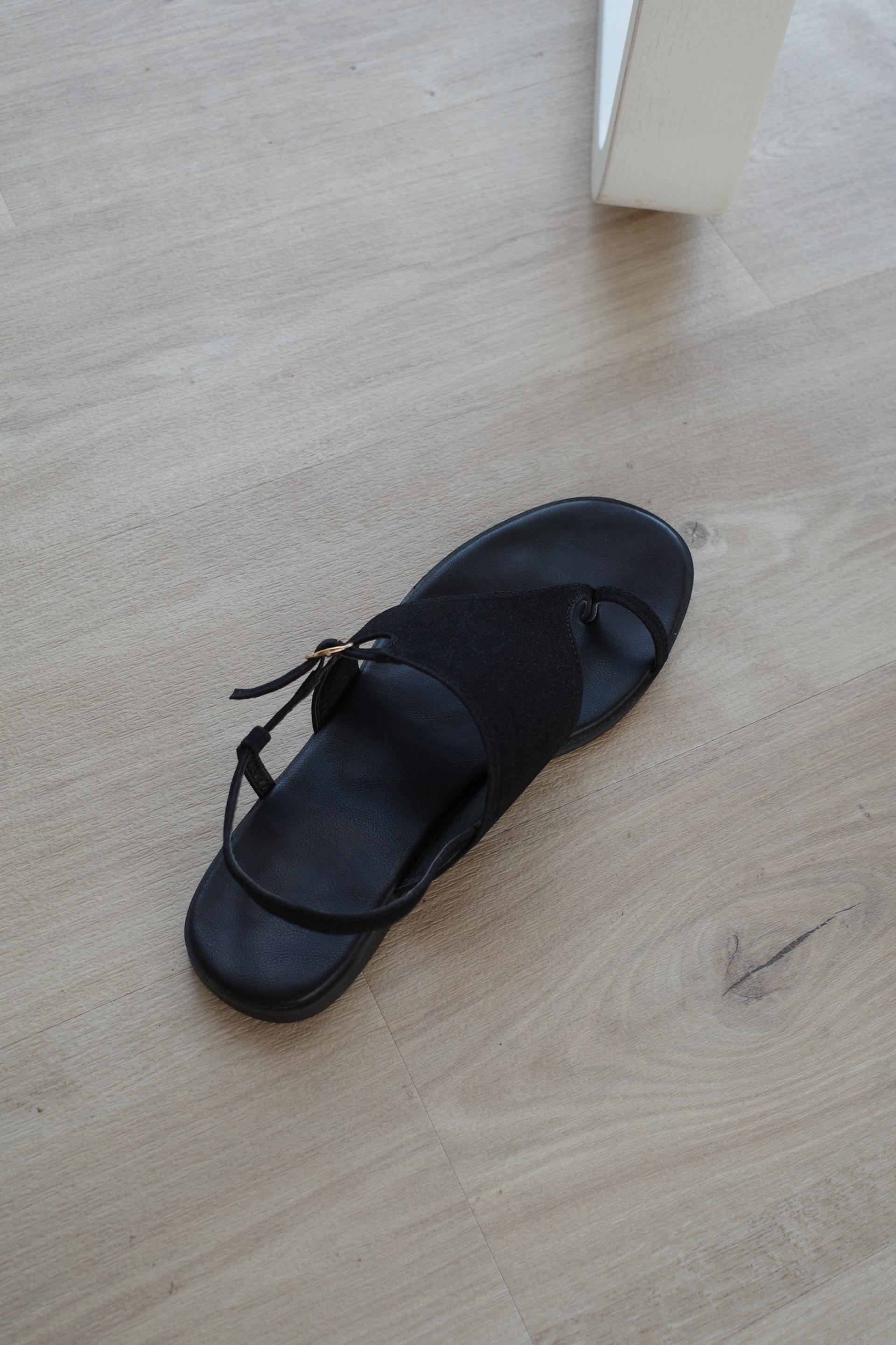 빈티지하면서 멋스러운 느낌을 내는 스웨이드를 사용해 소재만으로도 포인트가 되는 샌들이에요.