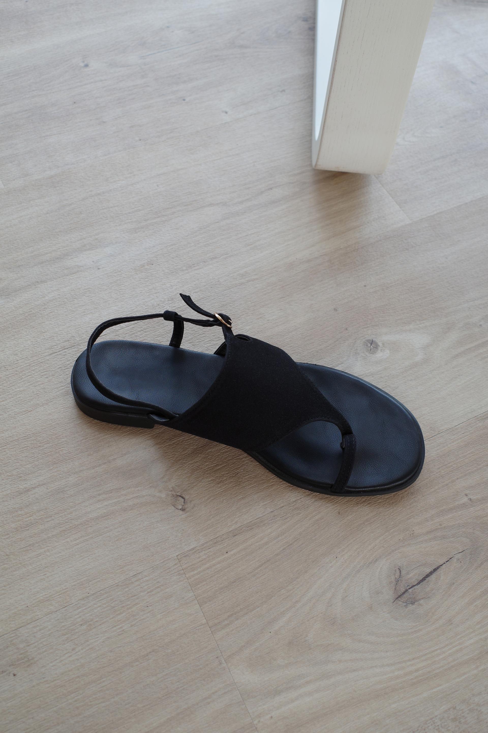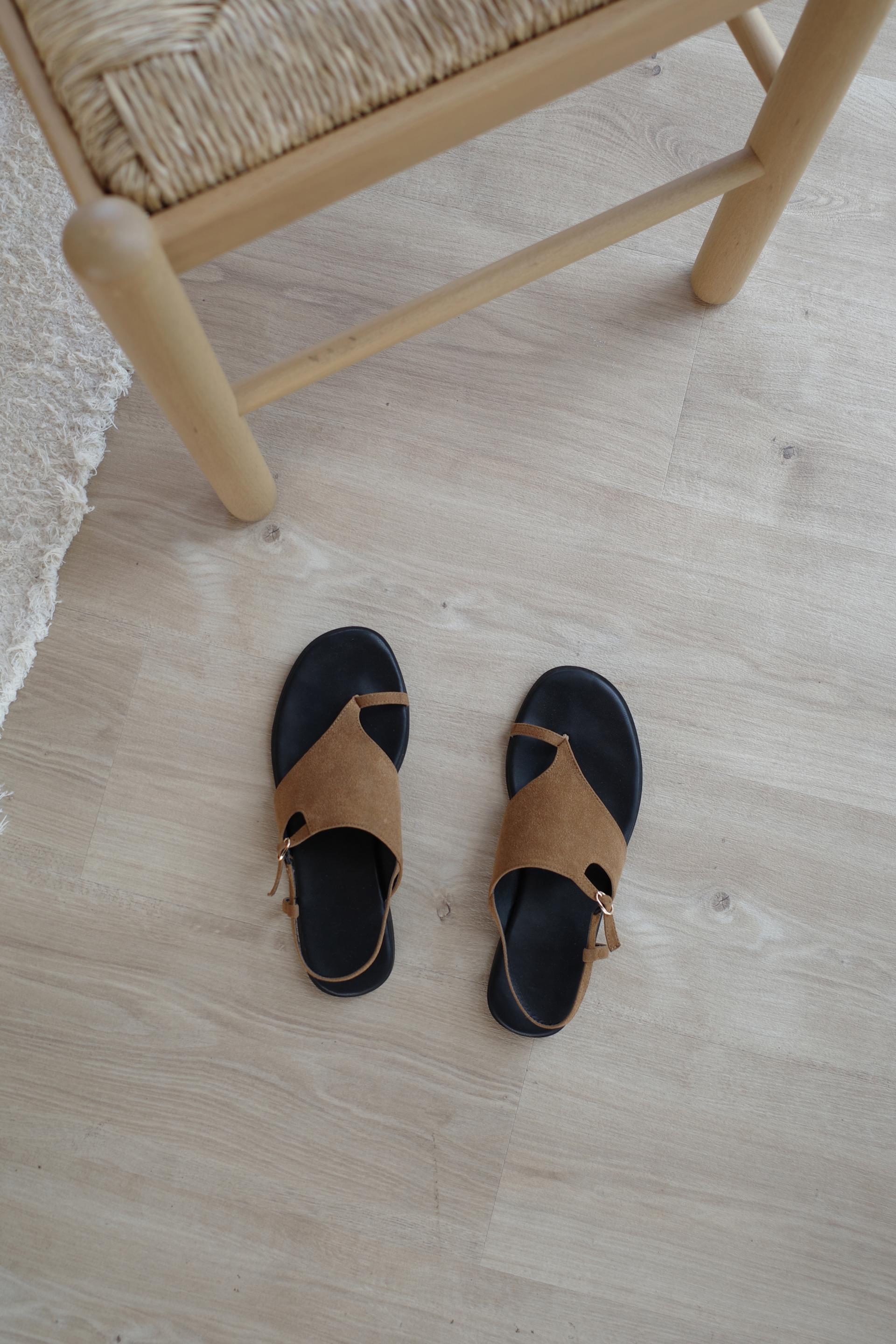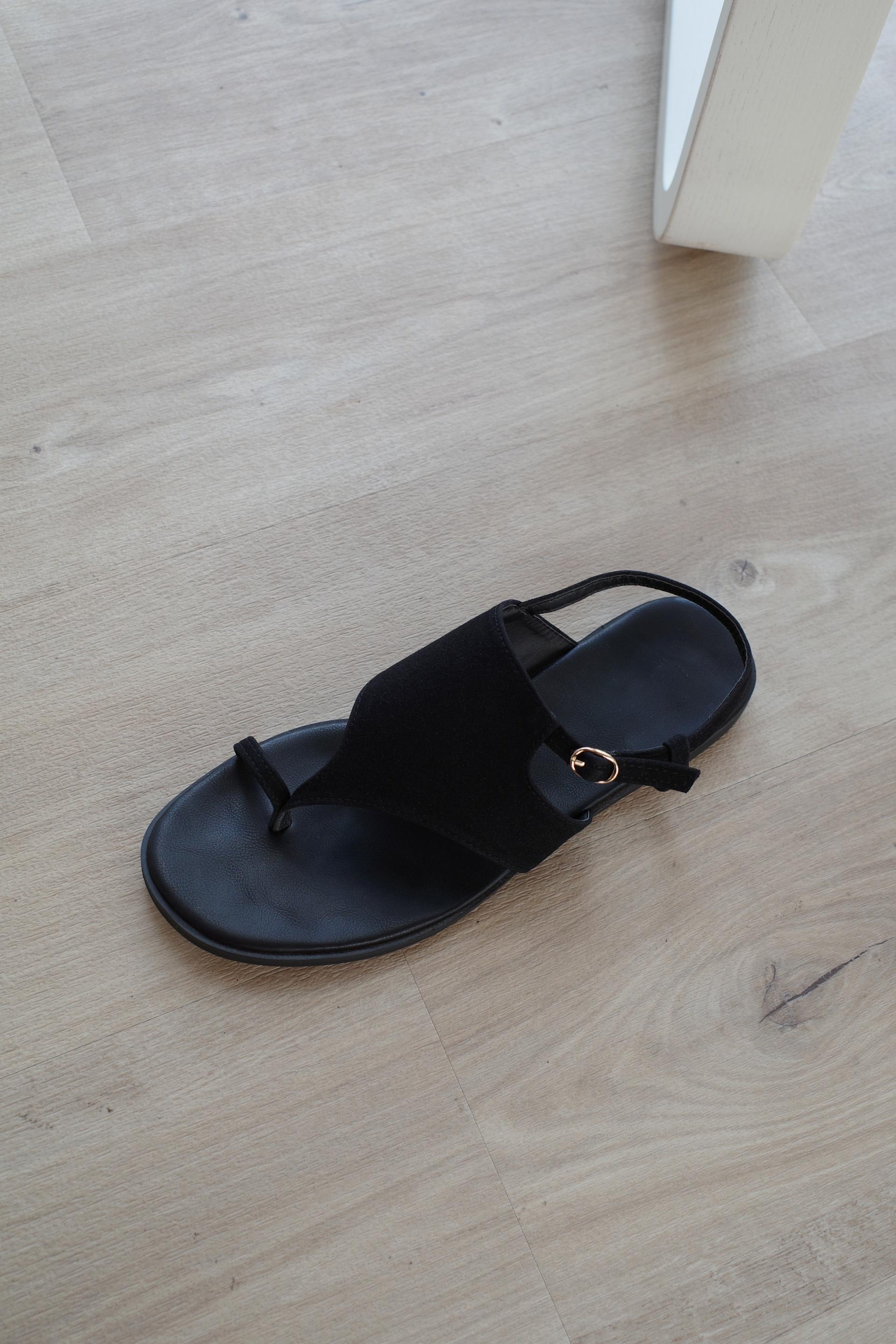 빈티지하면서 멋스러운 느낌을 내는 스웨이드를 사용해 소재만으로도 포인트가 되는 샌들이에요.