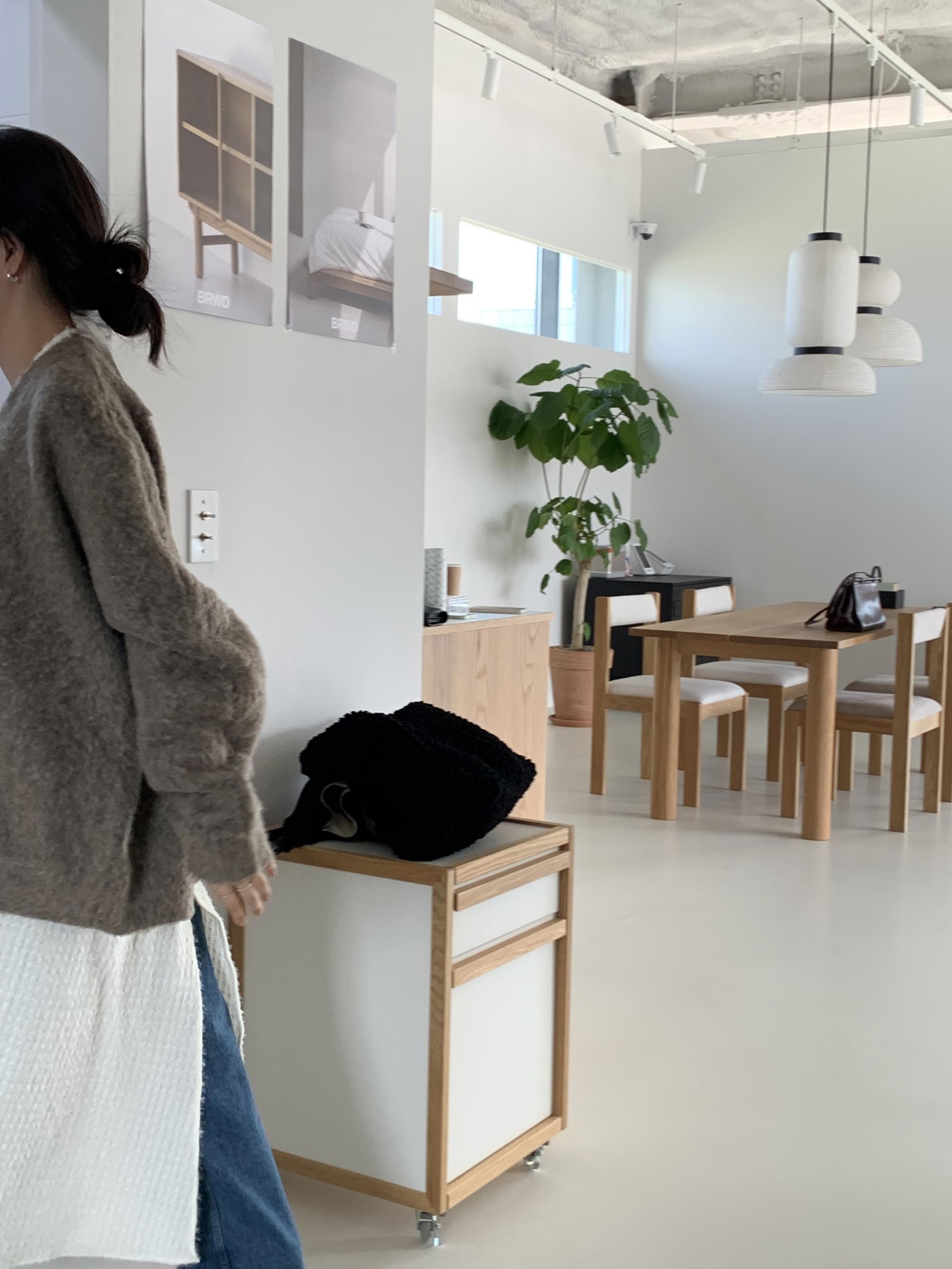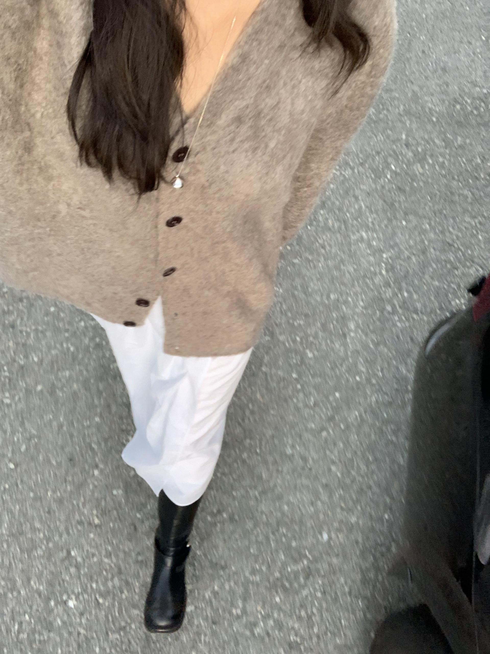 올리브 팬츠와 코디했던 그 가디건이에요. 다들 이런 포근한 분위기의 데일리한 스웨터 찾고 계셨나봐요 ! 업데이트 전부터 문의가 많아 빨리 보여드리고 싶은 마음이 굴뚝같았답니다..