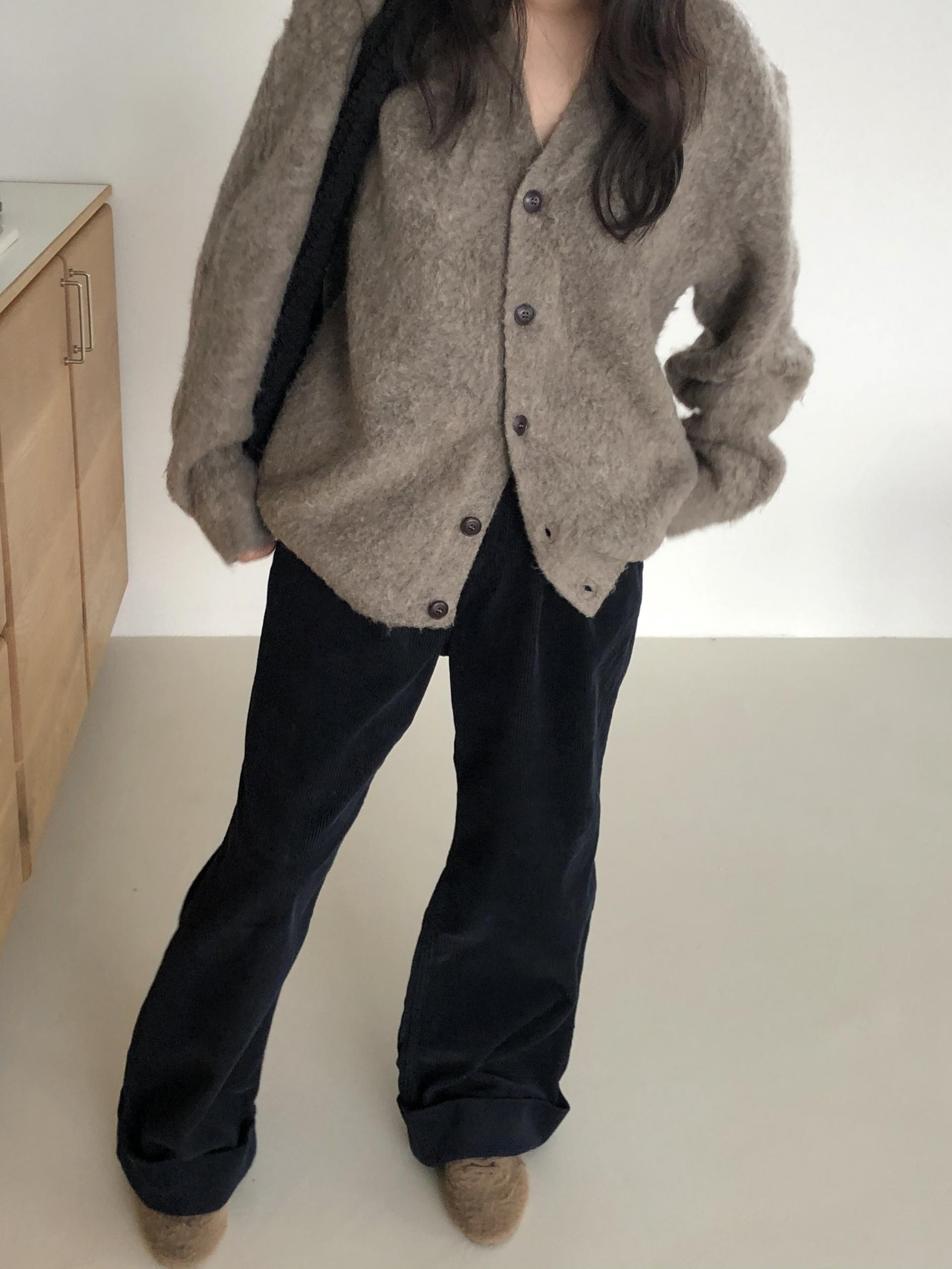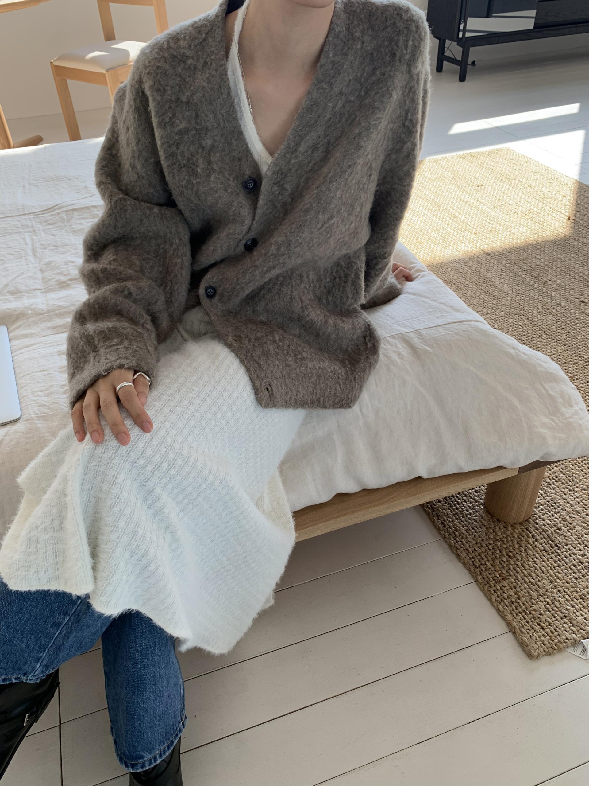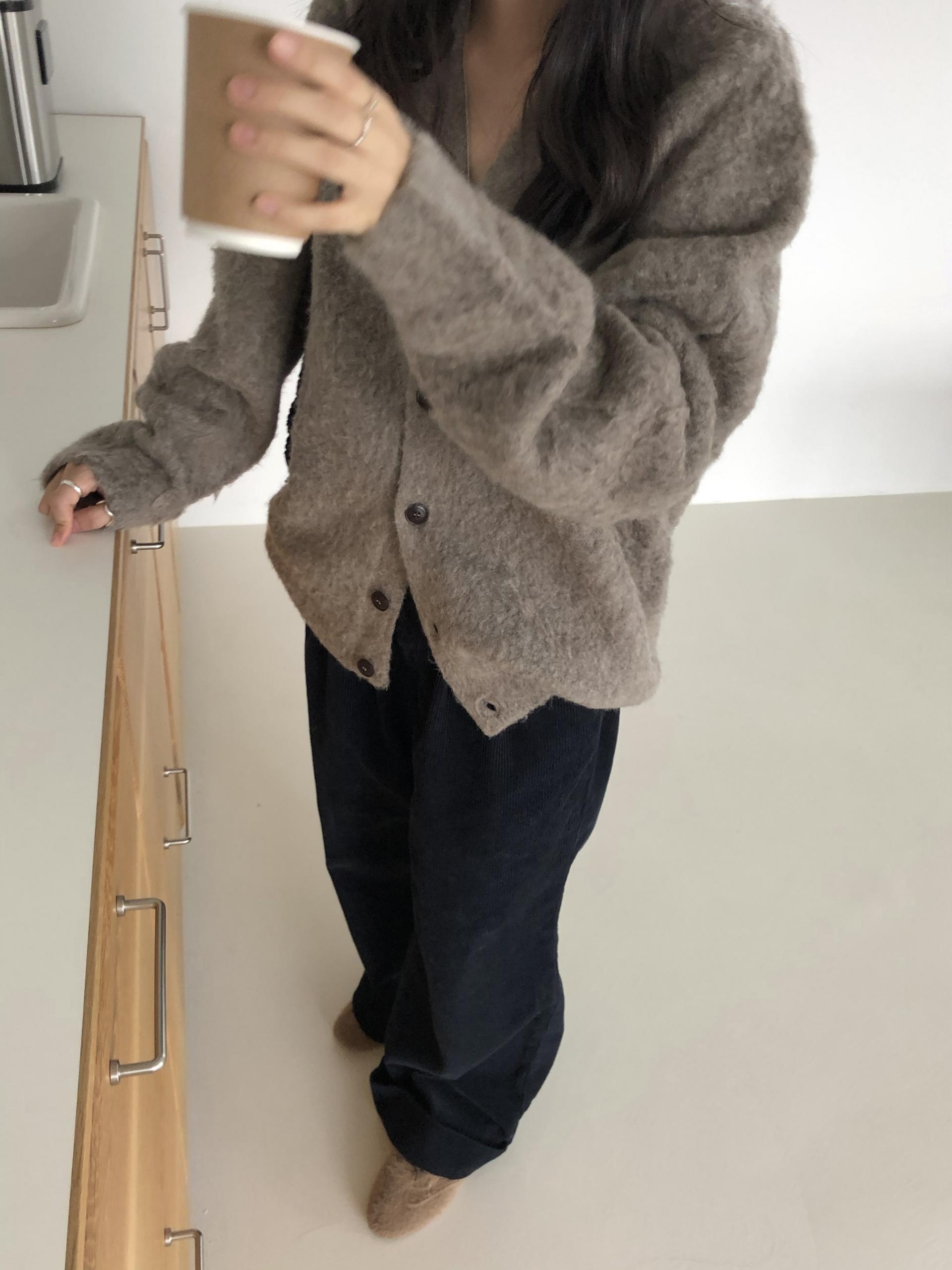 브러쉬 기법의 긴 헤어감이 돋보이는 원단으로 포근함이 느껴져 한겨울까지 따뜻하게 즐길 수 있어요. ( 니트 겉면을 긁어 니트의 부드러움을 강조시키는 기법입니다. 착용할수록 몽글몽글 헤어감이 드러날 거예요! 긴 헤어감이 머그 가디건의 매력입니다 :) )