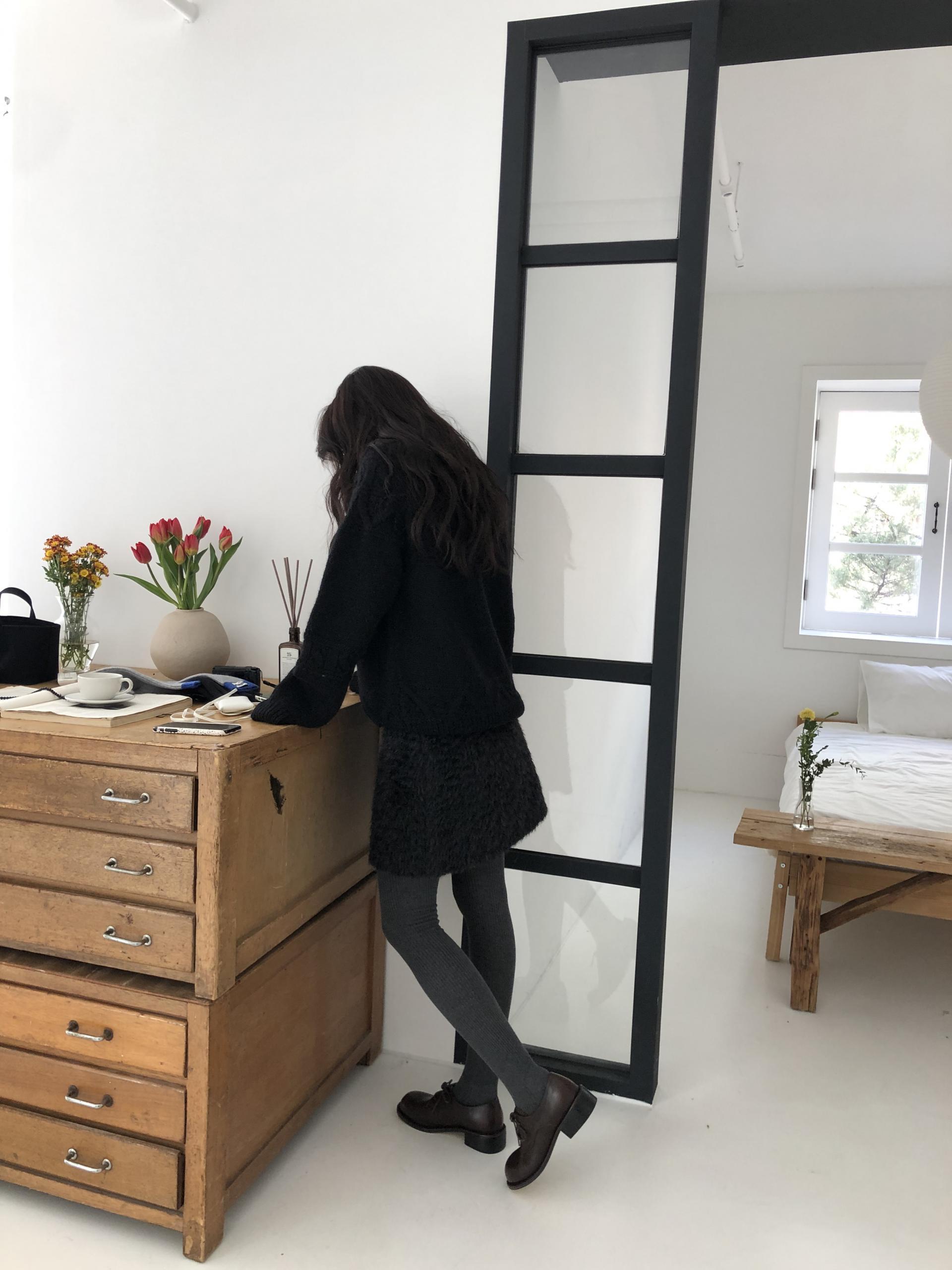 스웻셔츠나 롱스웨터에 컬러 스타킹 신고 입어주면 너무 좋을 것 같아요.