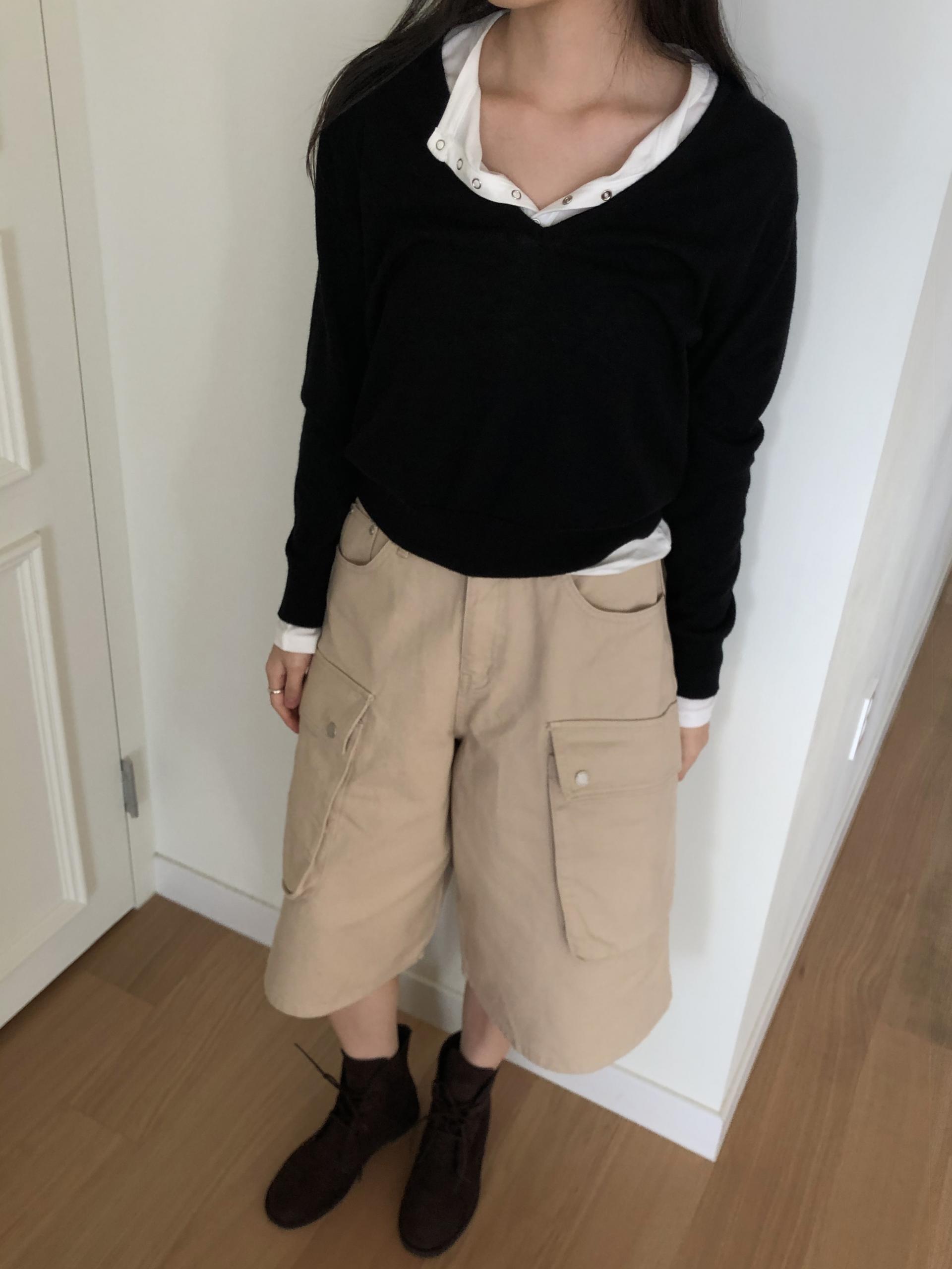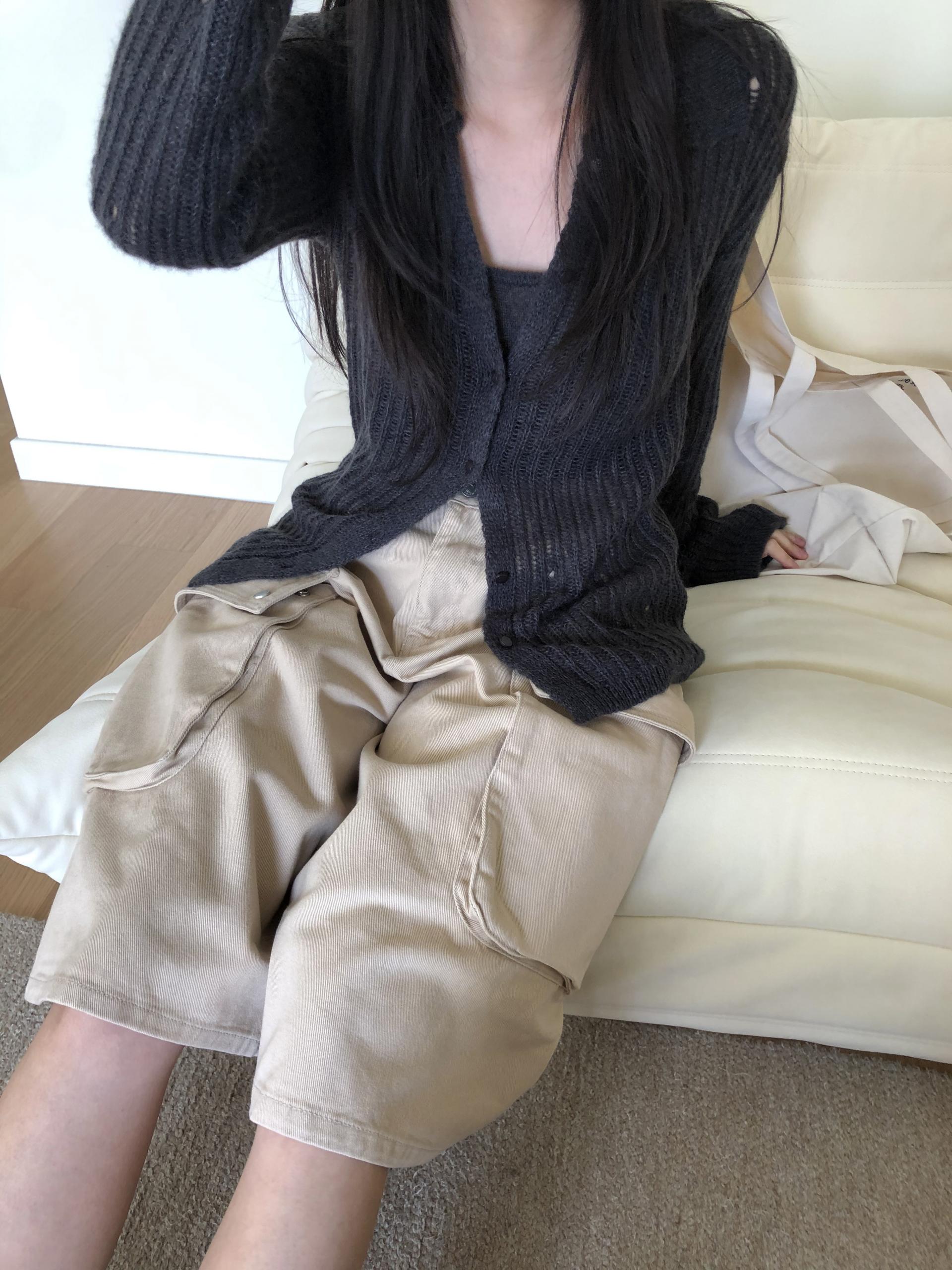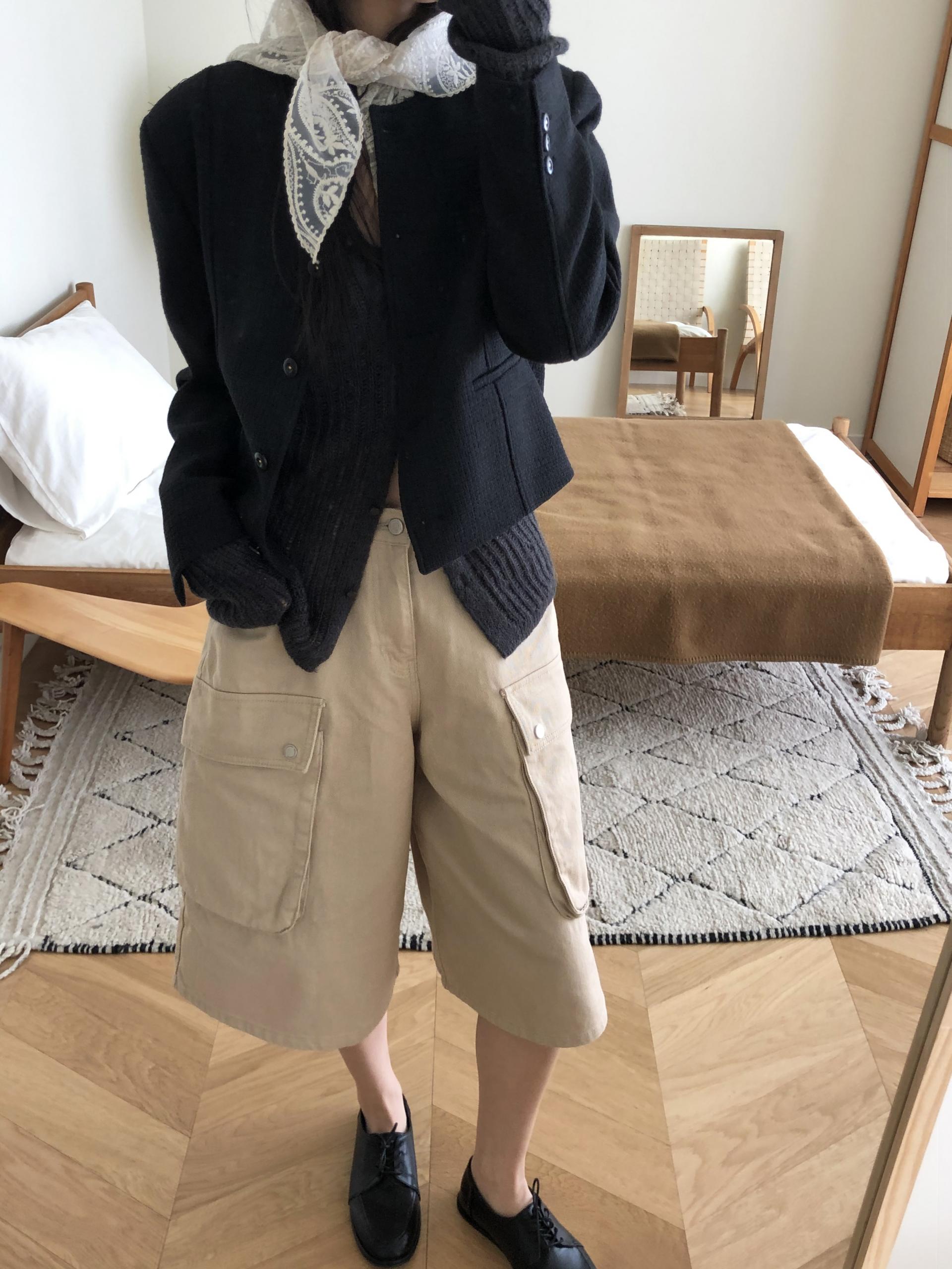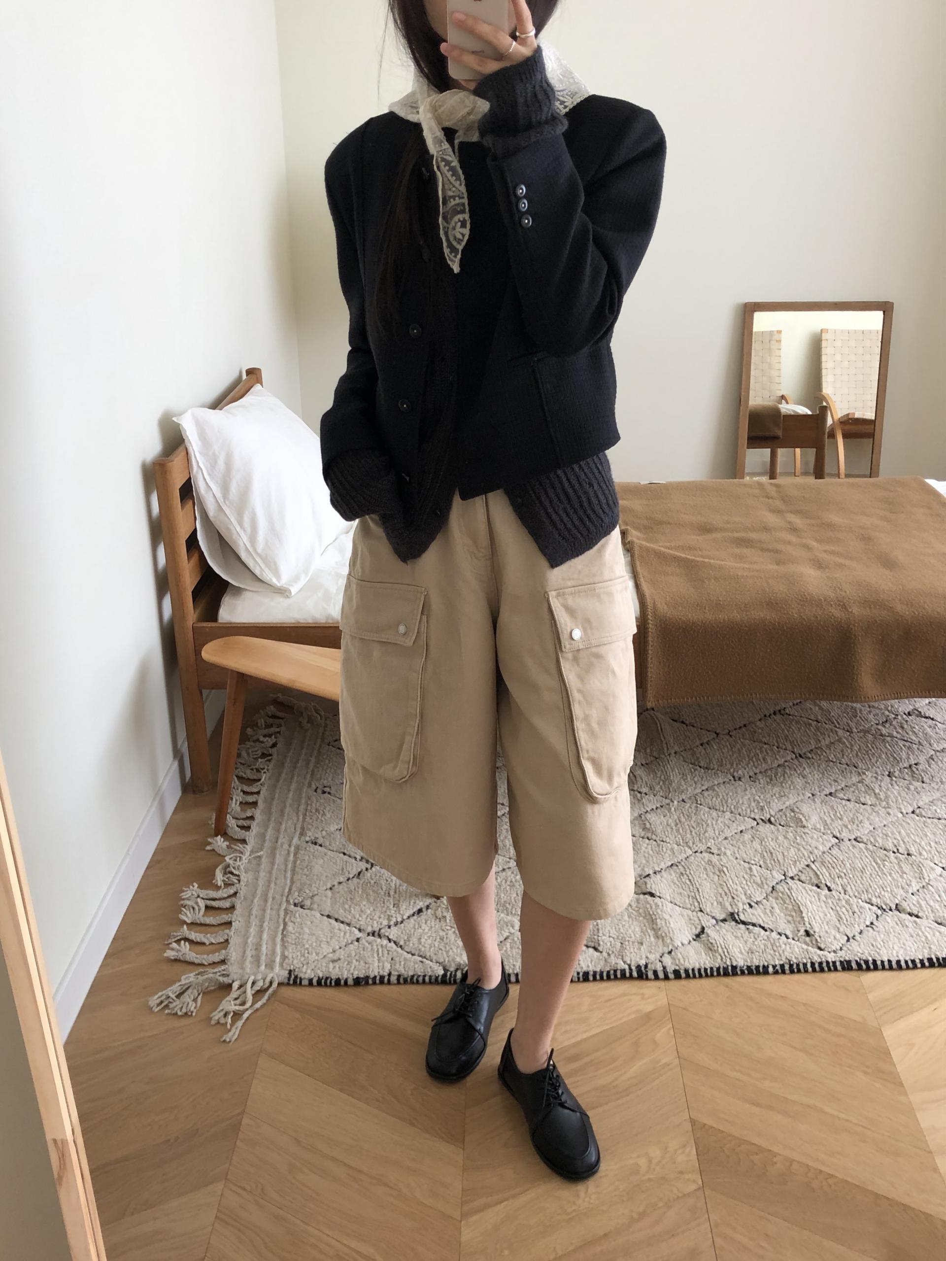 카멜에 버터가 섞인 듯한 차분한 베이지 컬러의 버뮤다 팬츠입니다. 데님 소재에 베이지 컬러..버뮤다 팬츠라니 셀렉을 안할 수 없었어요 !
