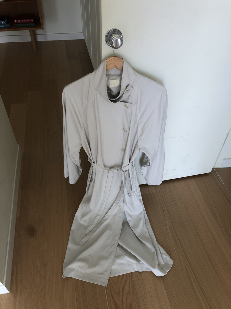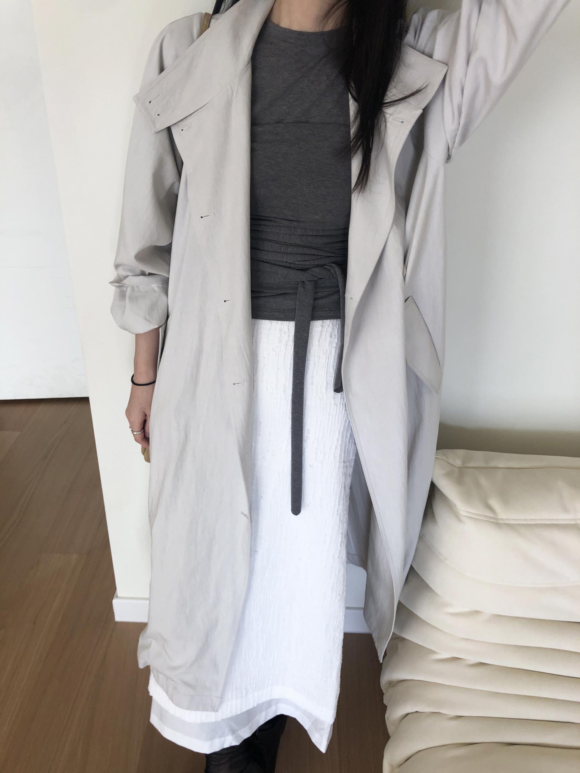 어깨(레글런) 약 60 가슴 57 암홀 약 29 소매기장 55.5 소매단면 18.5 밑단 74.5 총장 (넥포함) 121 허리끈 너비 2.5 / 길이 163
