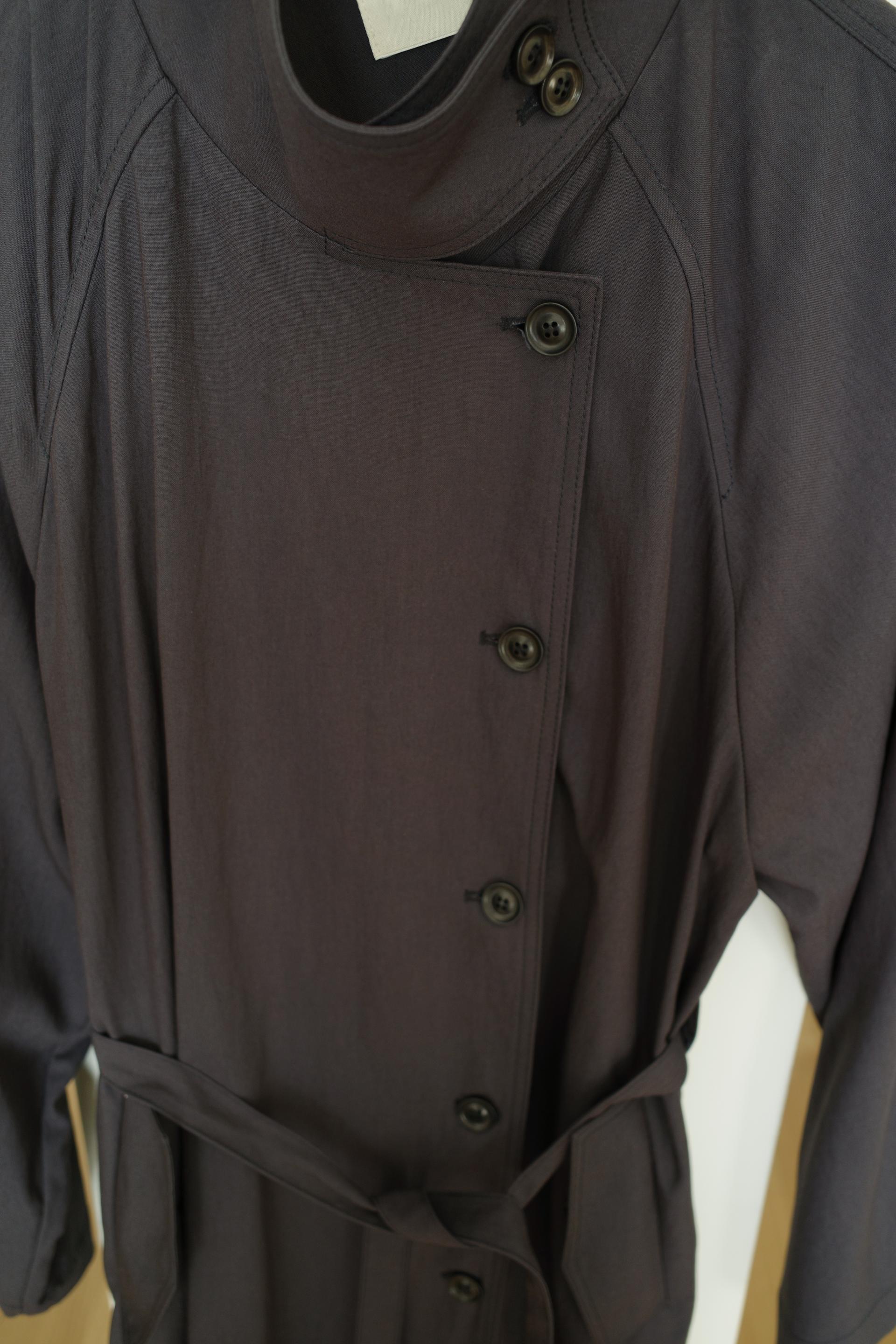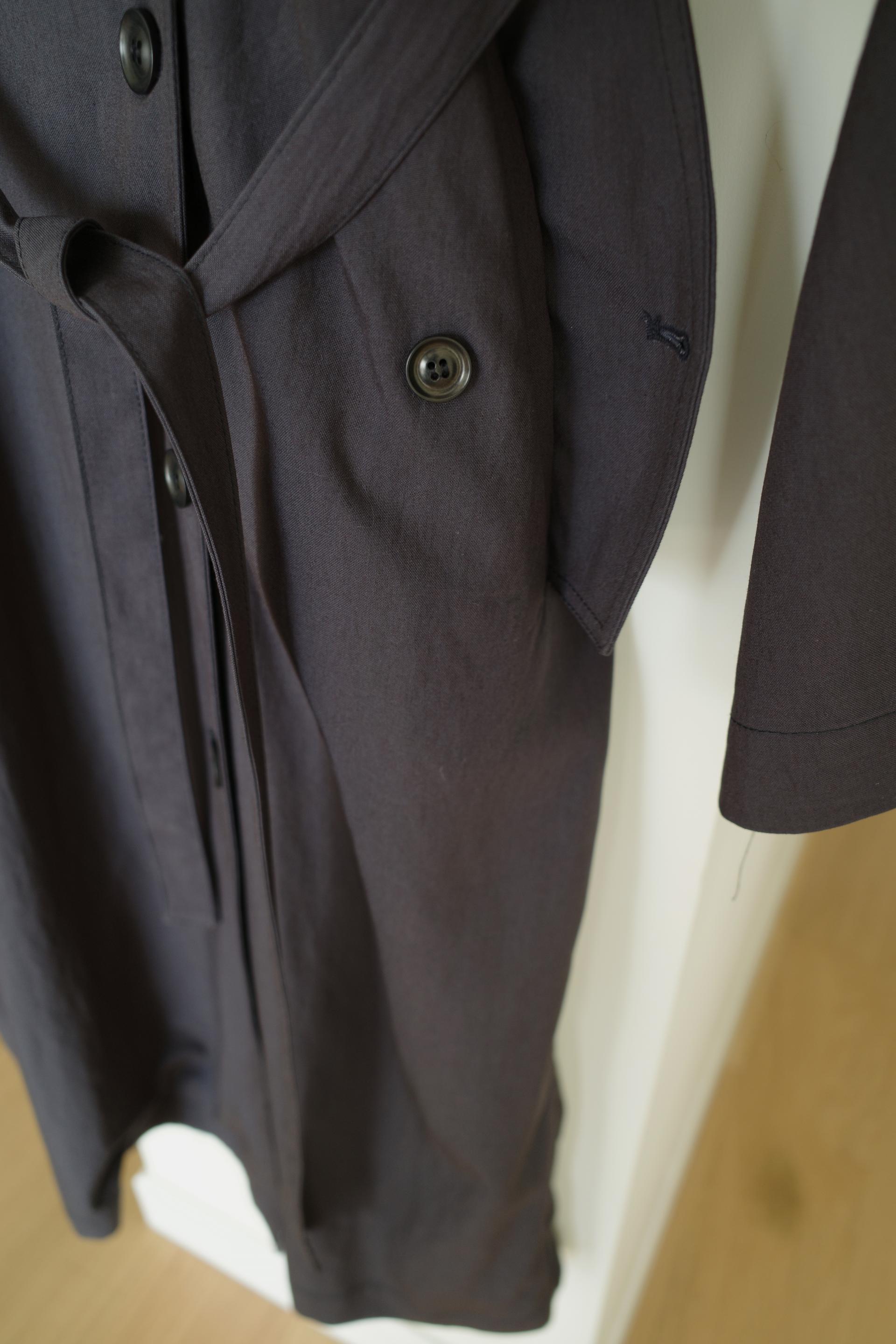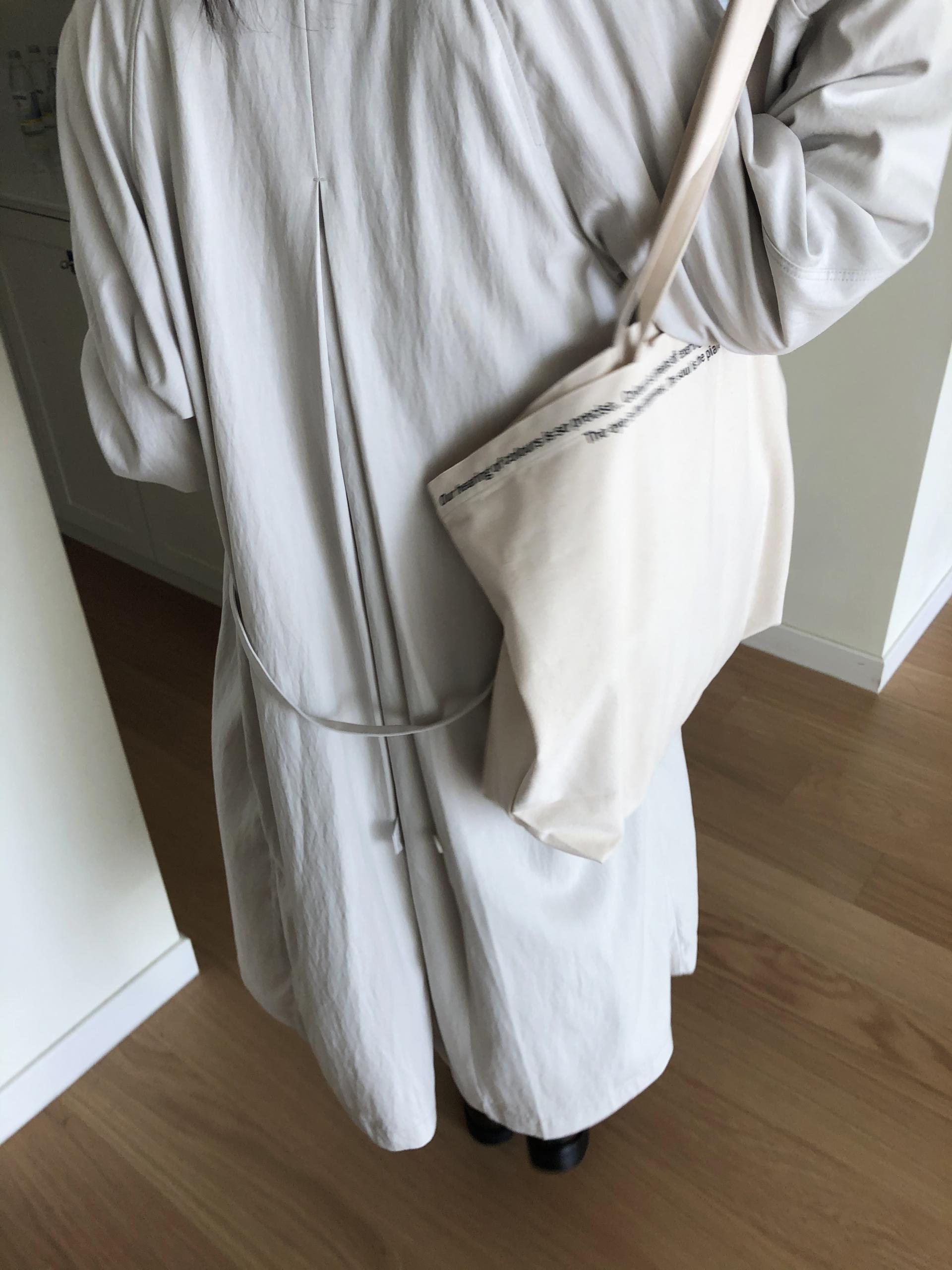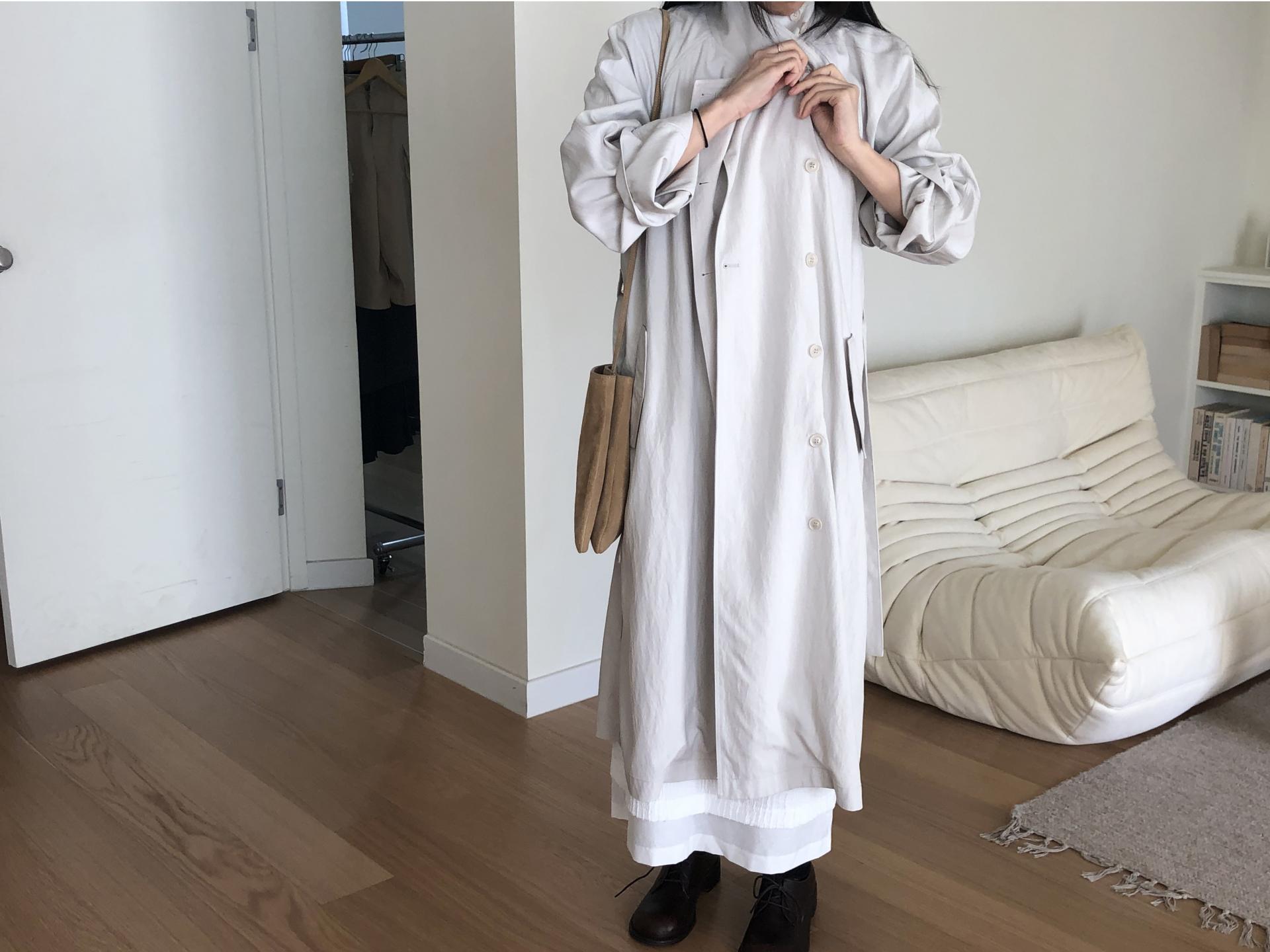그리고 제가 가장 좋아하는 하이넥 디테일..! 턱까지 감싸는 높은 하이넥이 아닌, 반하이넥 디자인입니다. 자연스럽게 여유를 두어 답답함 없이 우아한 멋을 선사합니다. 버튼을 오픈하면 자연스럽게 넥라인이 젖혀져 또다른 무드로 연출할 수 있습니다. 소맷단은 롤업이 용이하도록 큰 디테일 없이 간결하게 제작되었고, 뒷판에는 취향에 맞게 연출할 수 있는 턱과 버튼 디테일을 더했습니다. 너트 단추를 몸판 컬러와 매칭해 염색하여 달았고, 안쪽 봉제선은 지저분하지 않게 해리 처리하여 퀄리티를 높였습니다.