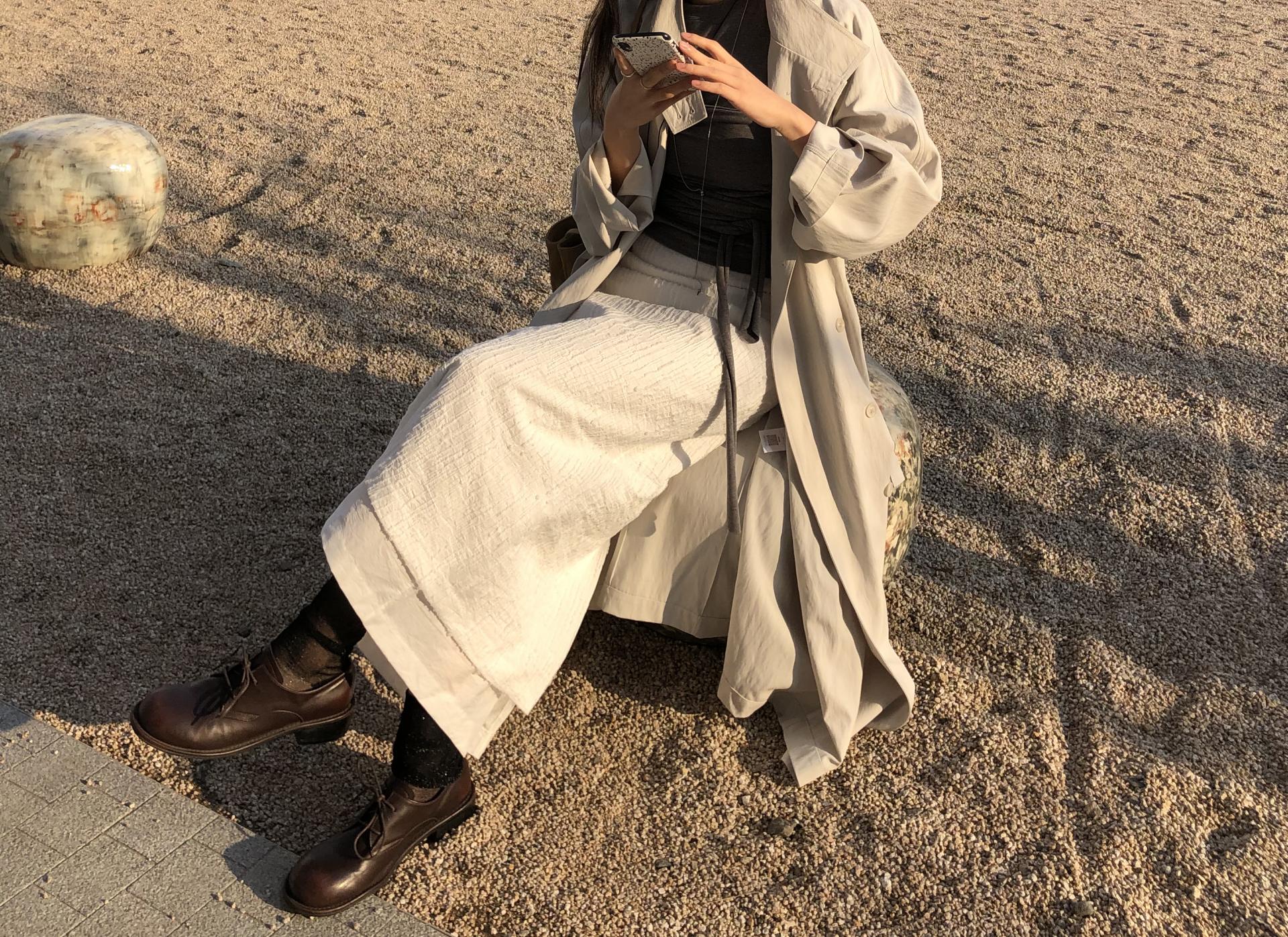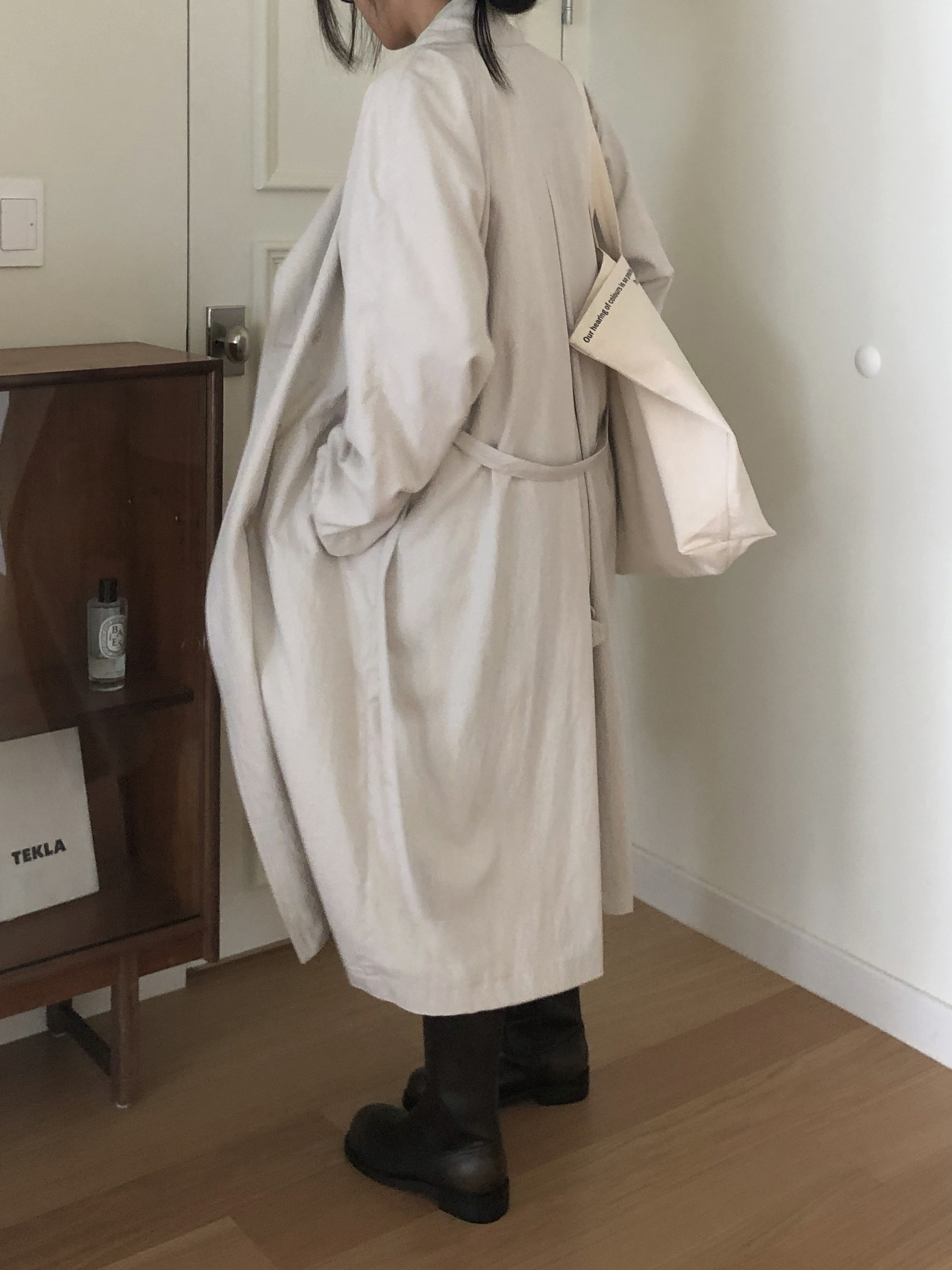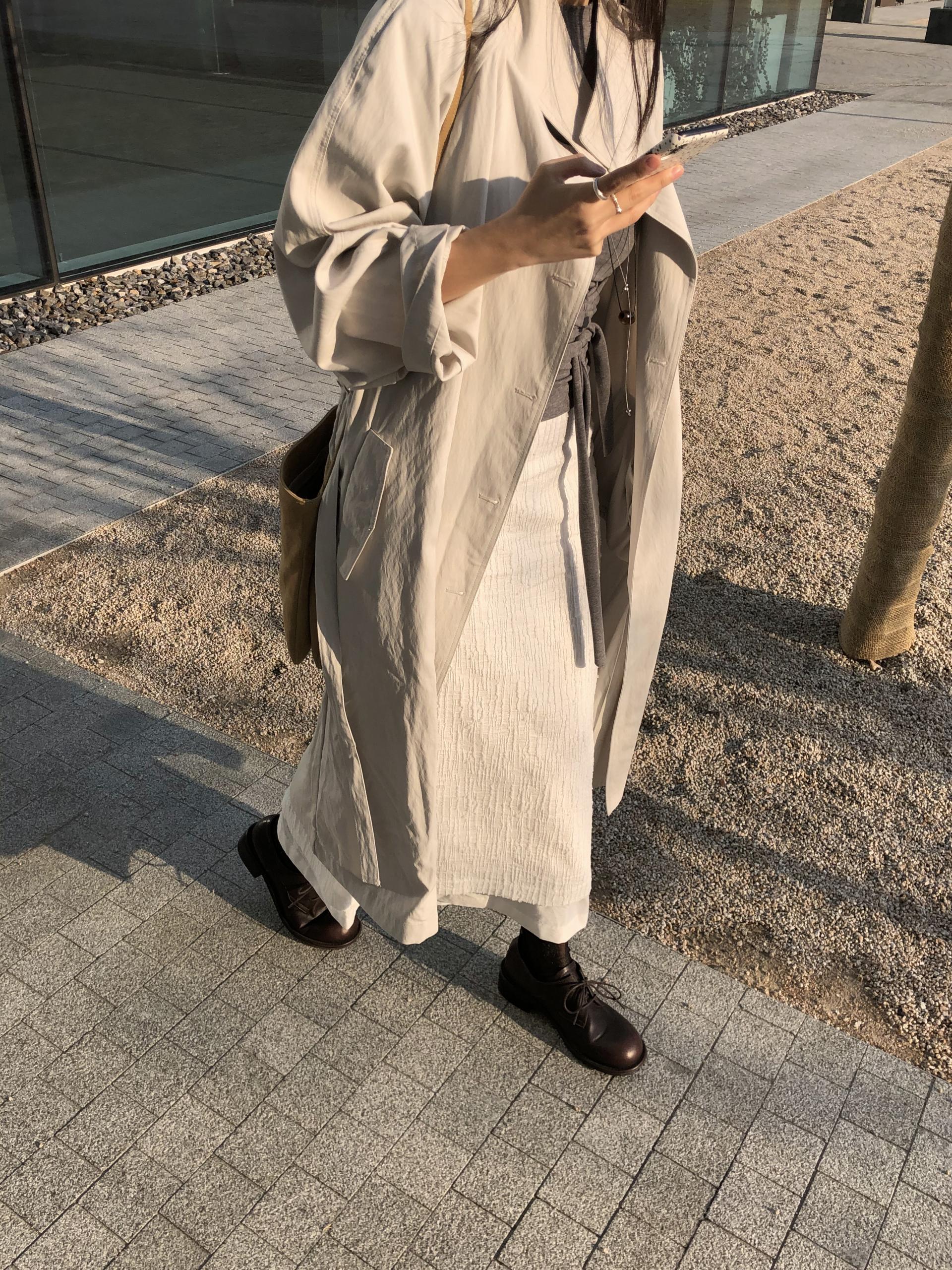 몸 전체를 감싸는 오버한 실루엣과 적당히 롱한 기장감. 편안하면서도 멋스럽게 착용하실 수 있어요. 개인적으로 루즈한 데님이나 롱스커트와의 조합이 만족스러웠어요! 말로 설명이 어렵지만 .. 그냥 툭 툭 대충 .. 입어주세요. 대충 걸쳐도 멋스러워요 :)