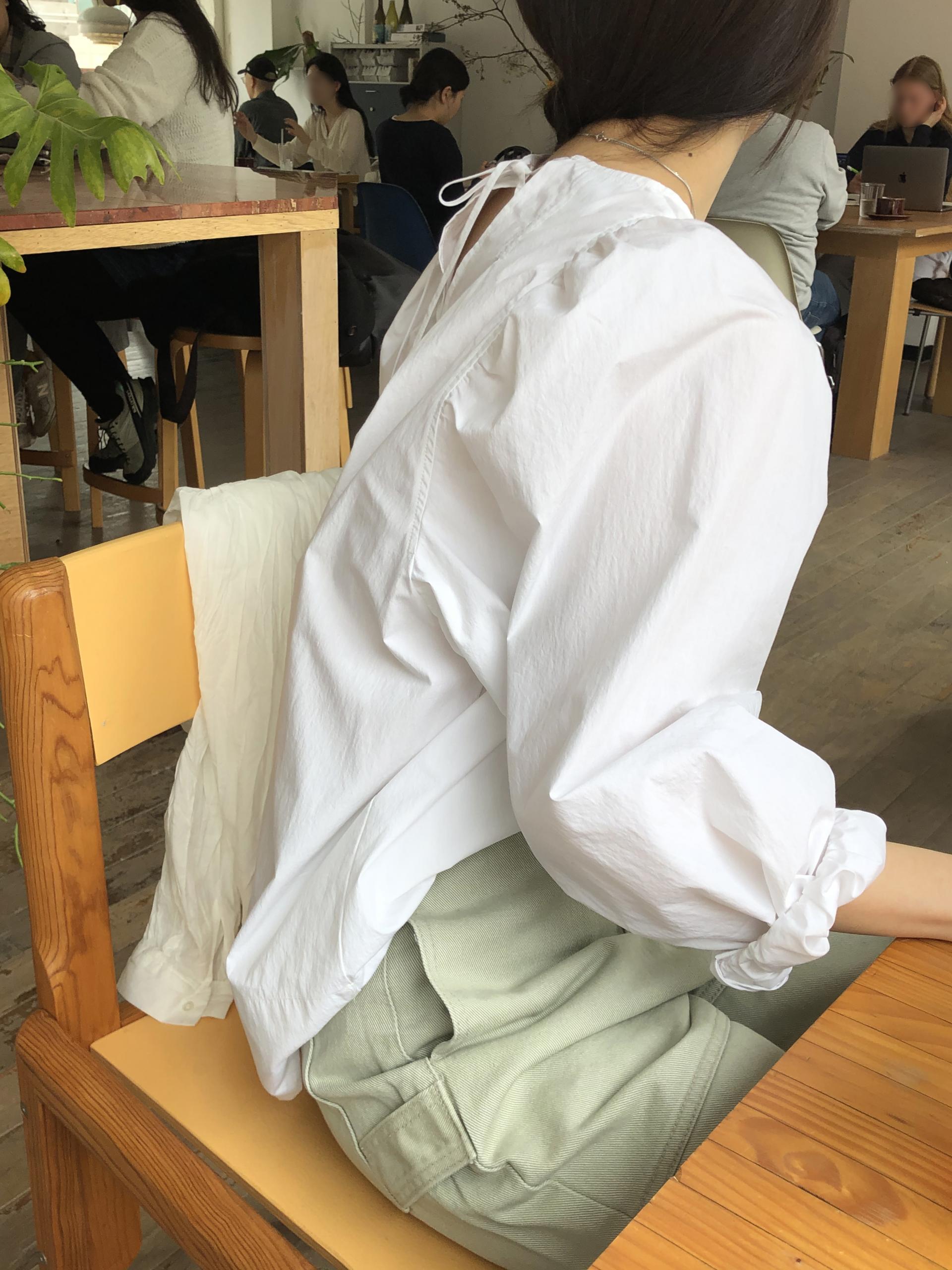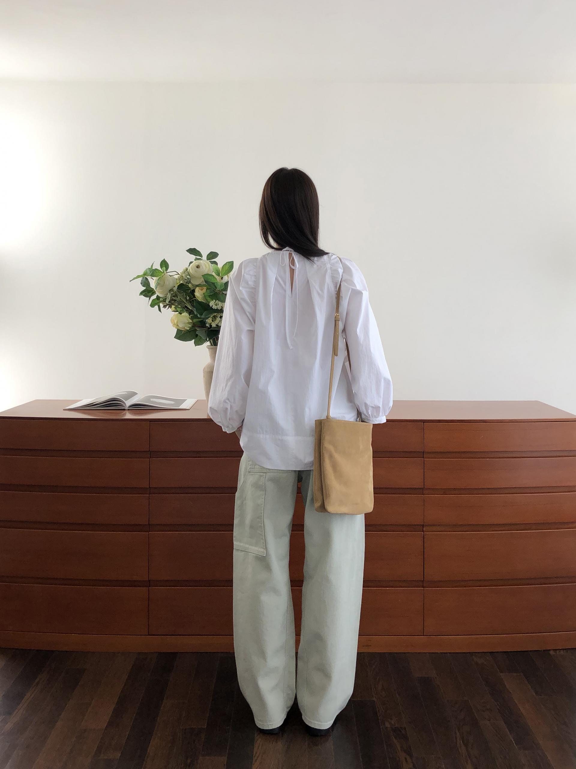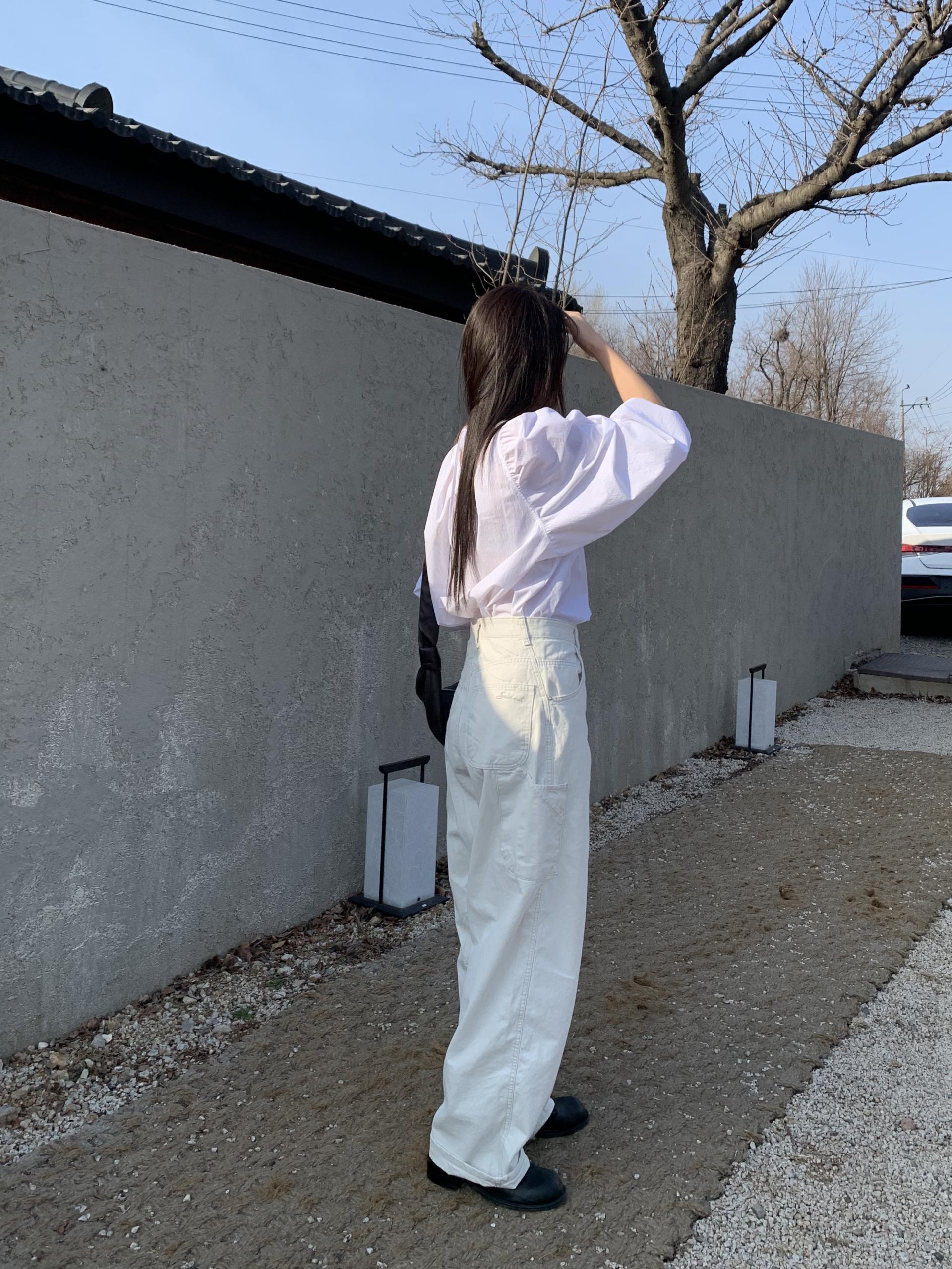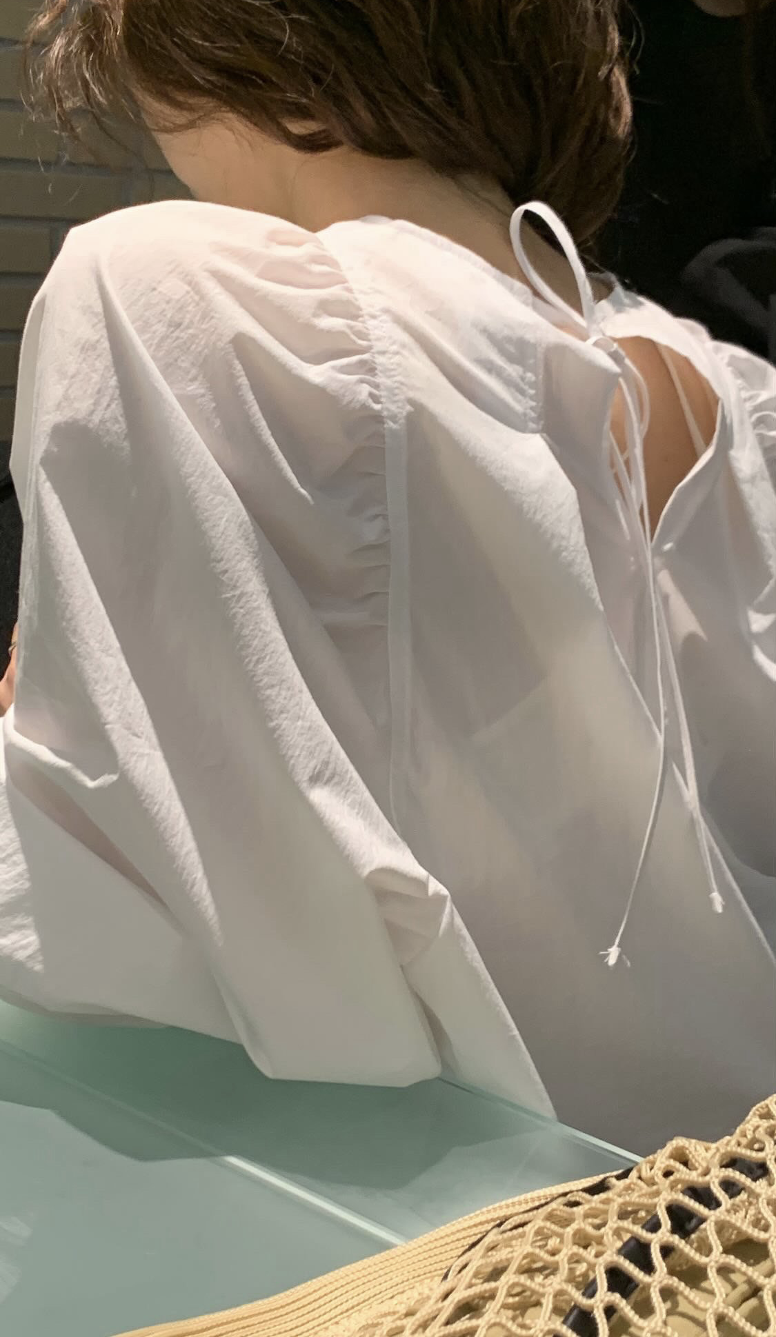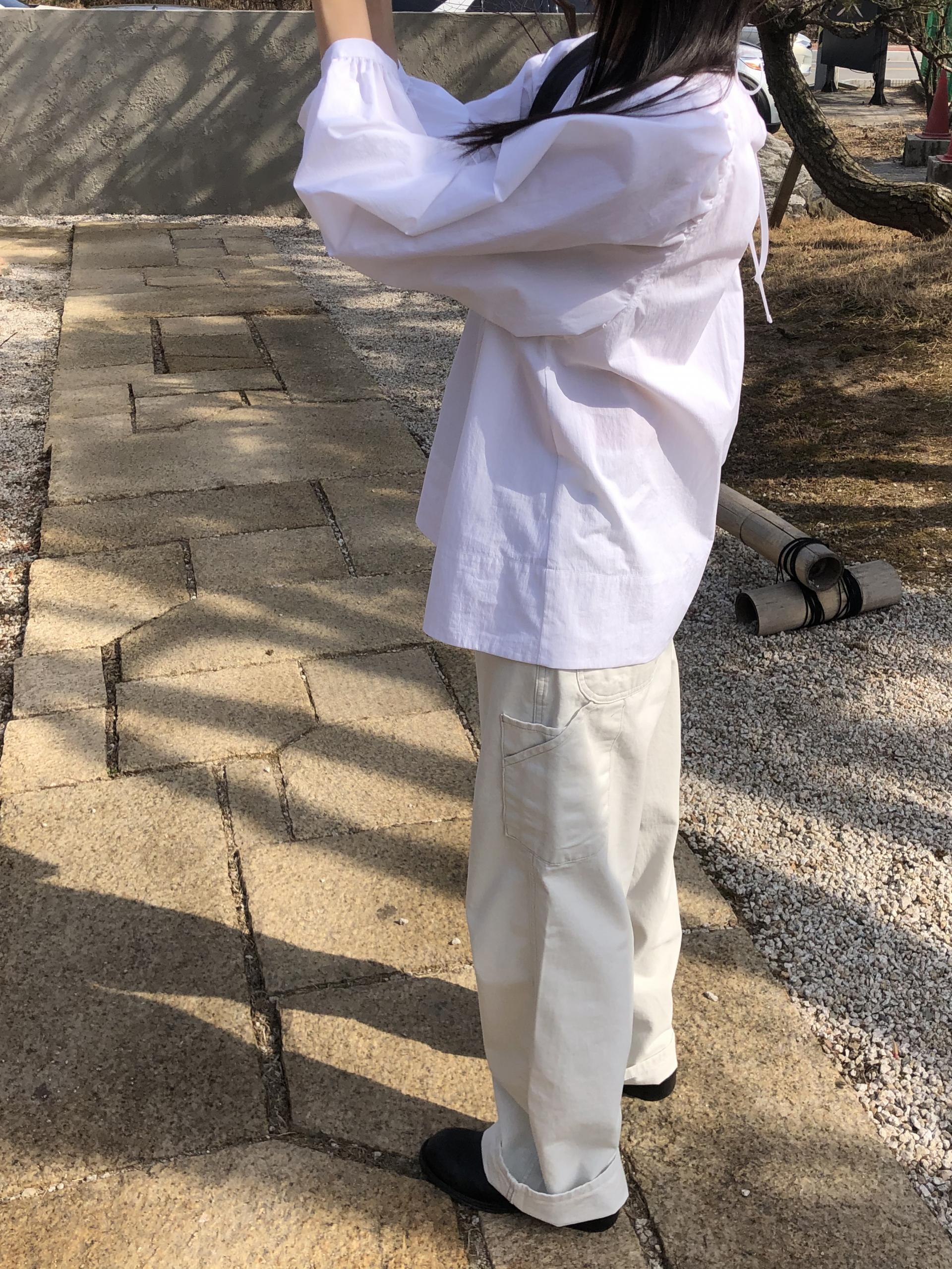 실루엣 자체가 풍성하기 때문에 짧은 팬츠와 깔끔하게 연출해도, 데님에 툭 입어줘도 신경 쓴 티가 나요. 뒤를 묶는 리본 디테일 덕분에 뒷모습까지 예쁩니다.