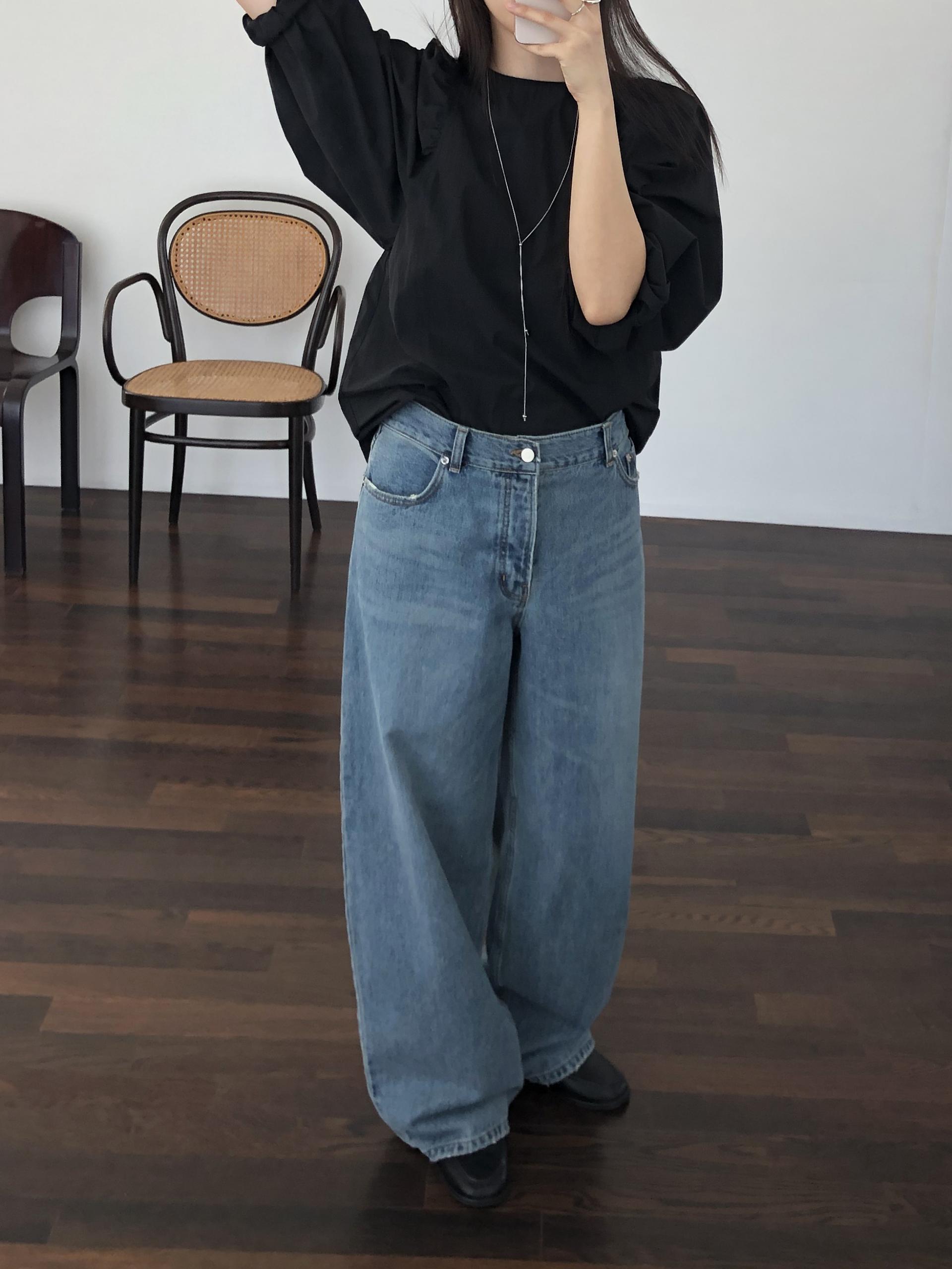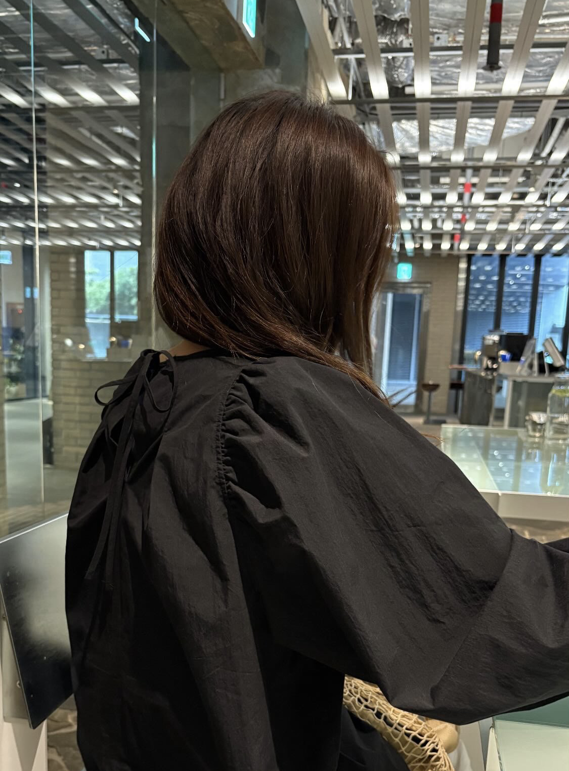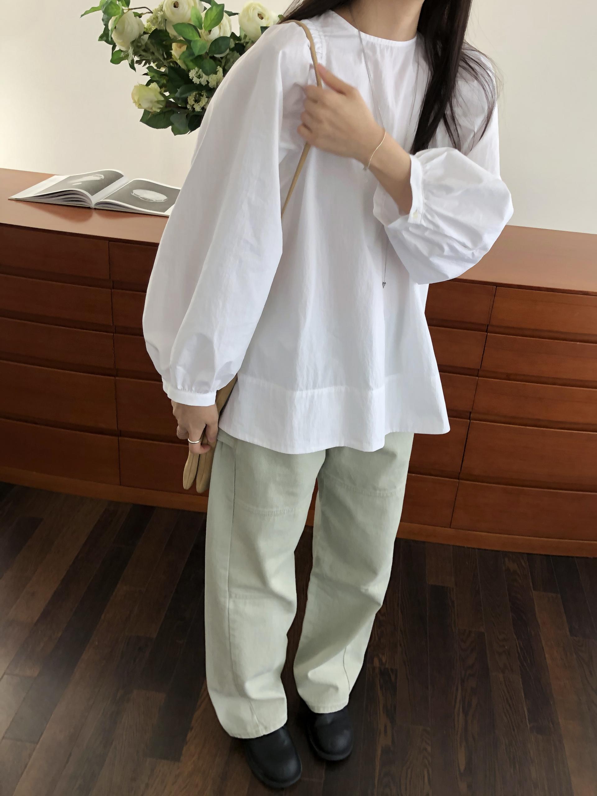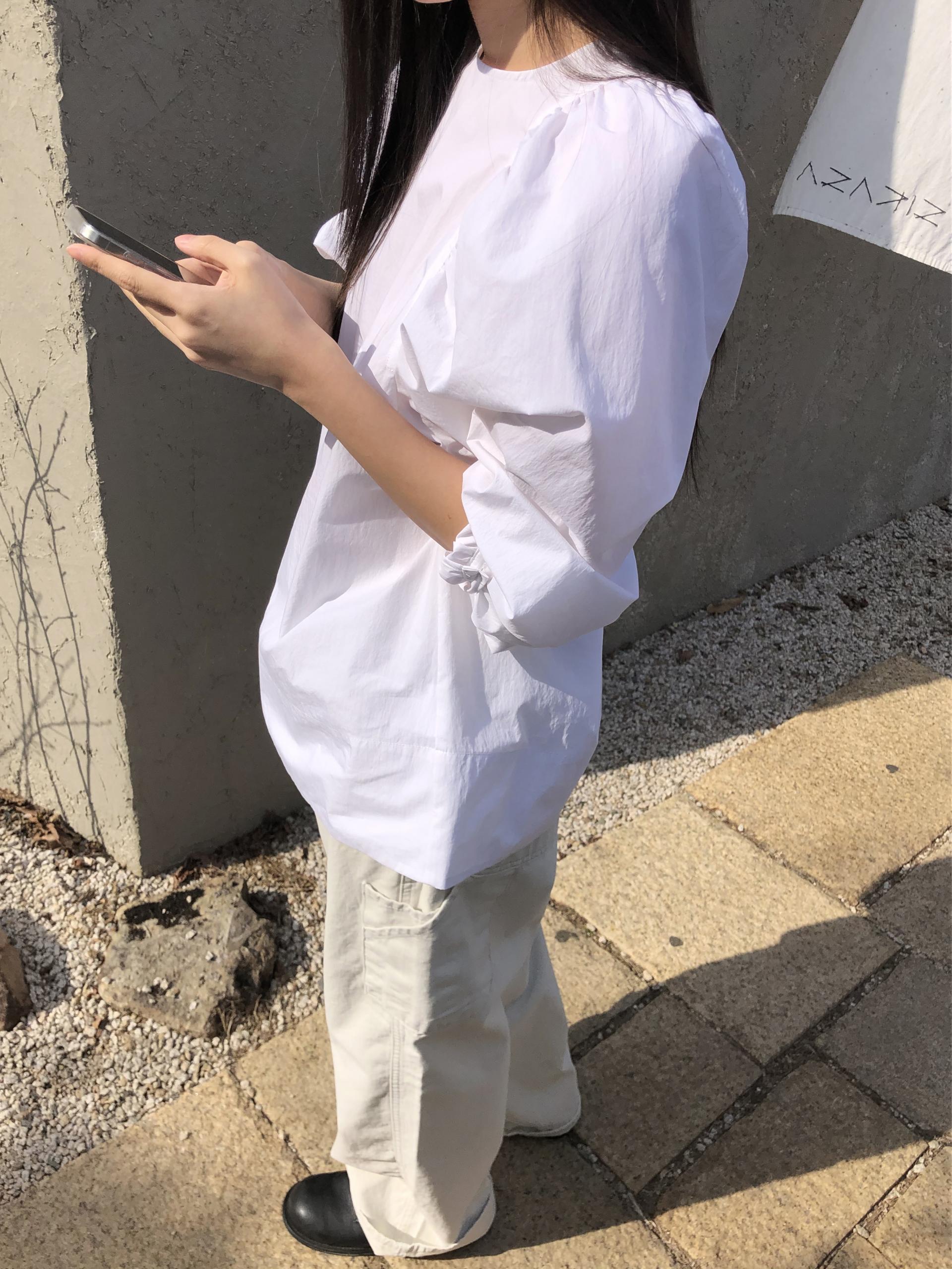 실루엣 자체가 풍성하기 때문에 짧은 팬츠와 깔끔하게 연출해도, 데님에 툭 입어줘도 신경 쓴 티가 나요. 뒤를 묶는 리본 디테일 덕분에 뒷모습까지 예쁩니다.